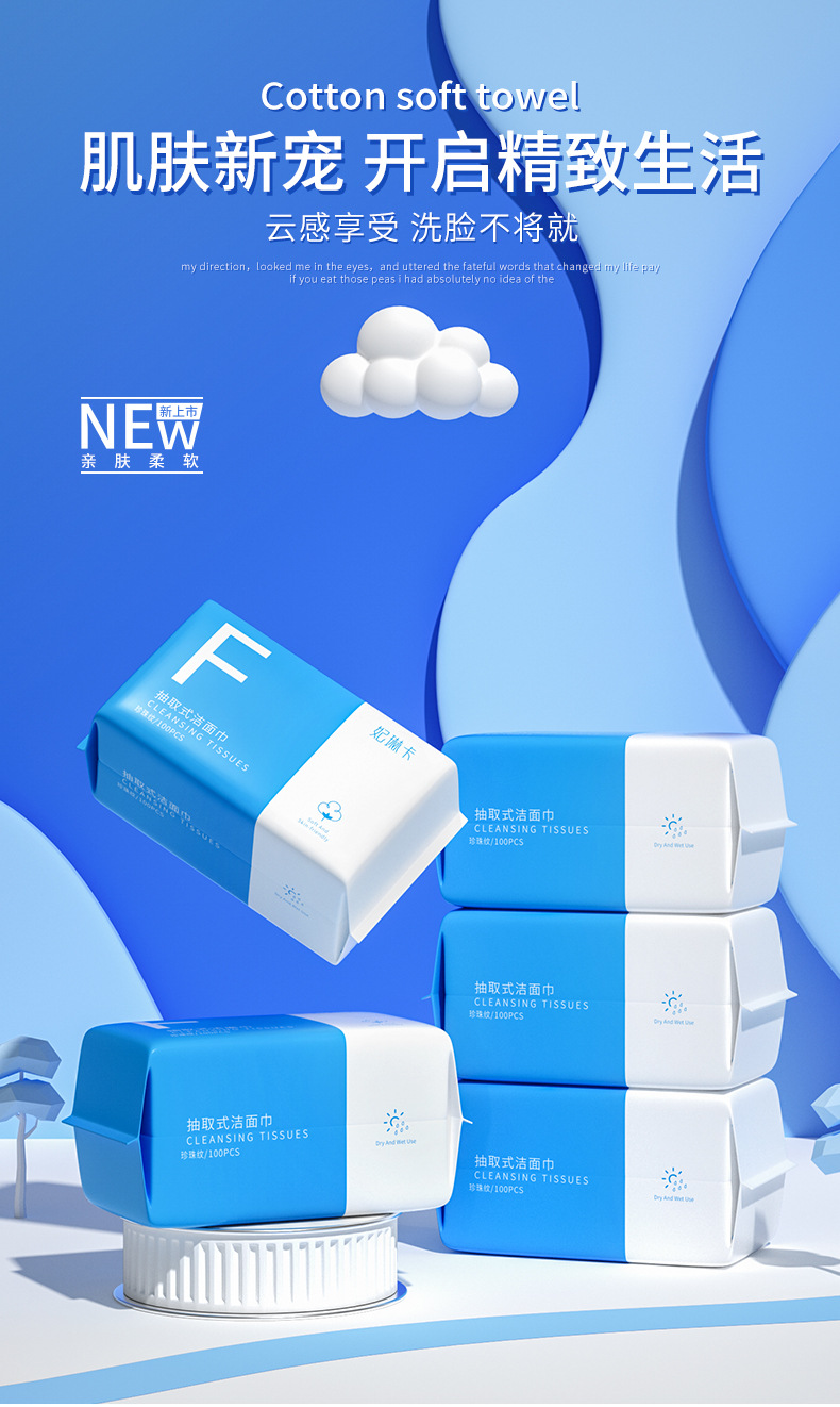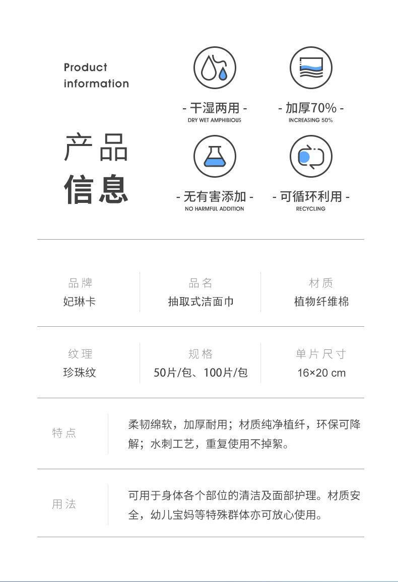 【美妆个护】妃琳卡洗脸巾珍珠加厚卸妆巾干湿两用100抽化妆棉柔巾