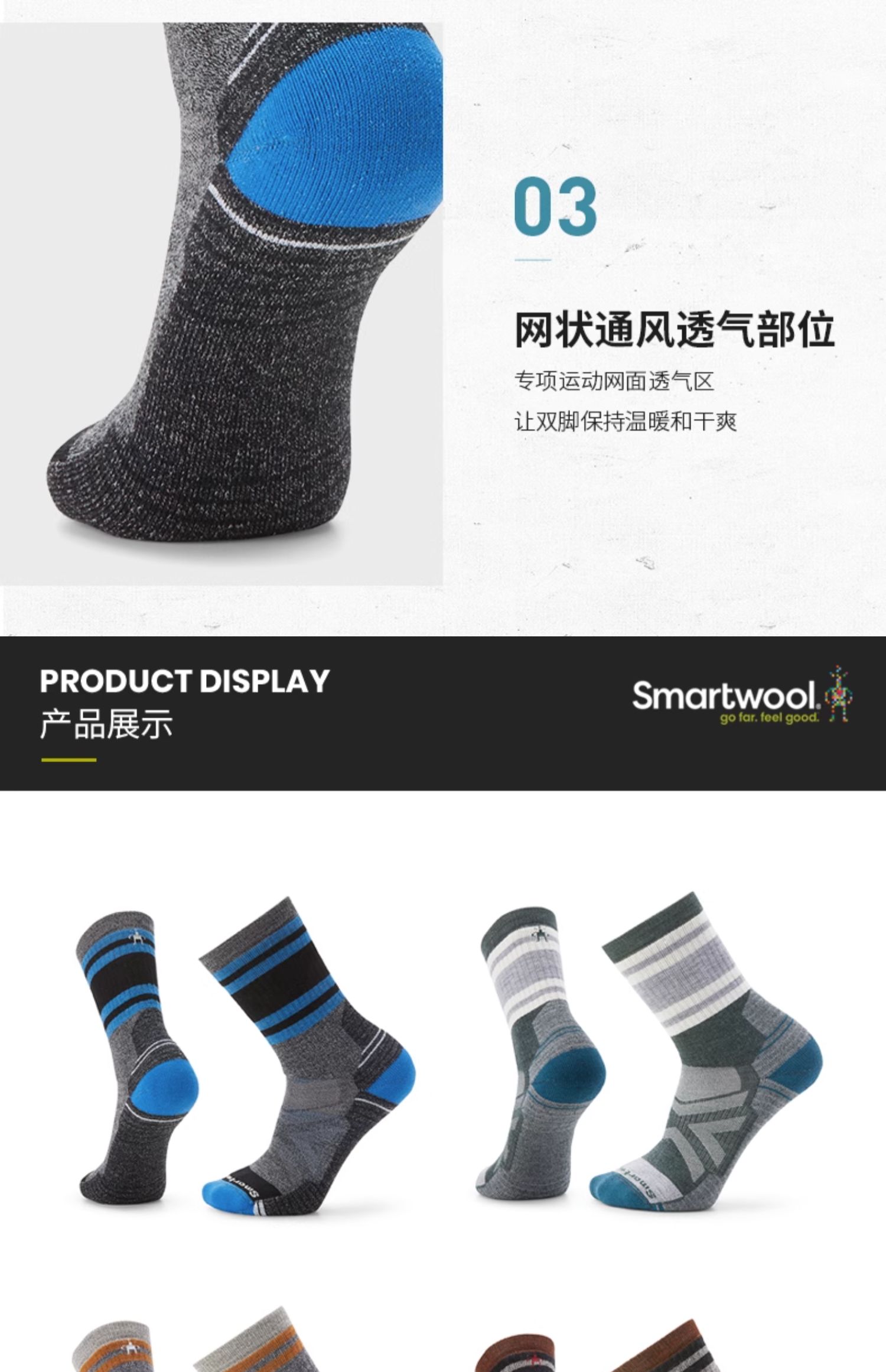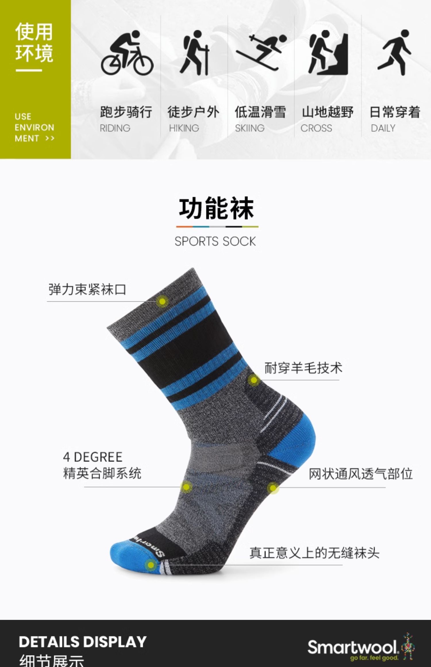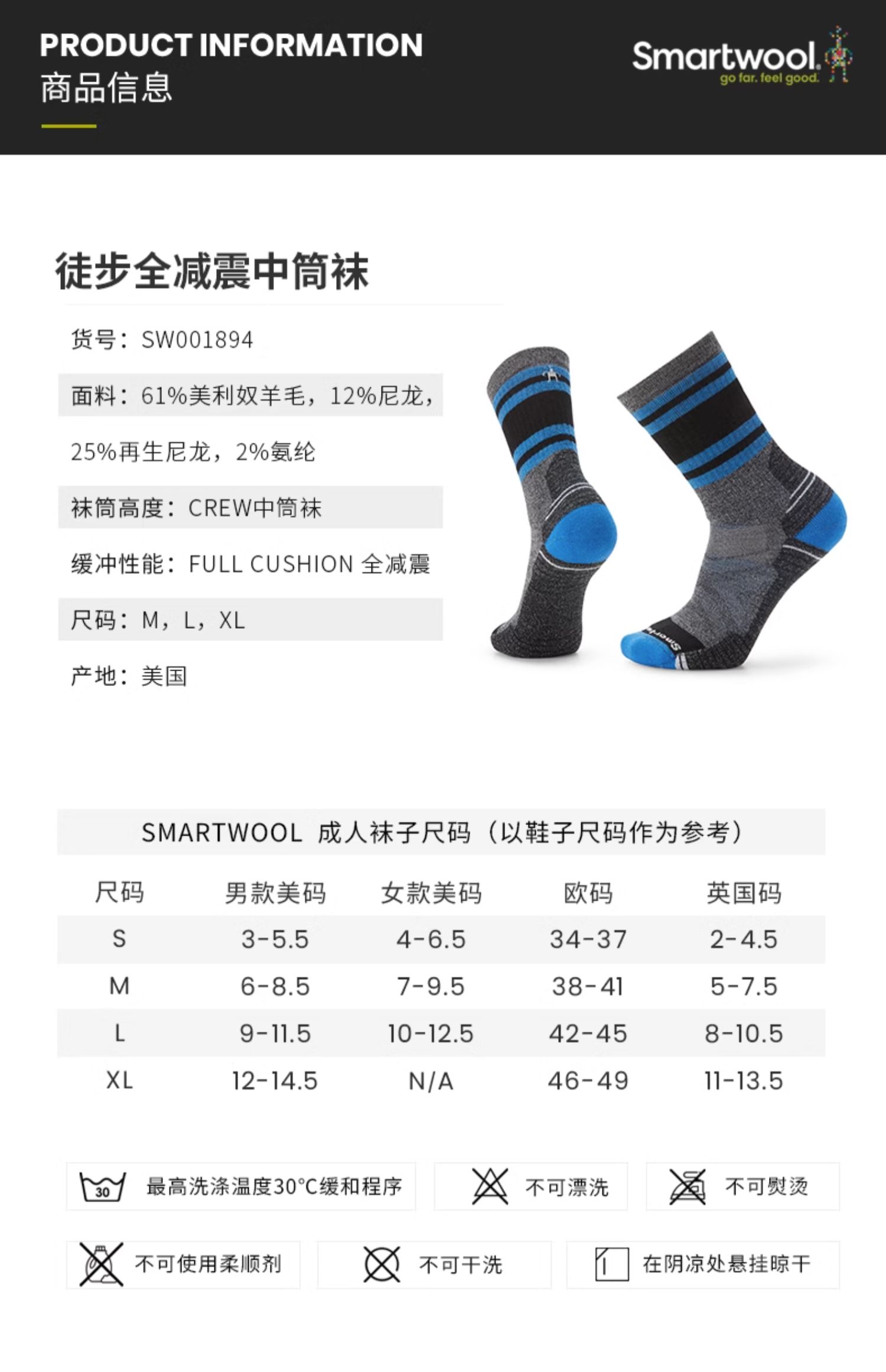 Smartwool徒步功能全减震中筒袜羊毛徒步SW袜子1894