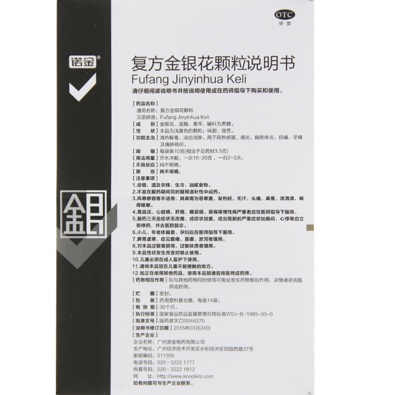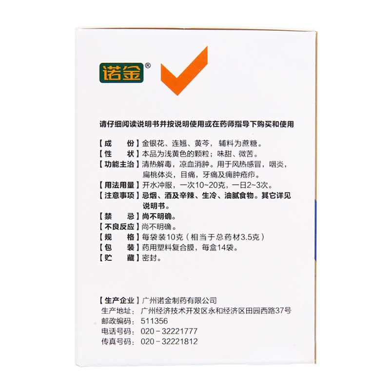 诺金 复方金银花颗粒10g*14袋 风热伤风咽炎扁桃体炎目痛牙痛疮疖