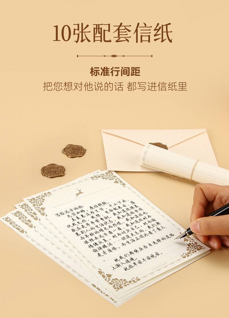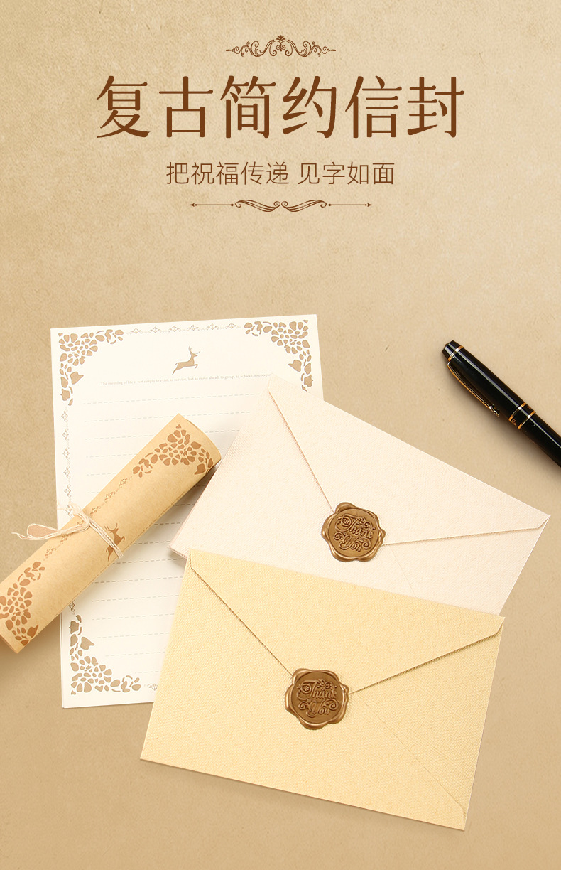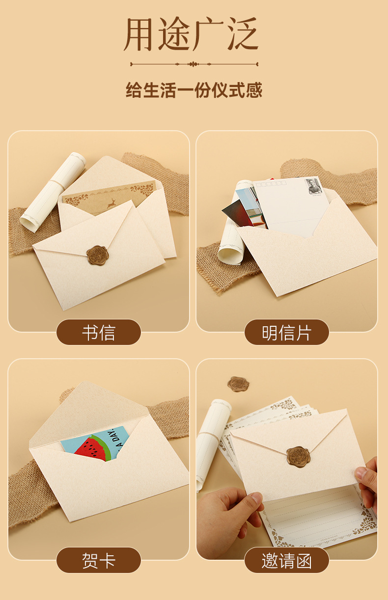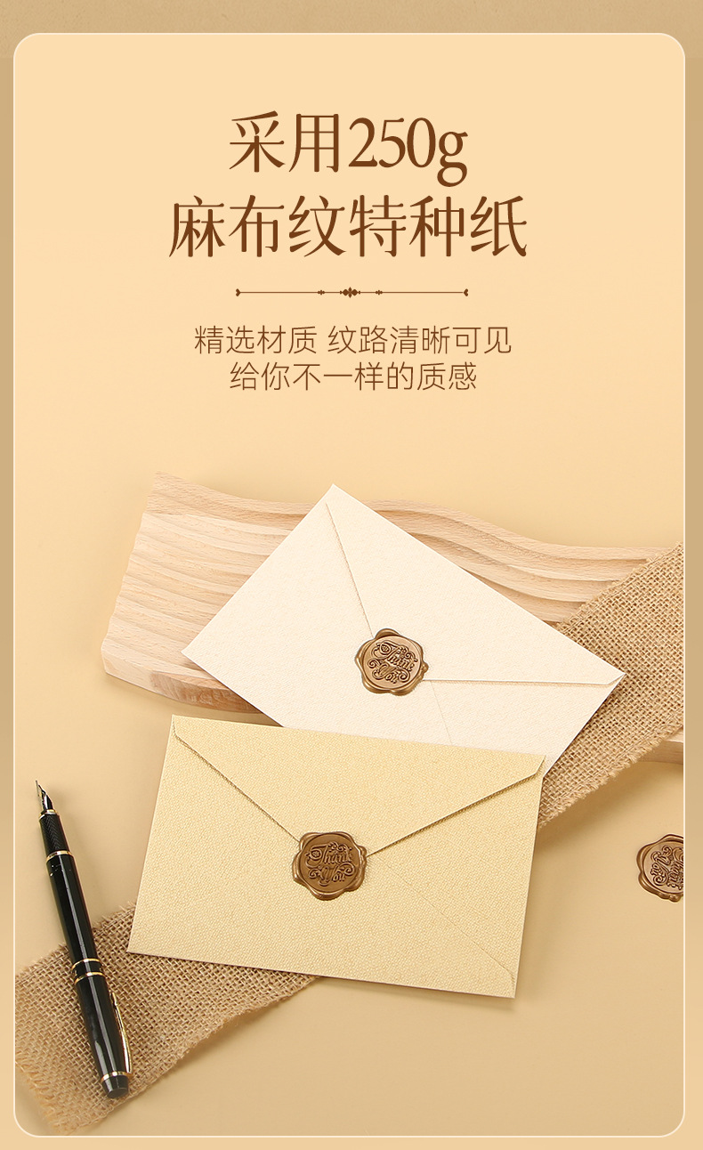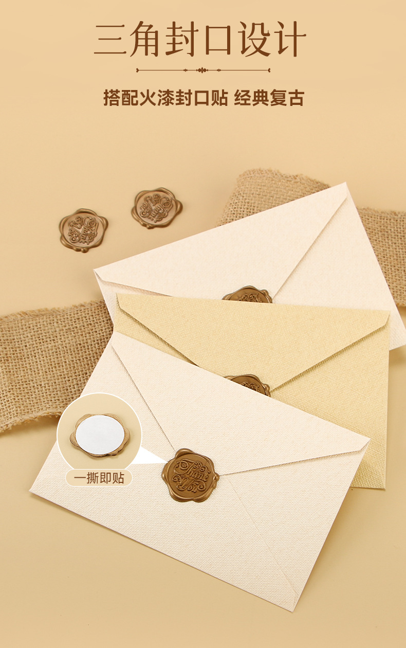 麻布信封信纸套装复古风情书信送男女友表白生日贺卡精美火漆信封