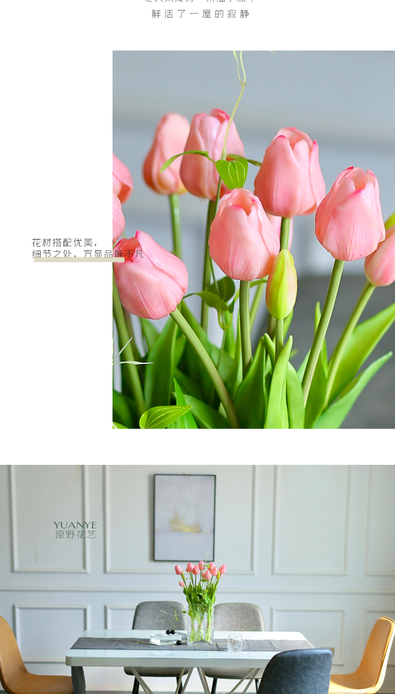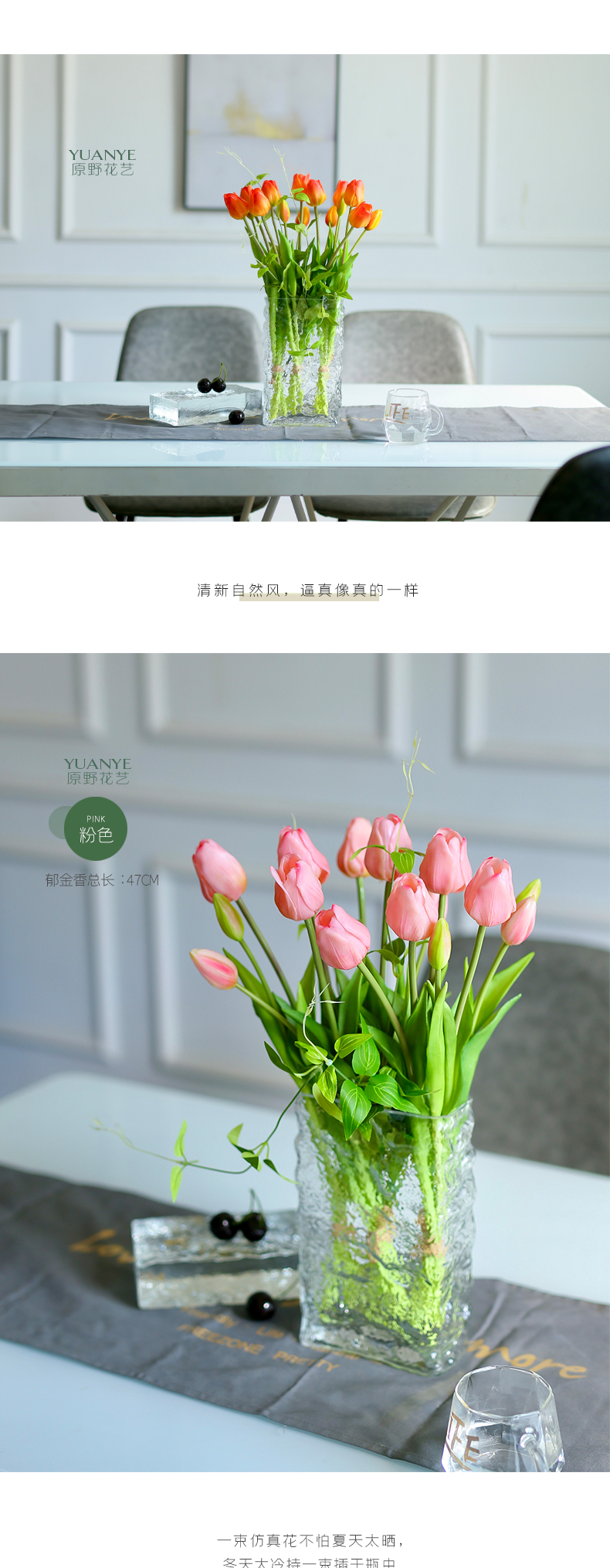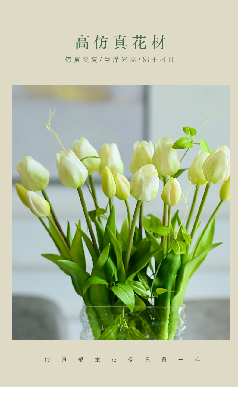郁金香仿真花高档pu手感保湿假花ins风客厅摆件餐桌玻璃装饰摆设