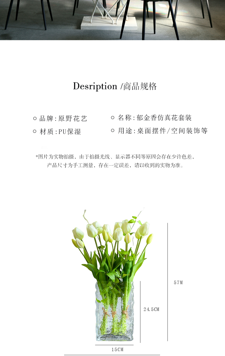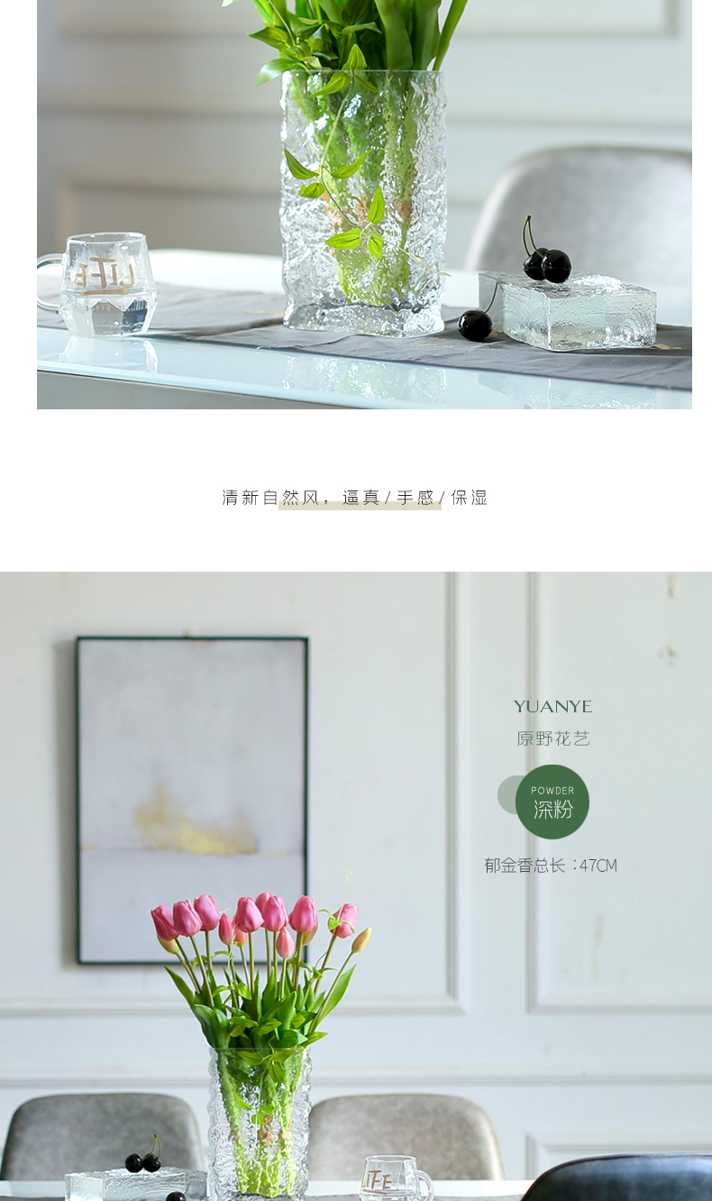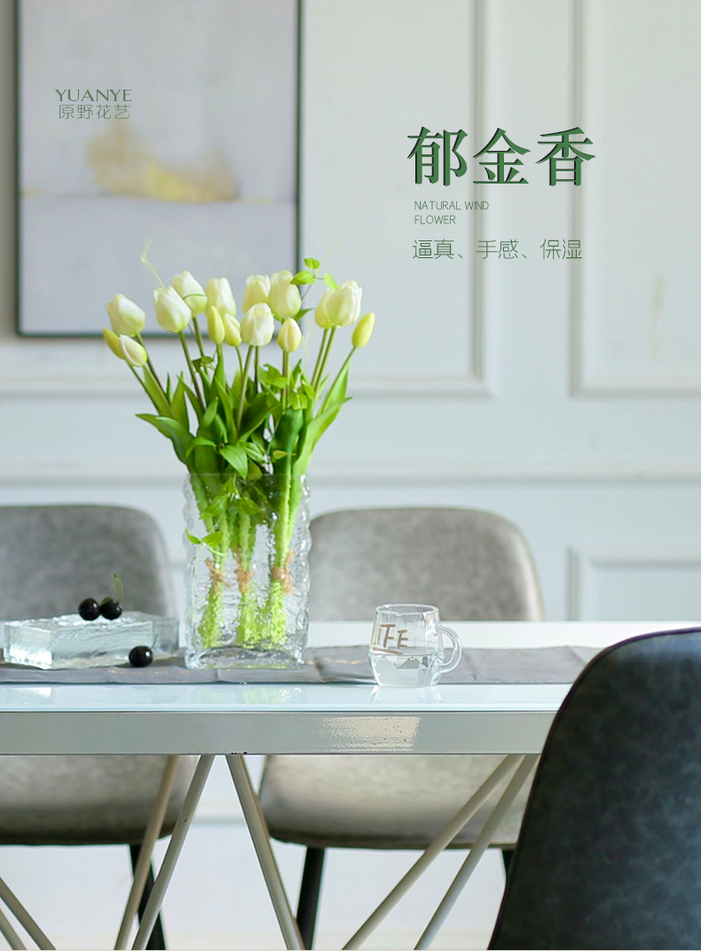 郁金香仿真花高档pu手感保湿假花ins风客厅摆件餐桌玻璃装饰摆设