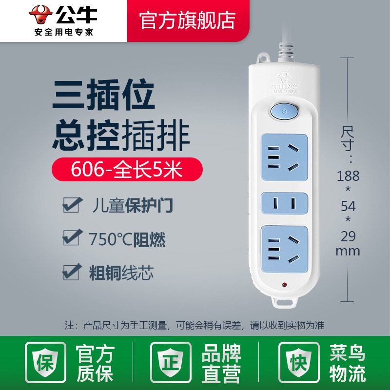 公牛插座旗舰店插排插线板拖线板电源插座606/607