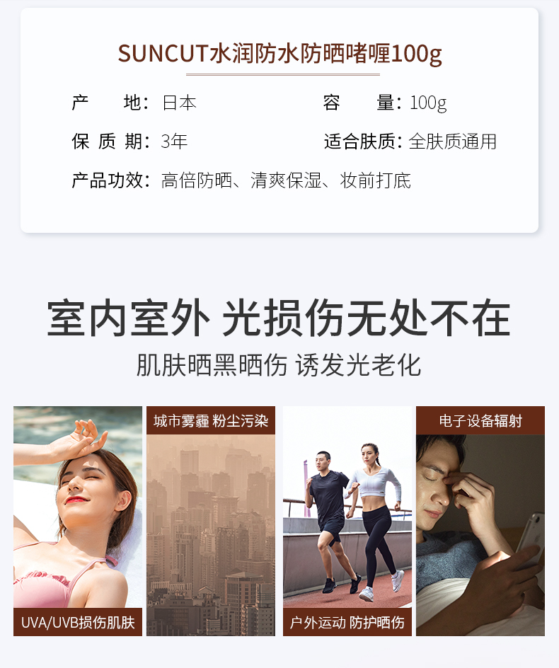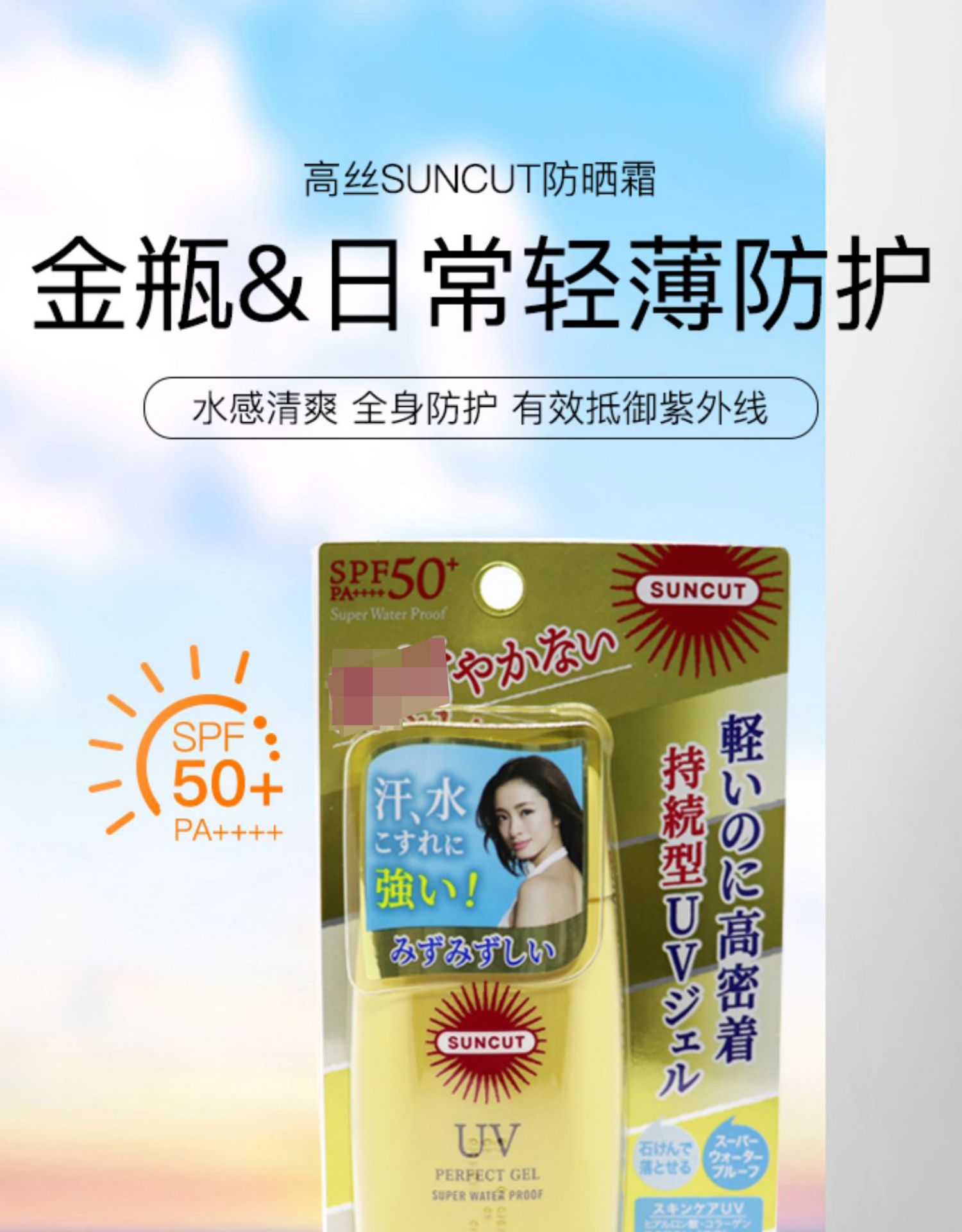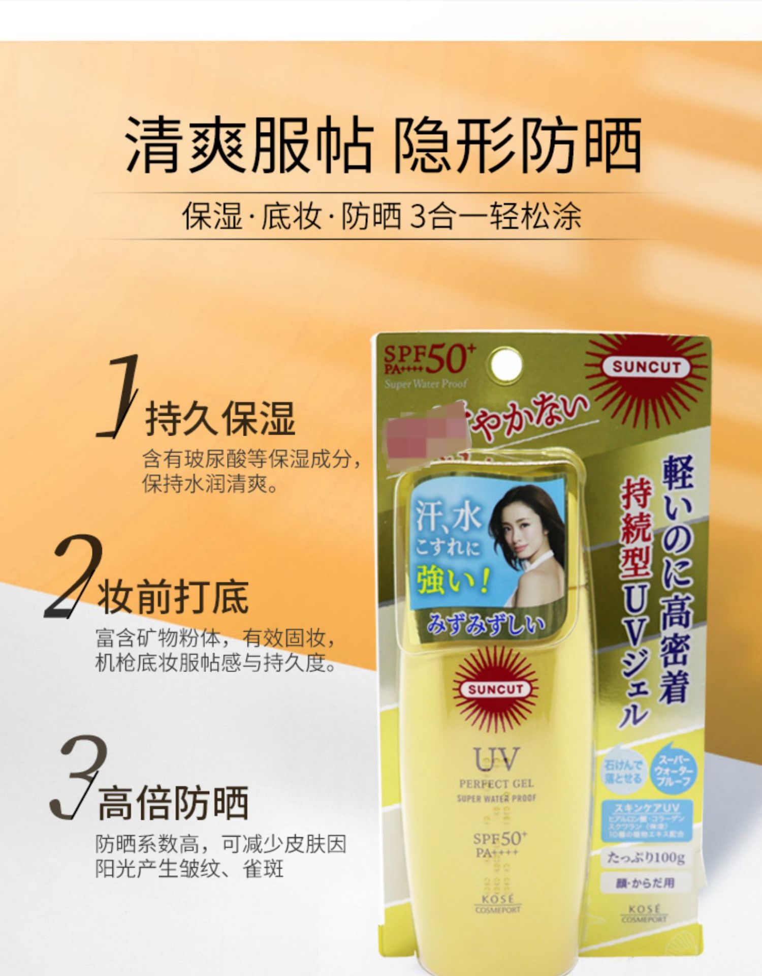 日本KOSE高丝防晒乳霜啫喱suncut小金瓶防水防汗100g
