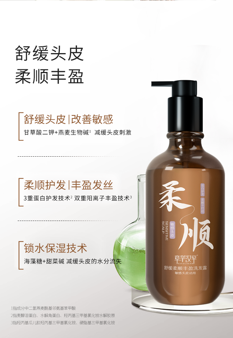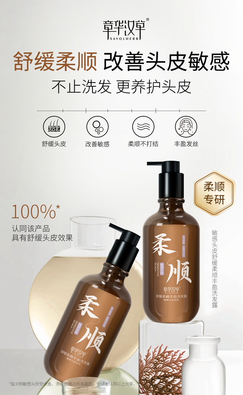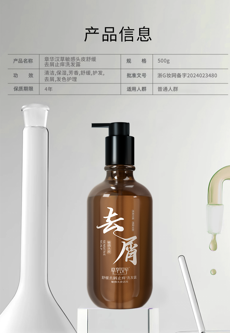 【产品名称】:章华汉草舒缓控油蓬松、柔顺、去屑洗发露