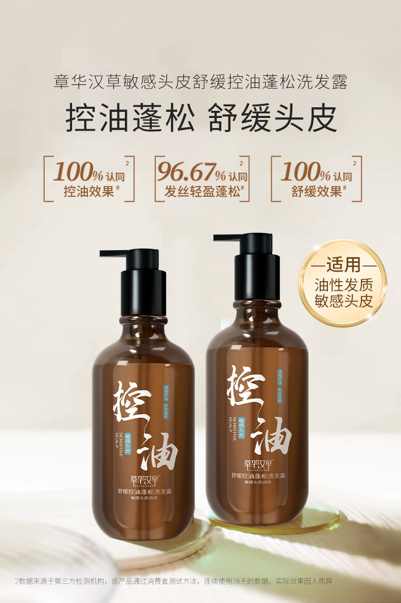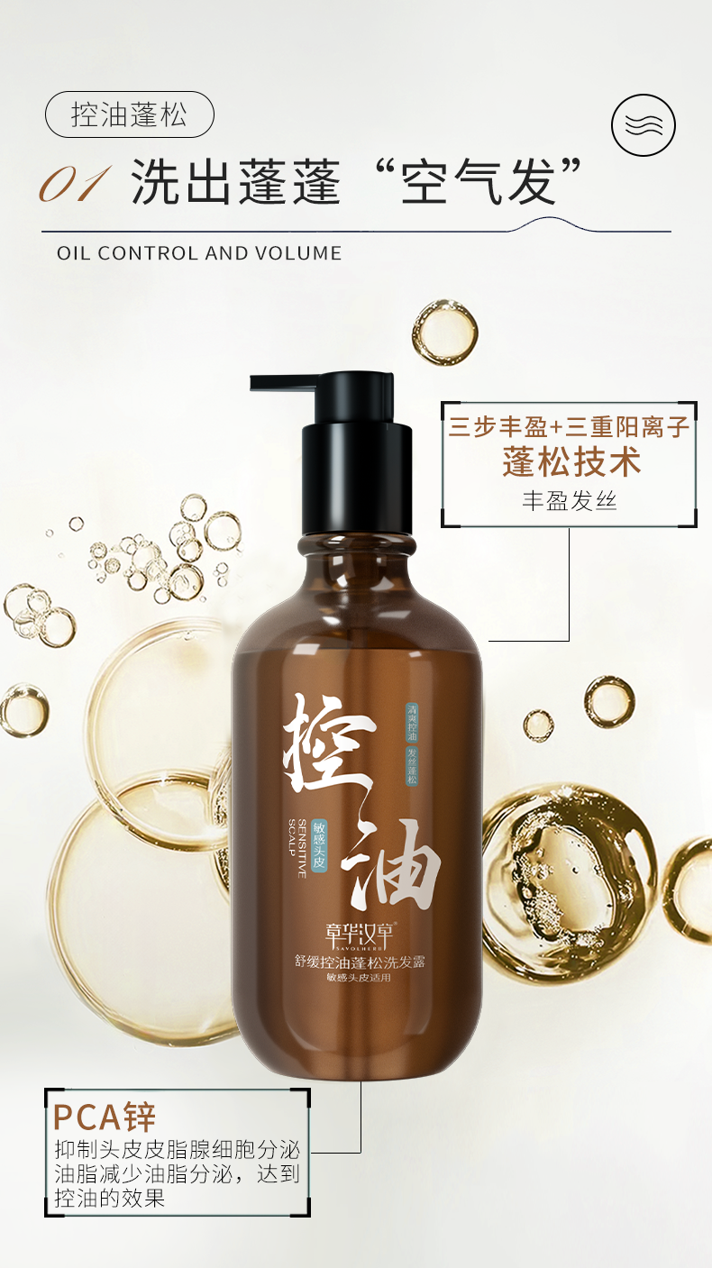 【章华汉草舒缓控油蓬松/去屑洗发露】清爽控油 ,发丝蓬松,专注易扁塌洗发水ZH