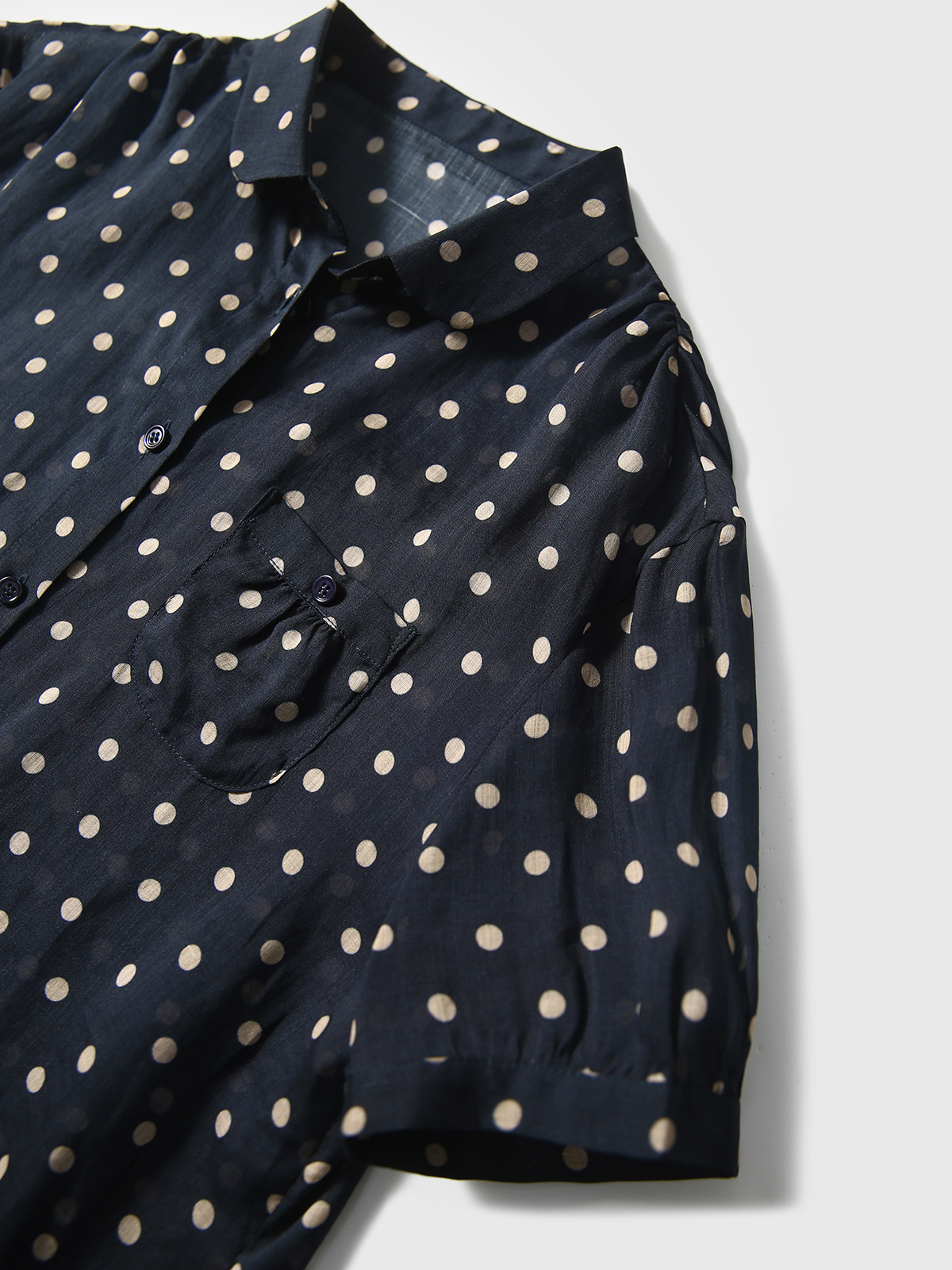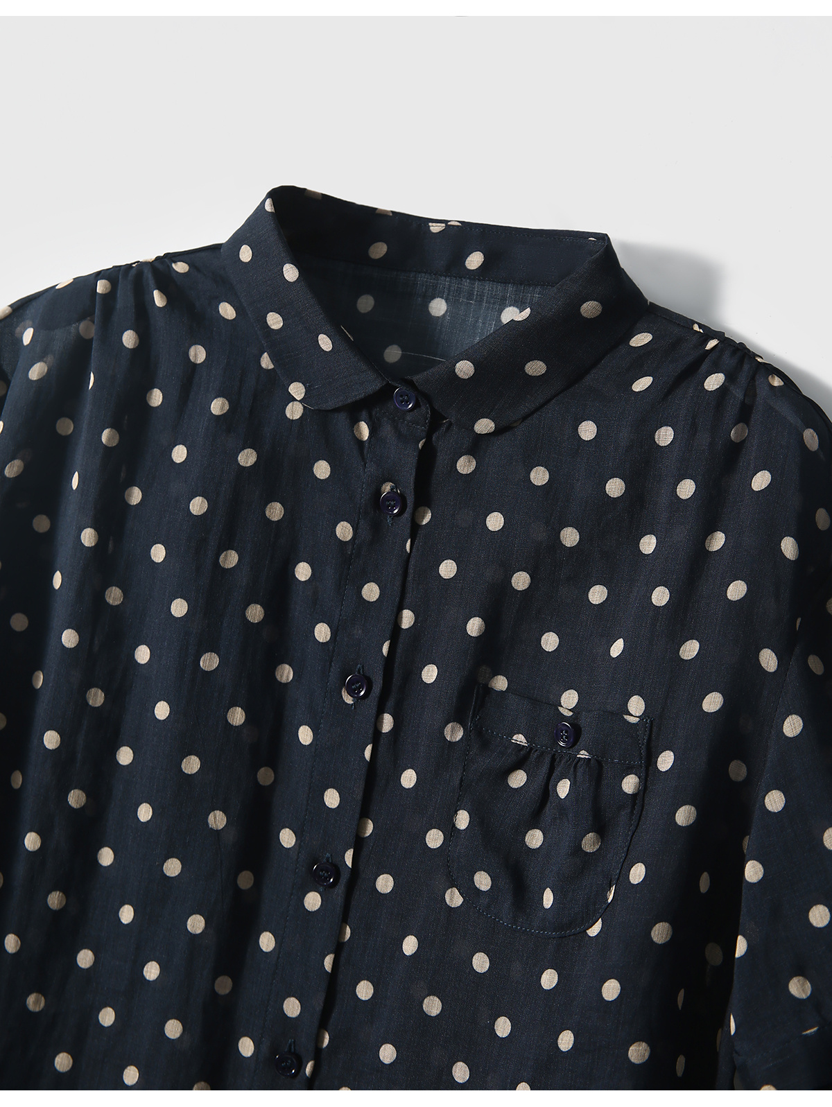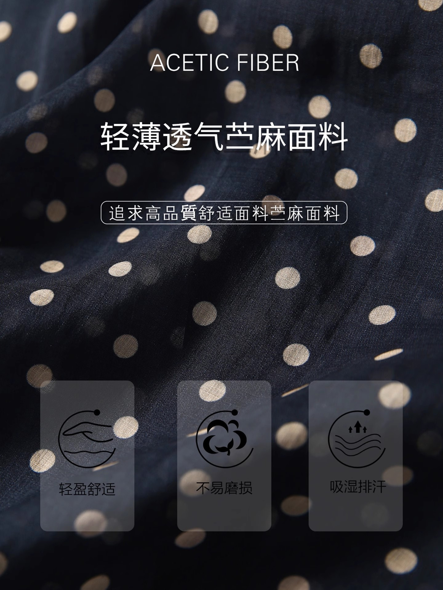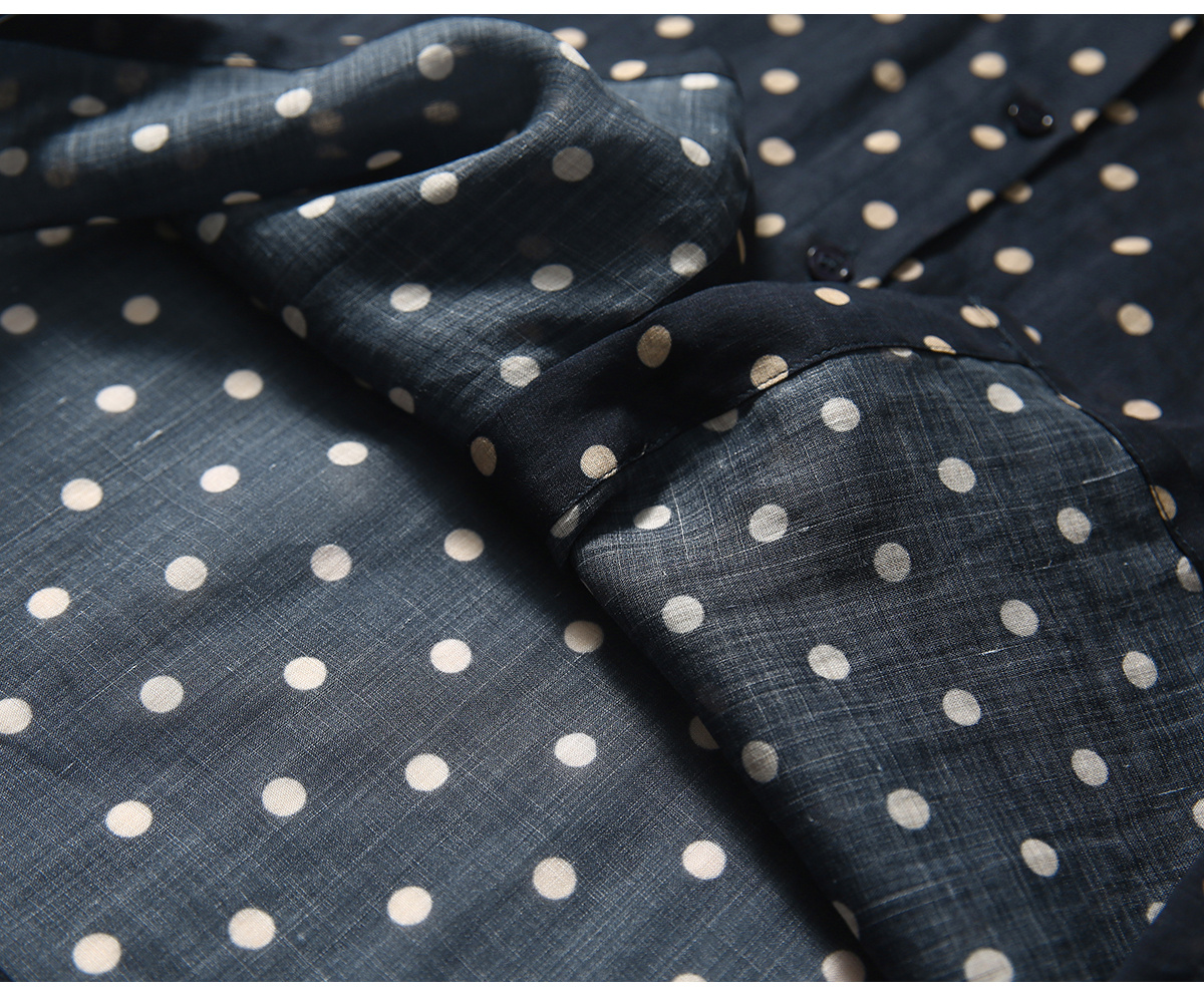 藏青底色搭配浅米色波点,简约中透着复古韵味,无论是通勤上班,还是周末出游