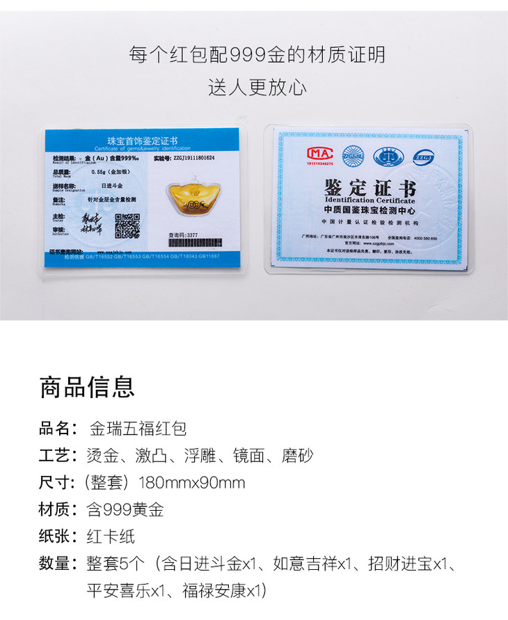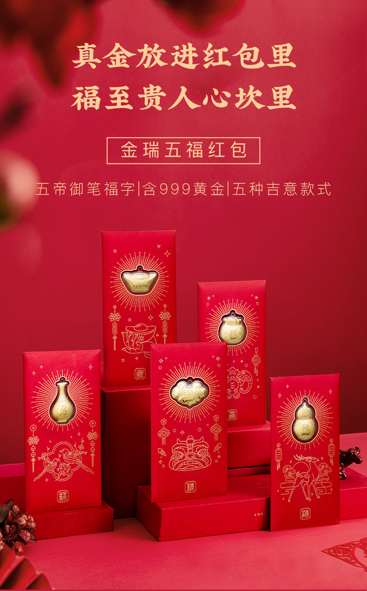 【好物】金瑞五福红包 含999黄金 五种吉祥款式
