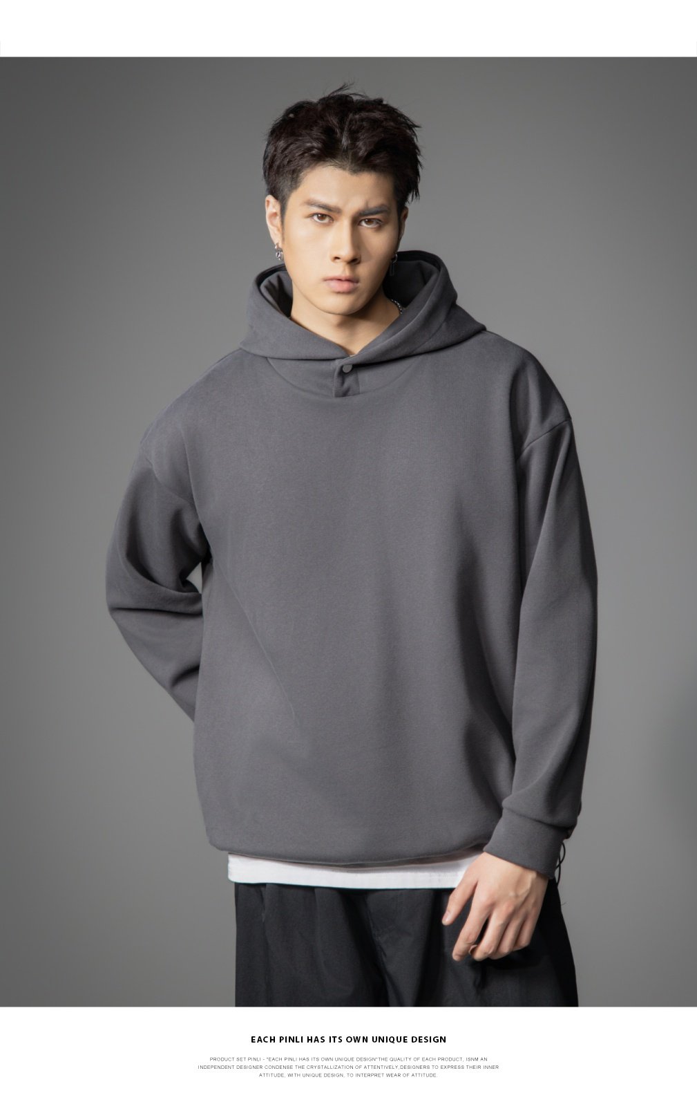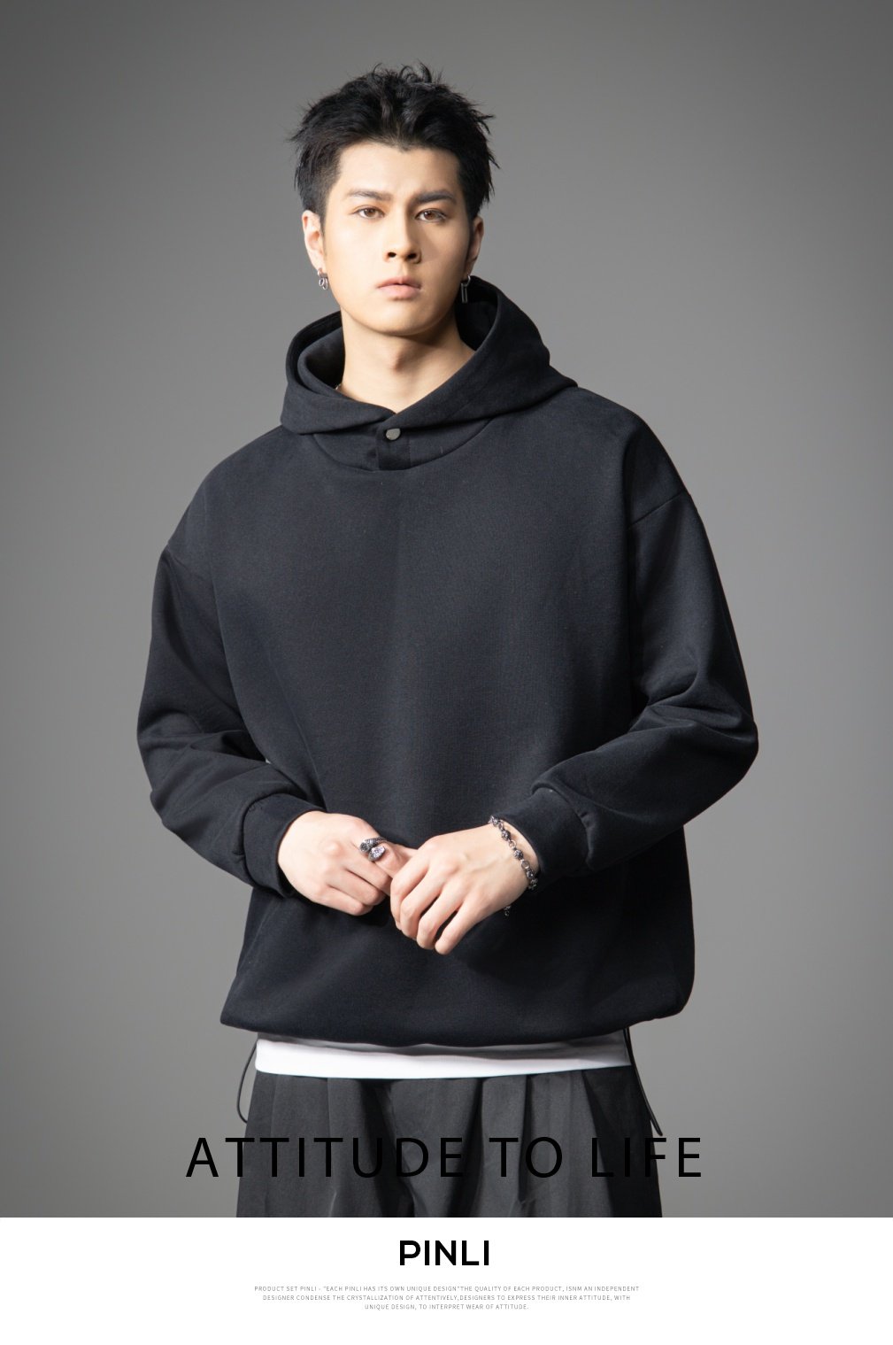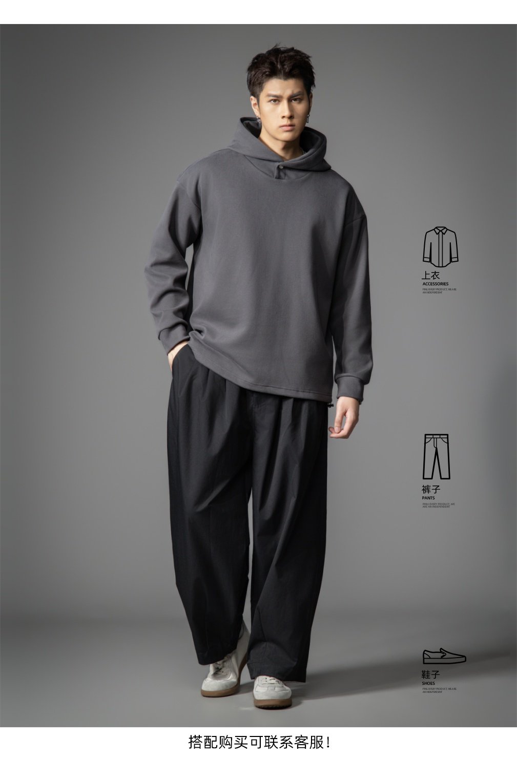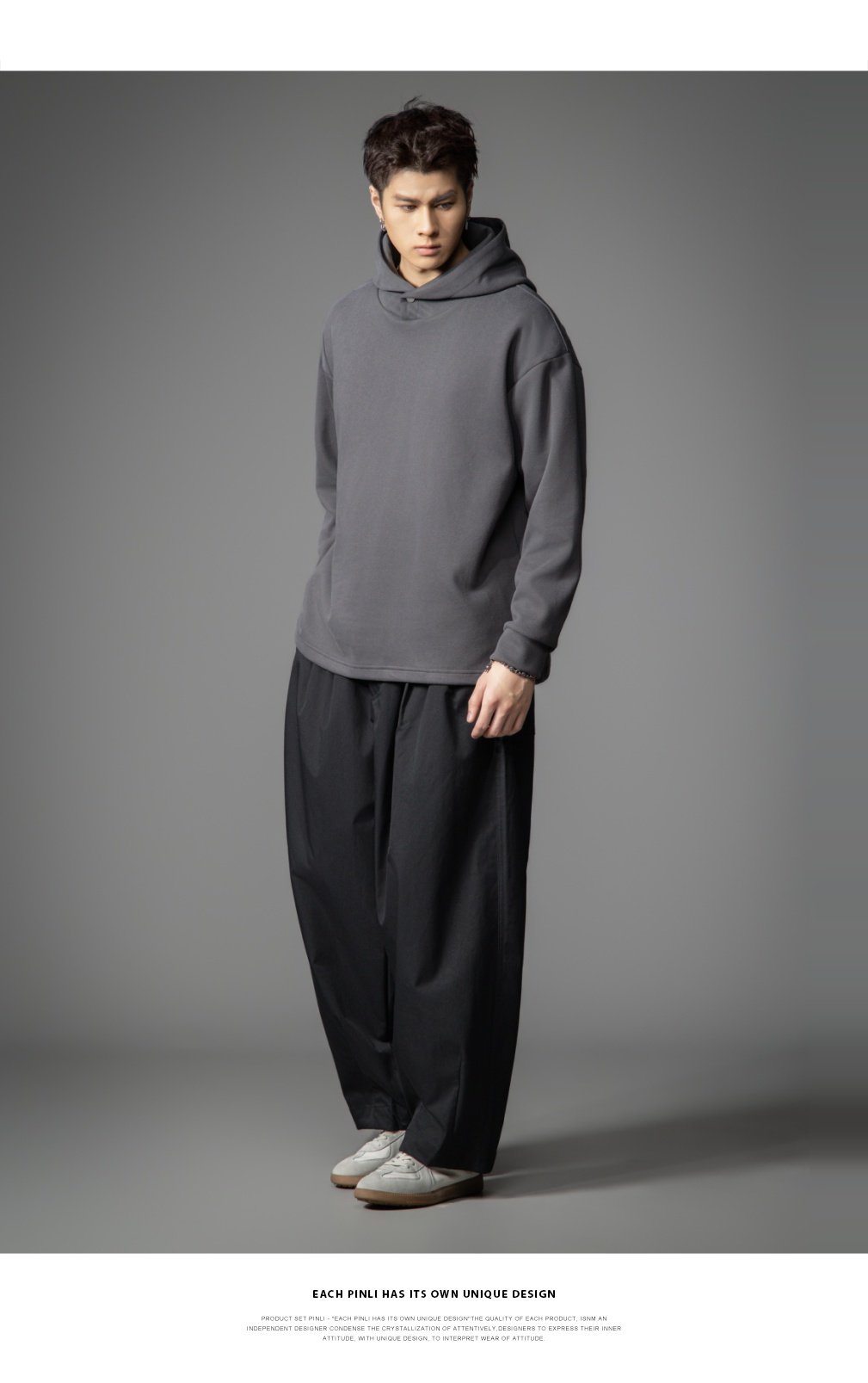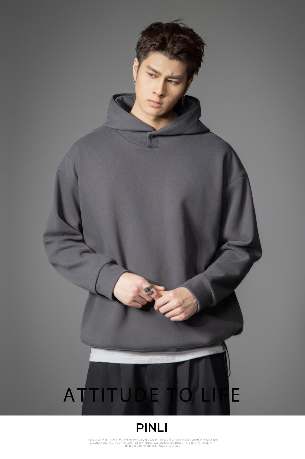 PINLI品立2026春季新款男士潮牌宽松纯色连帽落肩袖套头卫衣上衣B262109005