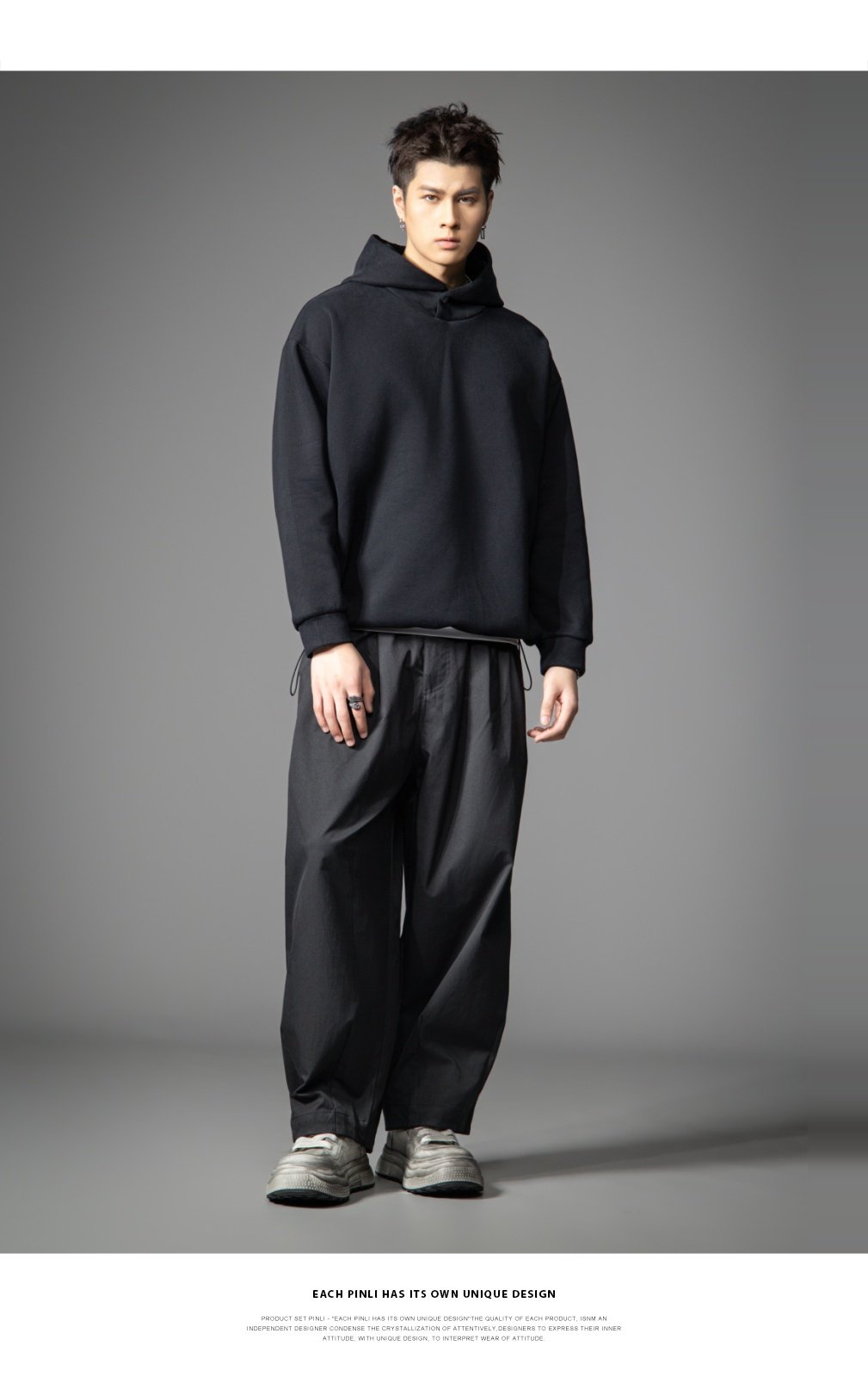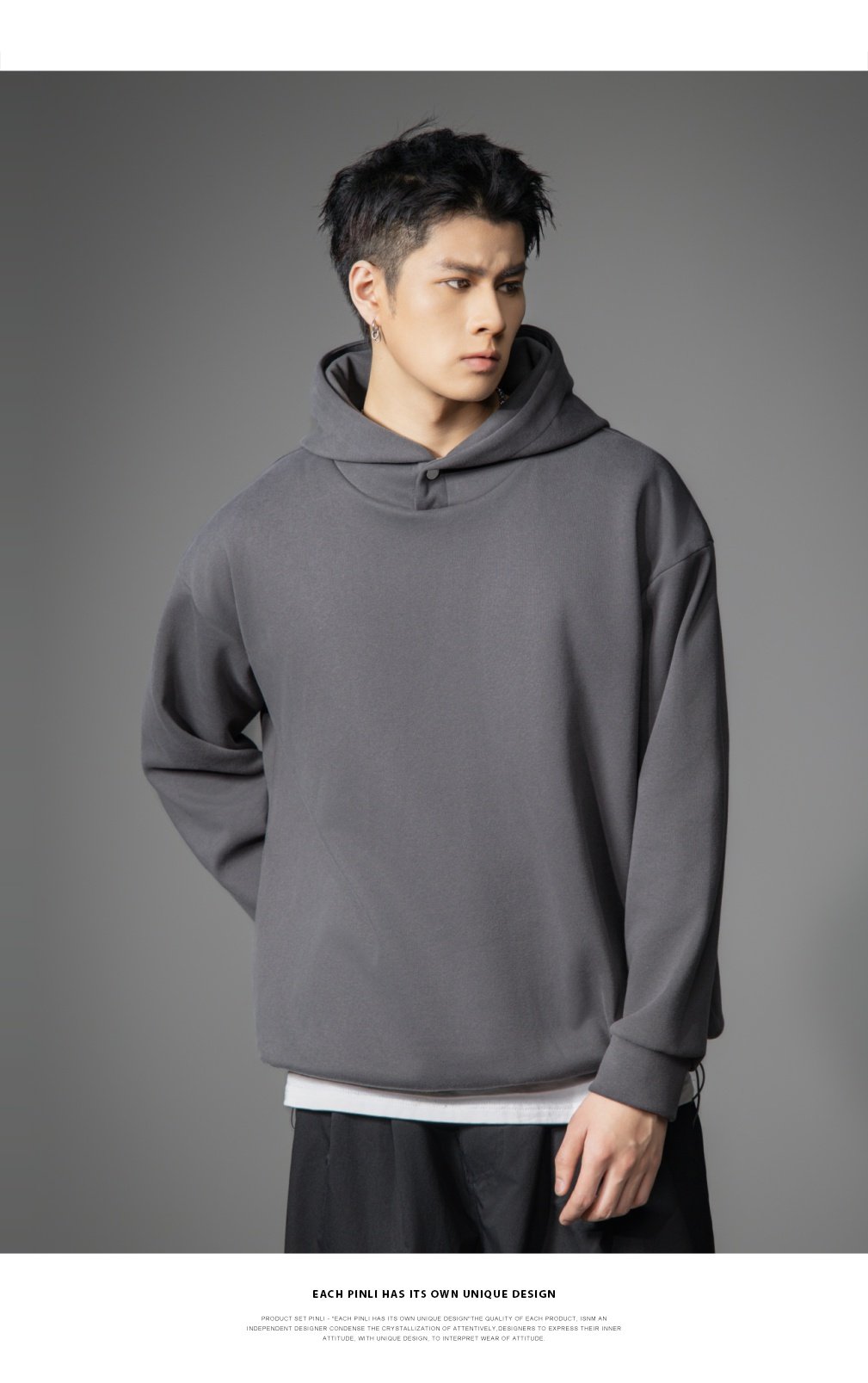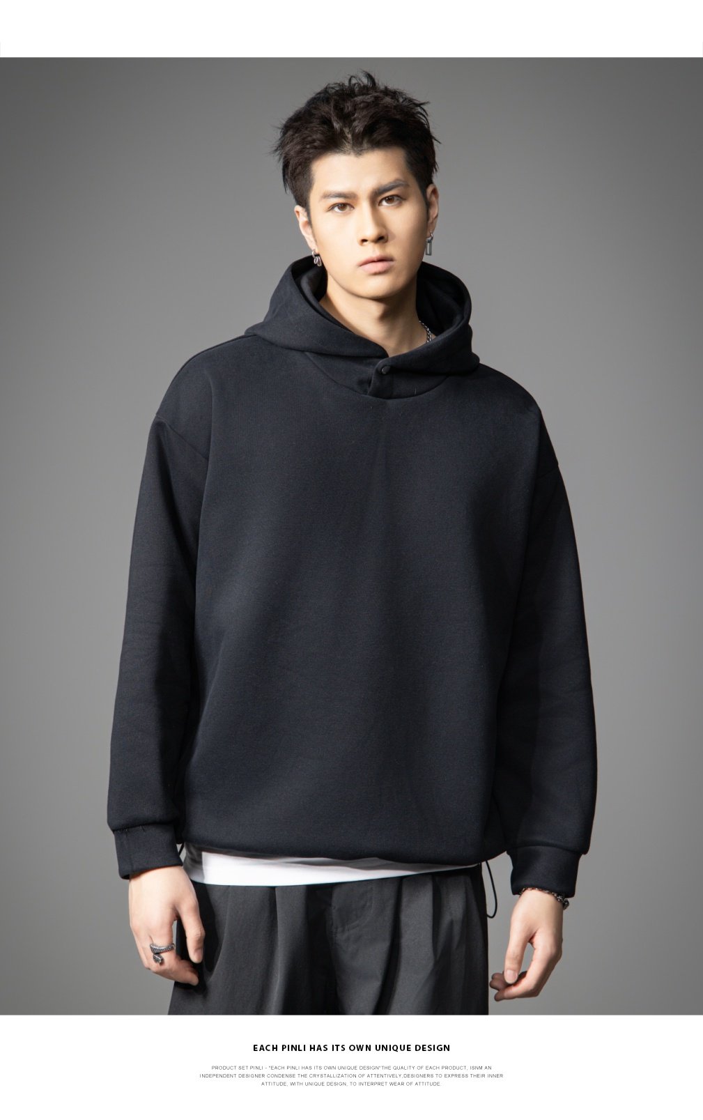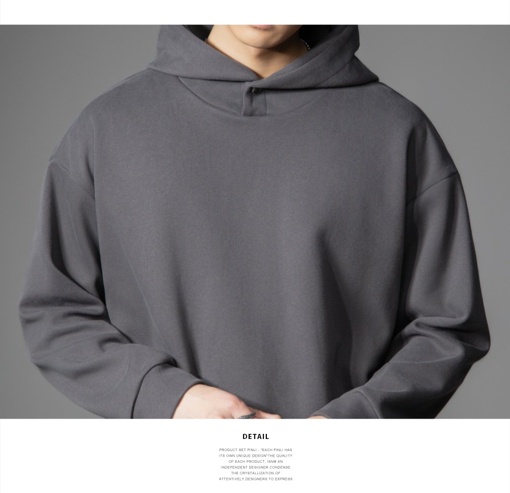 PINLI品立2026春季新款男士潮牌宽松纯色连帽落肩袖套头卫衣上衣B262109005