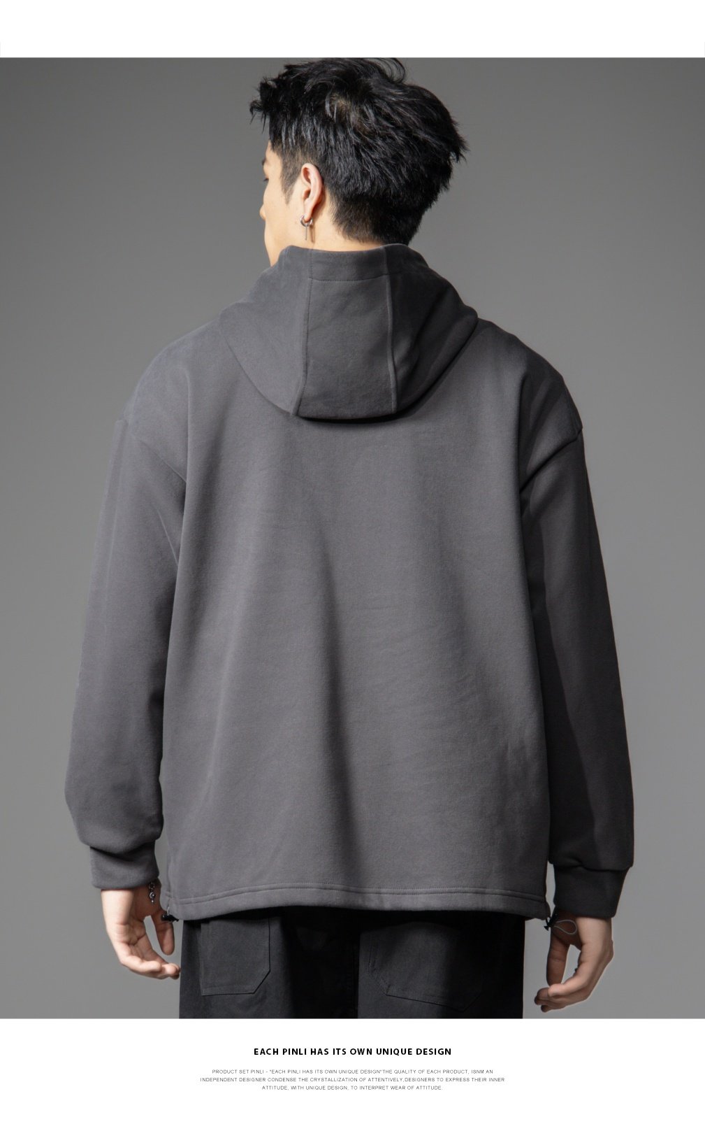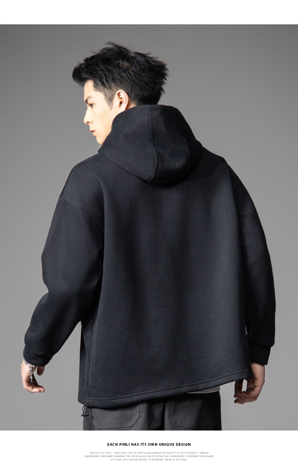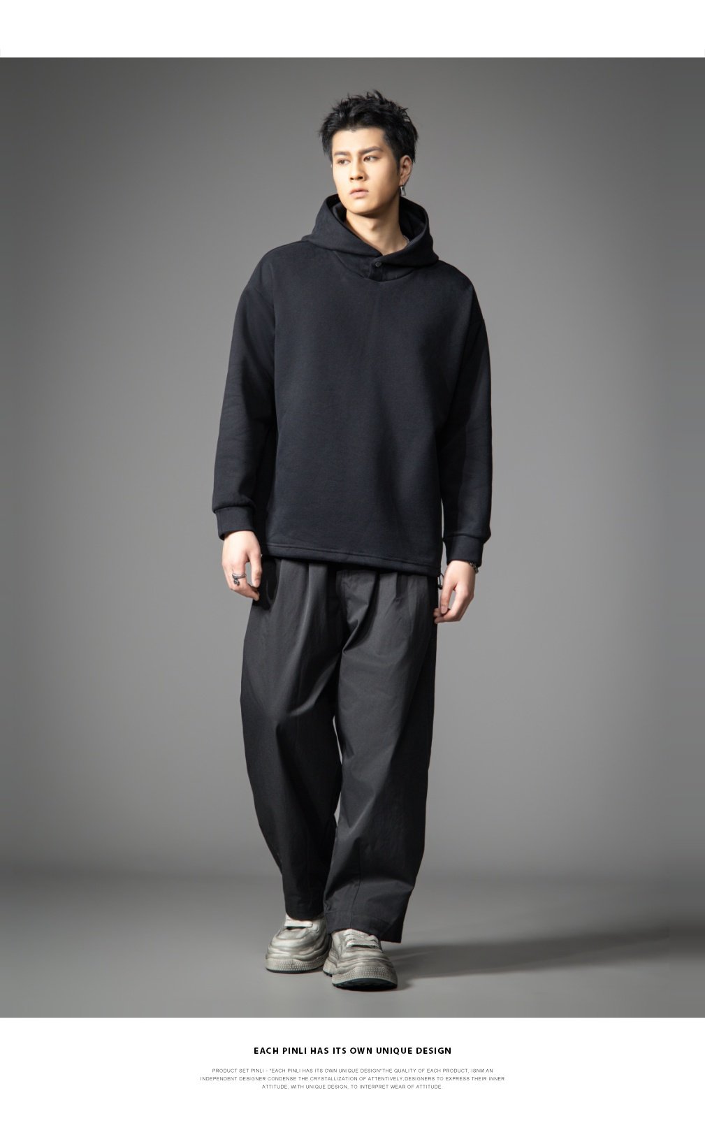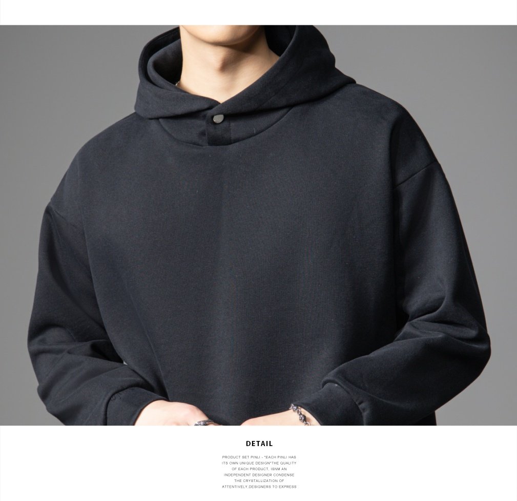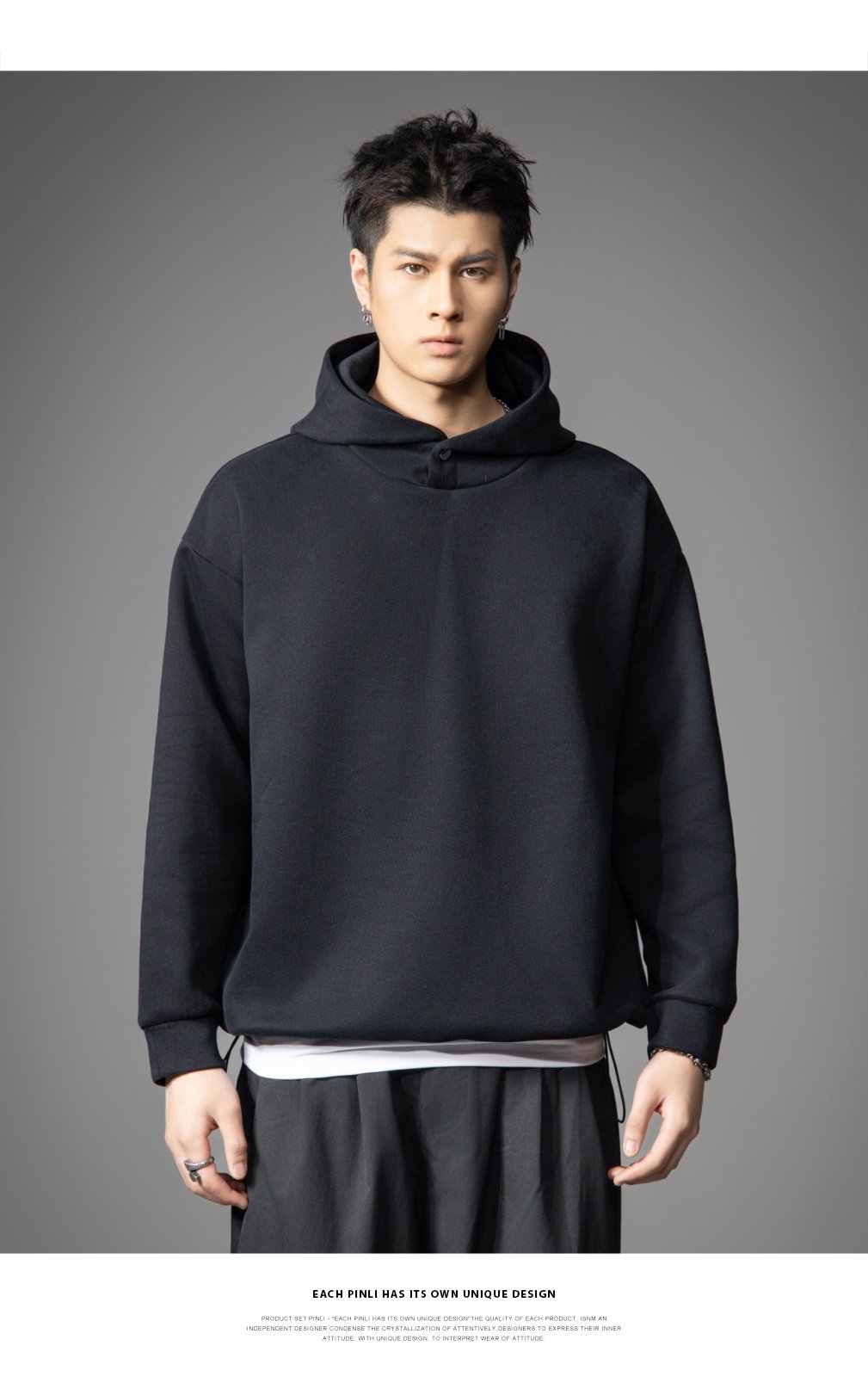 PINLI品立2026春季新款男士潮牌宽松纯色连帽落肩袖套头卫衣上衣B262109005