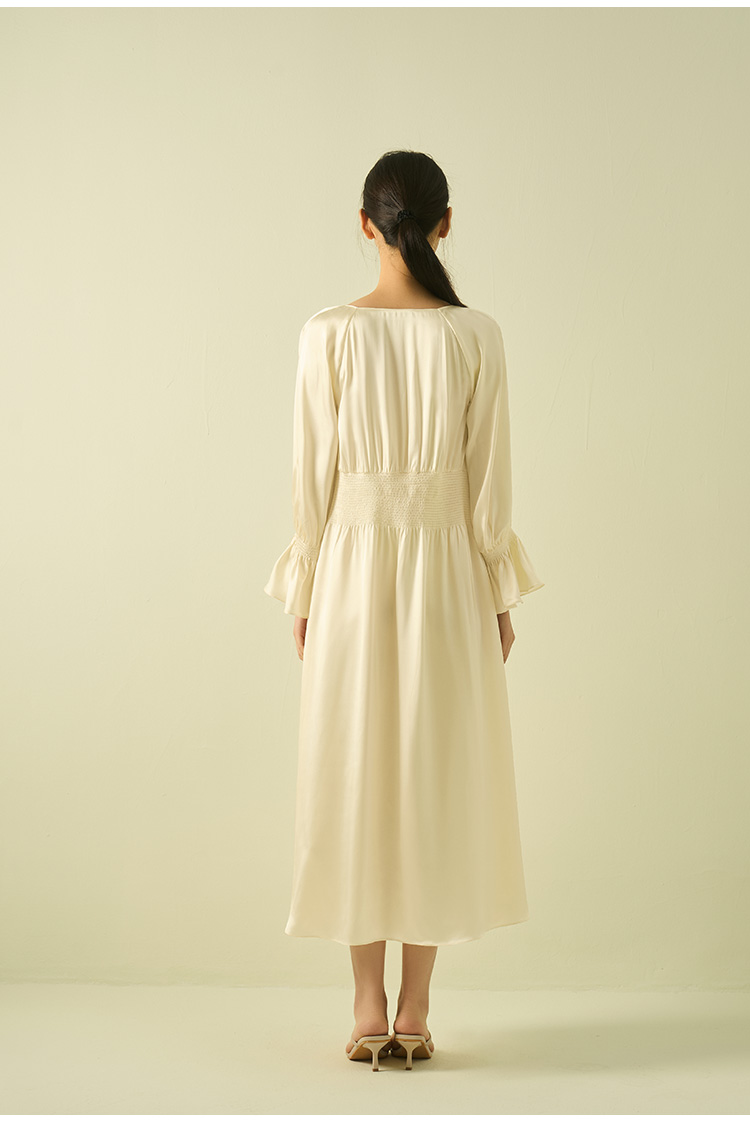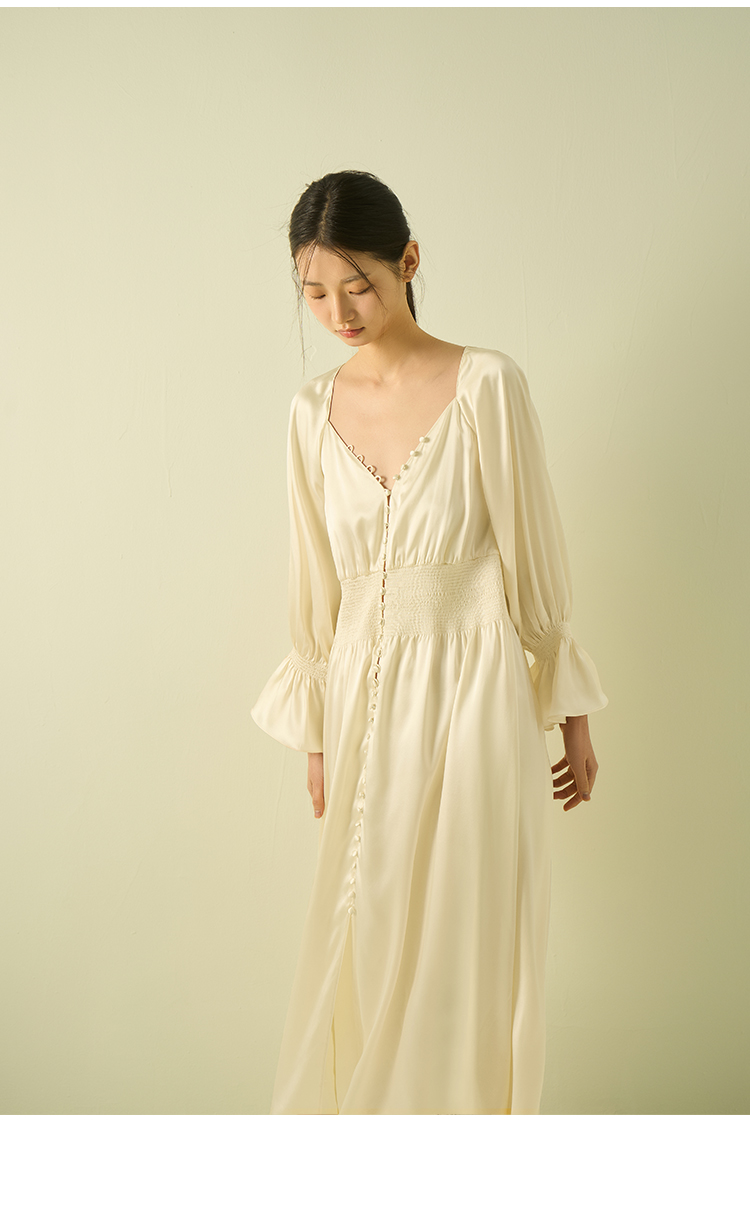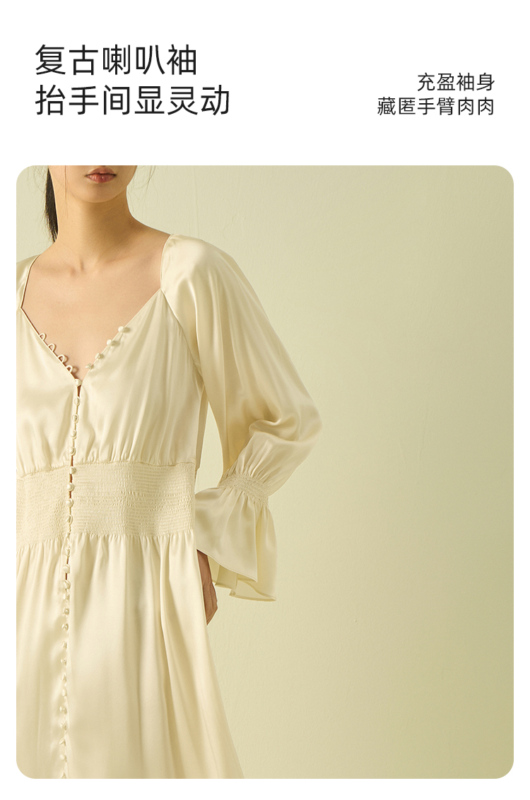桑罗法式宫廷风复古收腰喇叭袖真丝长裙可外穿2025年春季新品
