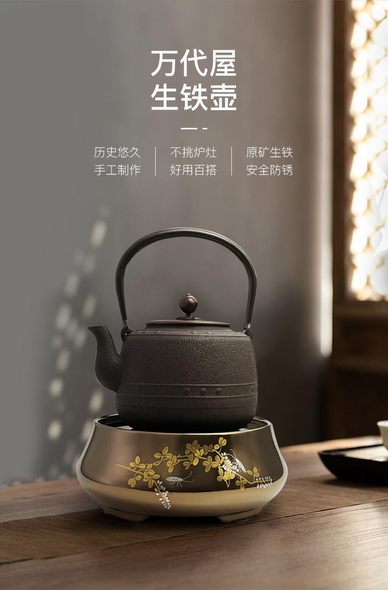 微哲明丨禅钟 万代屋生铁壶 煮茶壶 1200ml 赠壶叉、壶垫