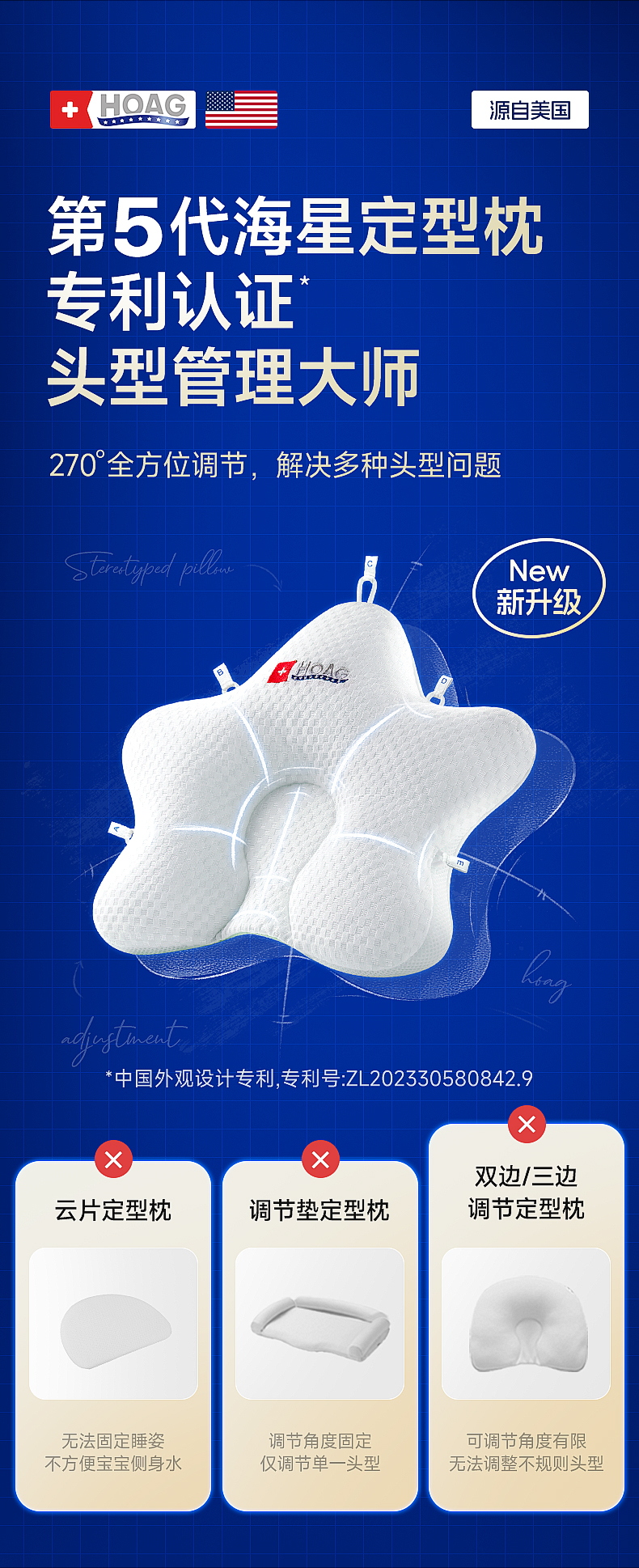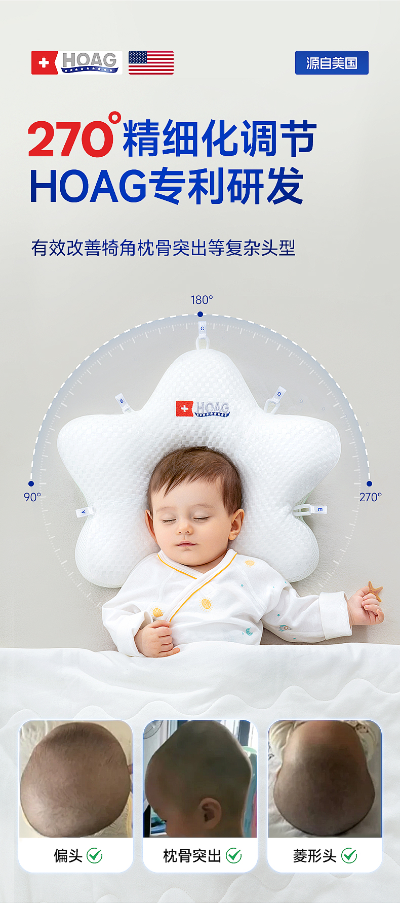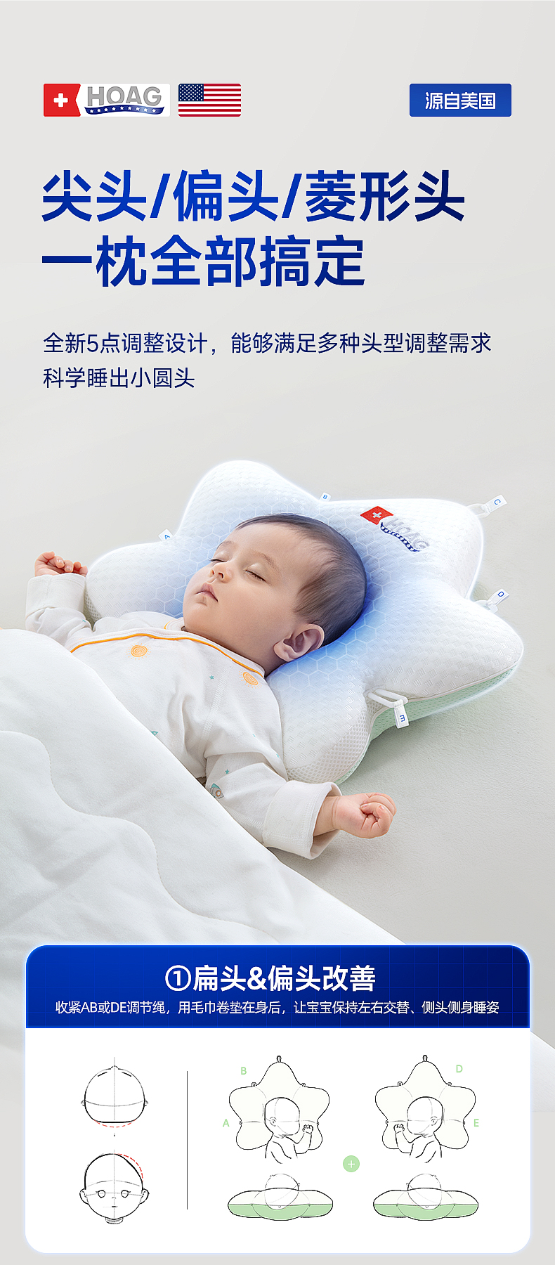 Hoag(霍格)婴儿定型枕纠正头型0一6-12月矫正新生儿宝宝枕头