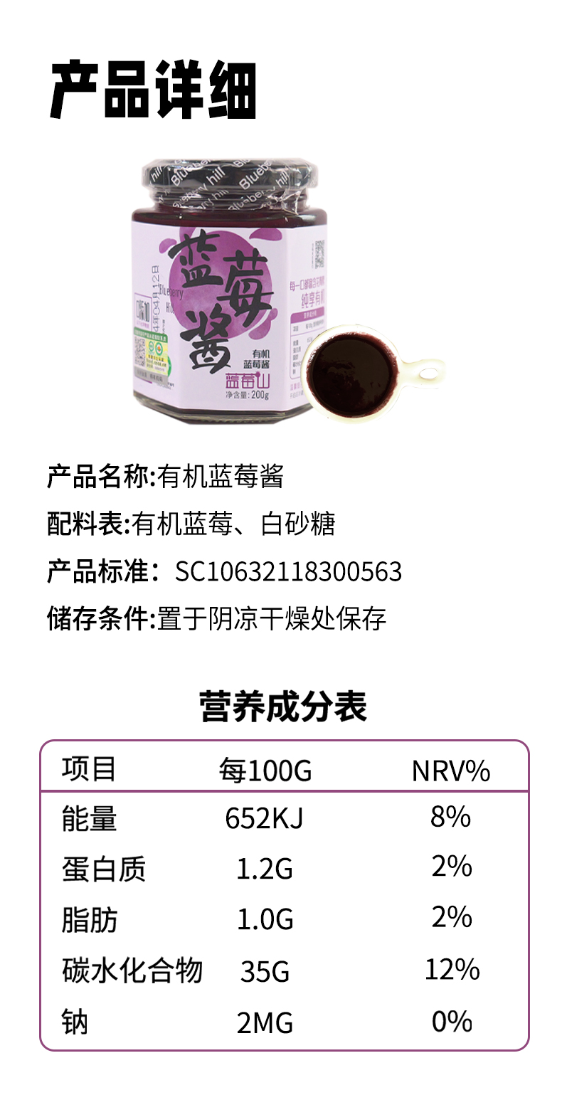 蓝莓山|有机蓝莓酱200克早餐涂抹面包沙拉拌酸奶有机认证蓝莓酱