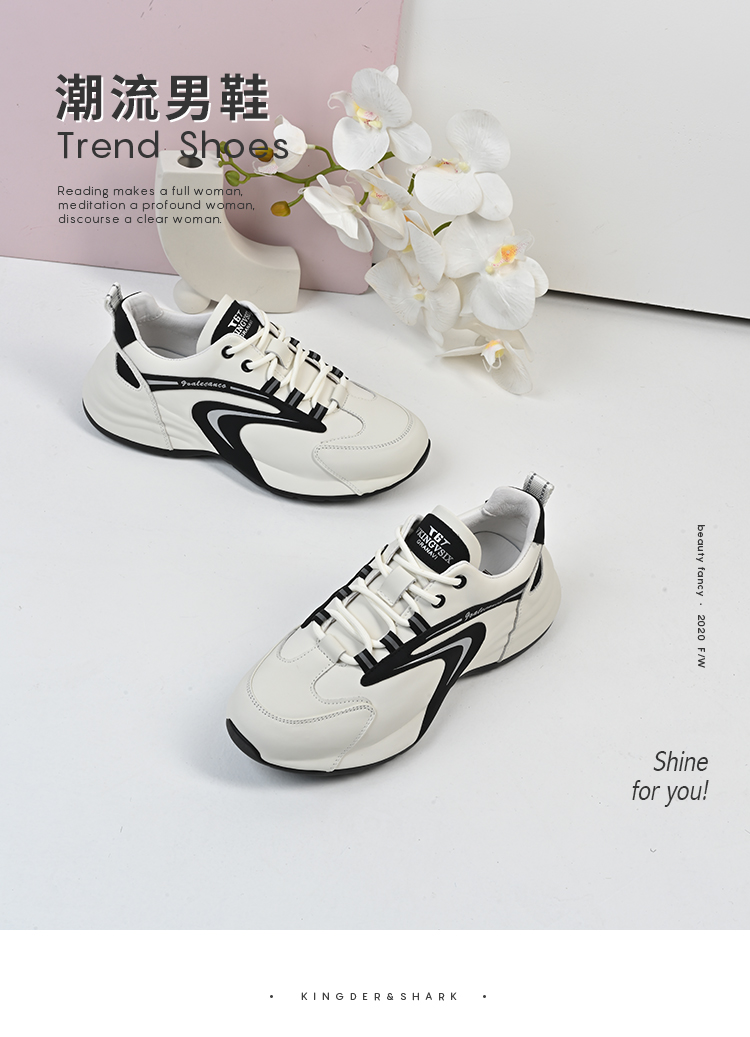 经典鲨2024年男士系带平色平底休闲鞋跑步鞋KW270-D14021
