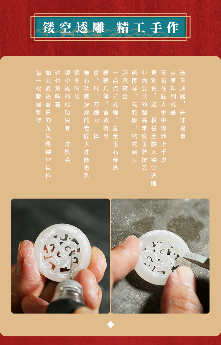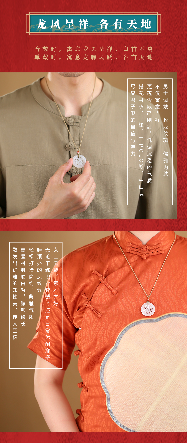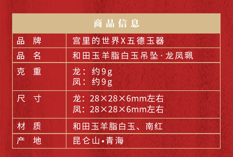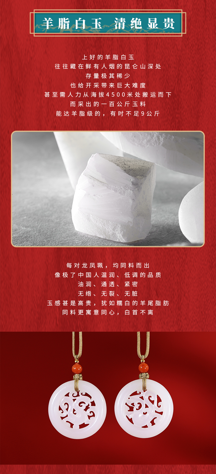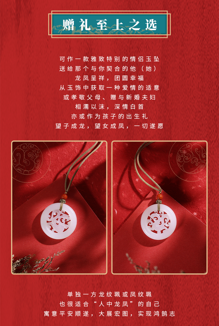 【宫里龙凤牌】 和田玉羊脂白玉龙凤珮
