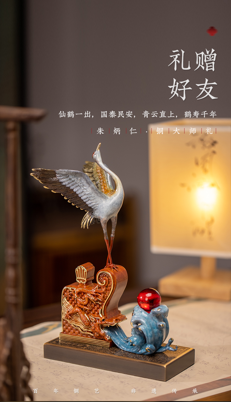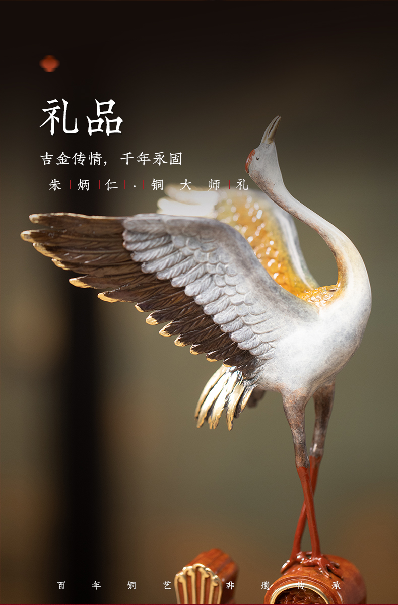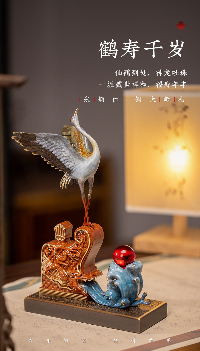 朱炳仁铜 鹤寿千岁 仙鹤摆件 装饰 铜雕祝寿生日礼物玄关