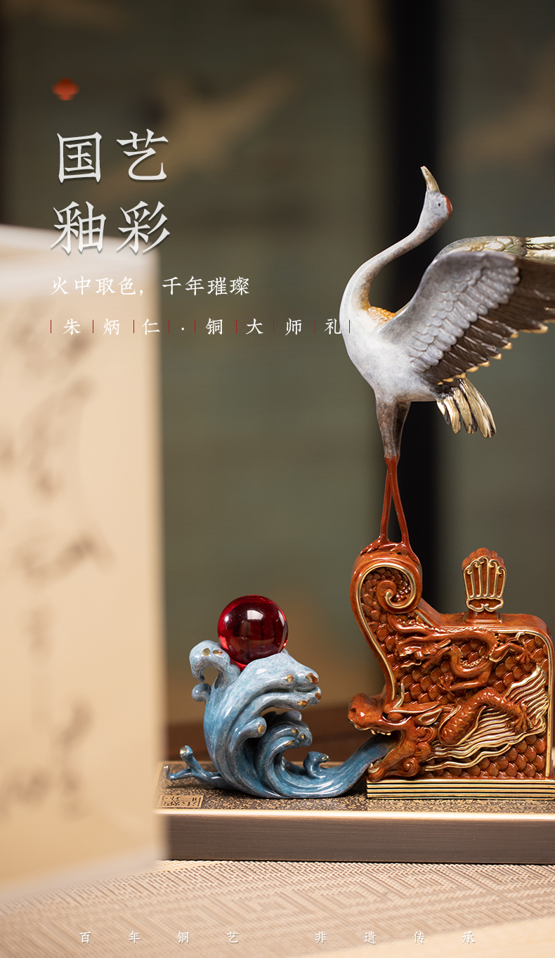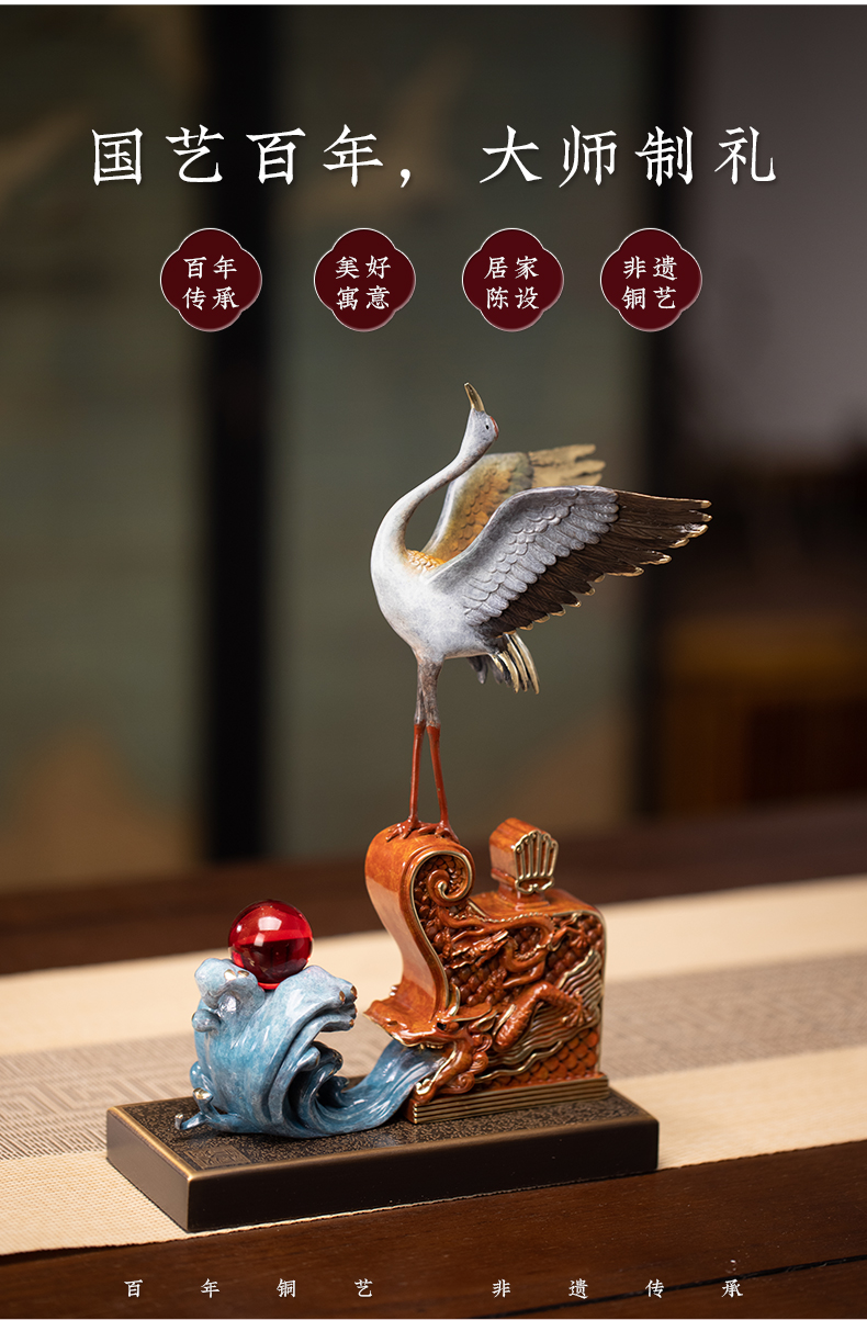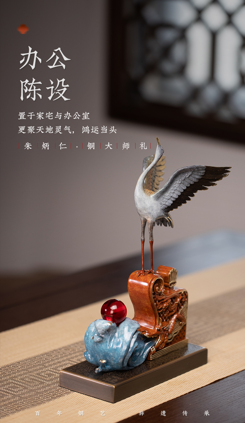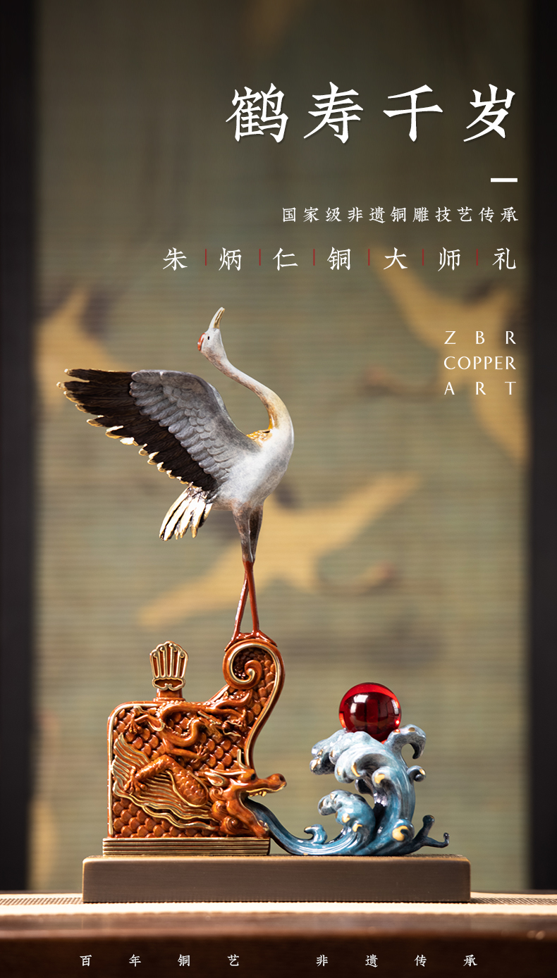 朱炳仁铜 鹤寿千岁 仙鹤摆件 装饰 铜雕祝寿生日礼物玄关