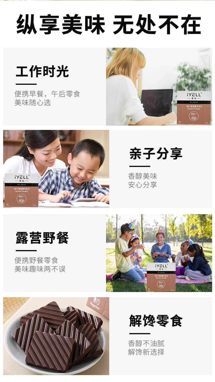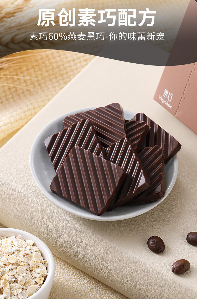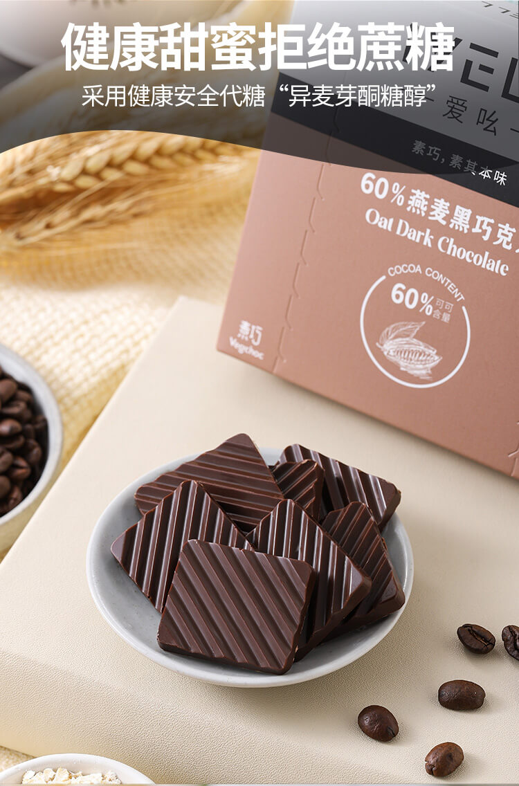 iYELL爱吆素巧60%燕麦黑巧克力纯可可脂不添加蔗糖素食黑巧