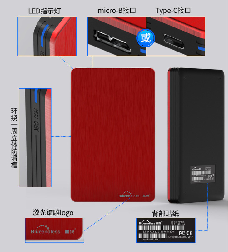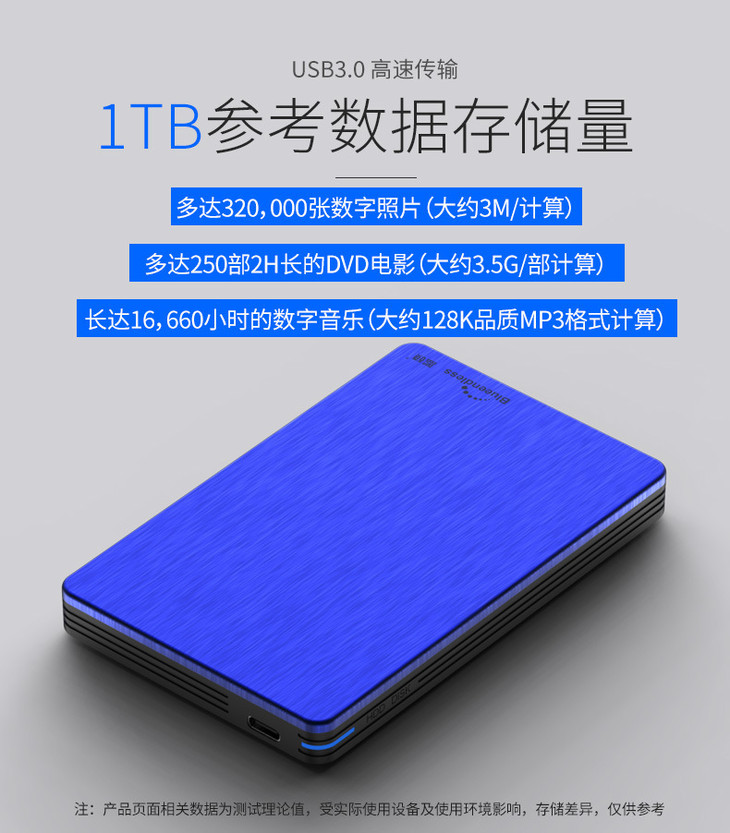 *【移动硬盘】蓝硕 移动硬盘1t 2t 500g金属硬盘超薄2.5寸USB3.0移动硬盘外置