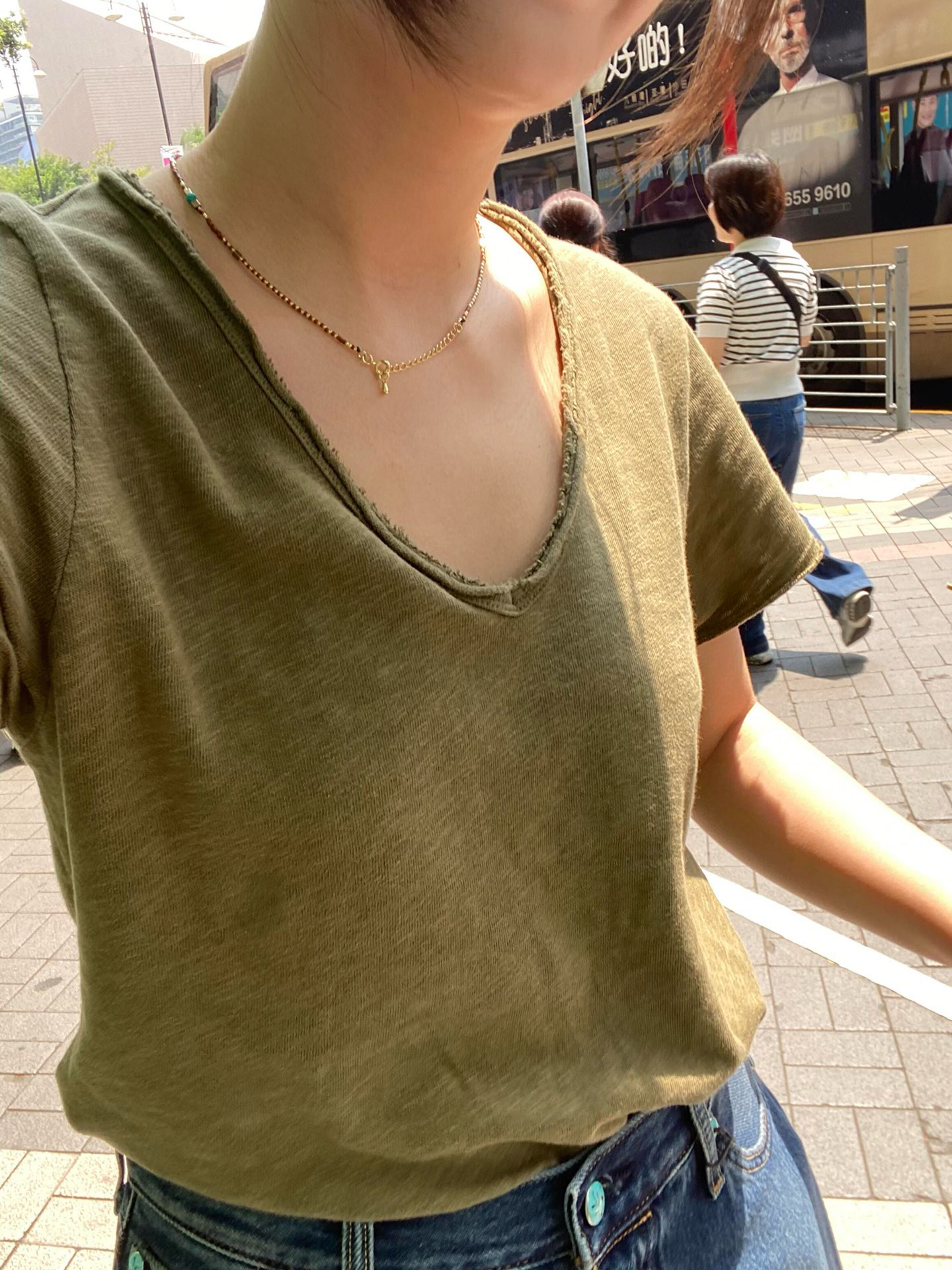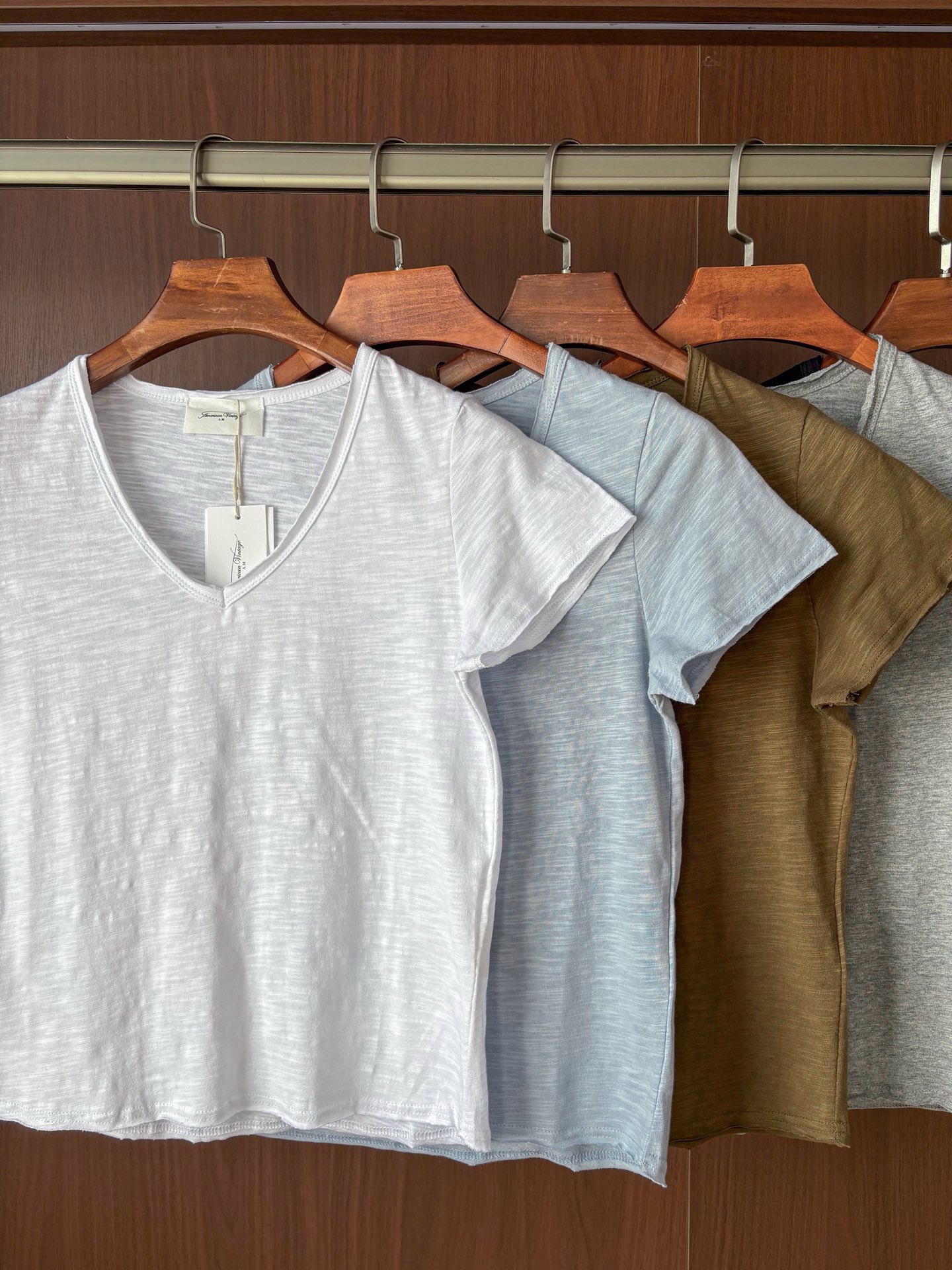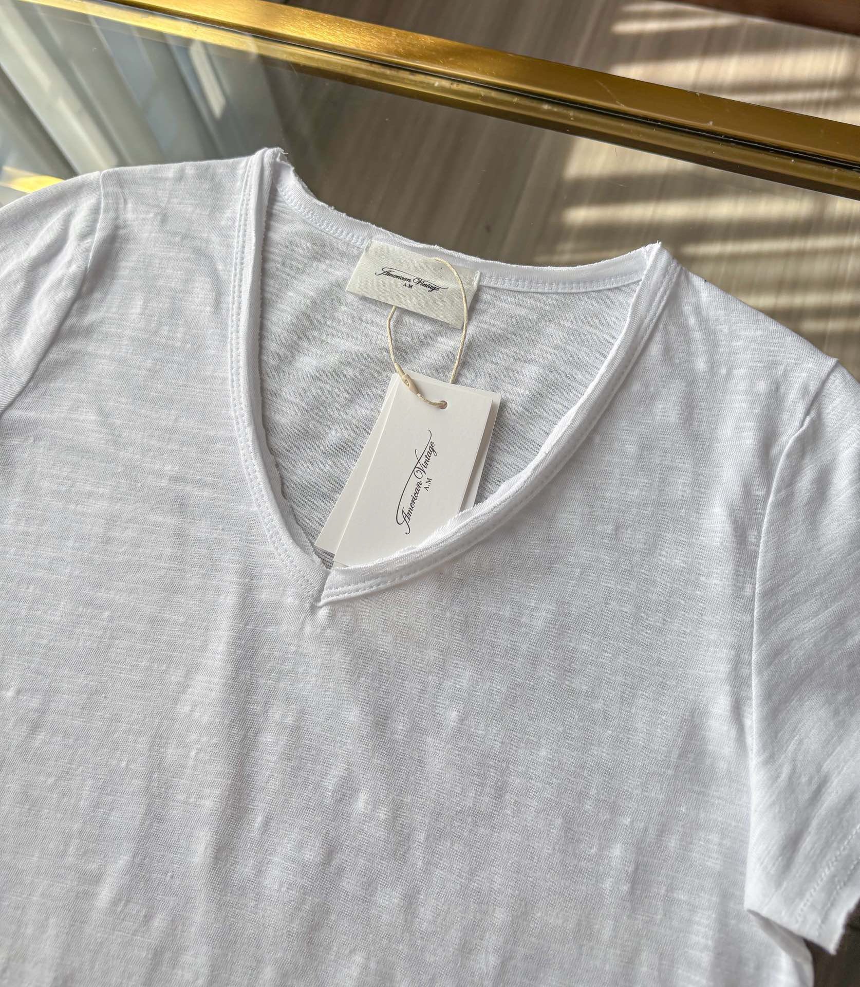 AMV 复古v领短袖"旧“T恤