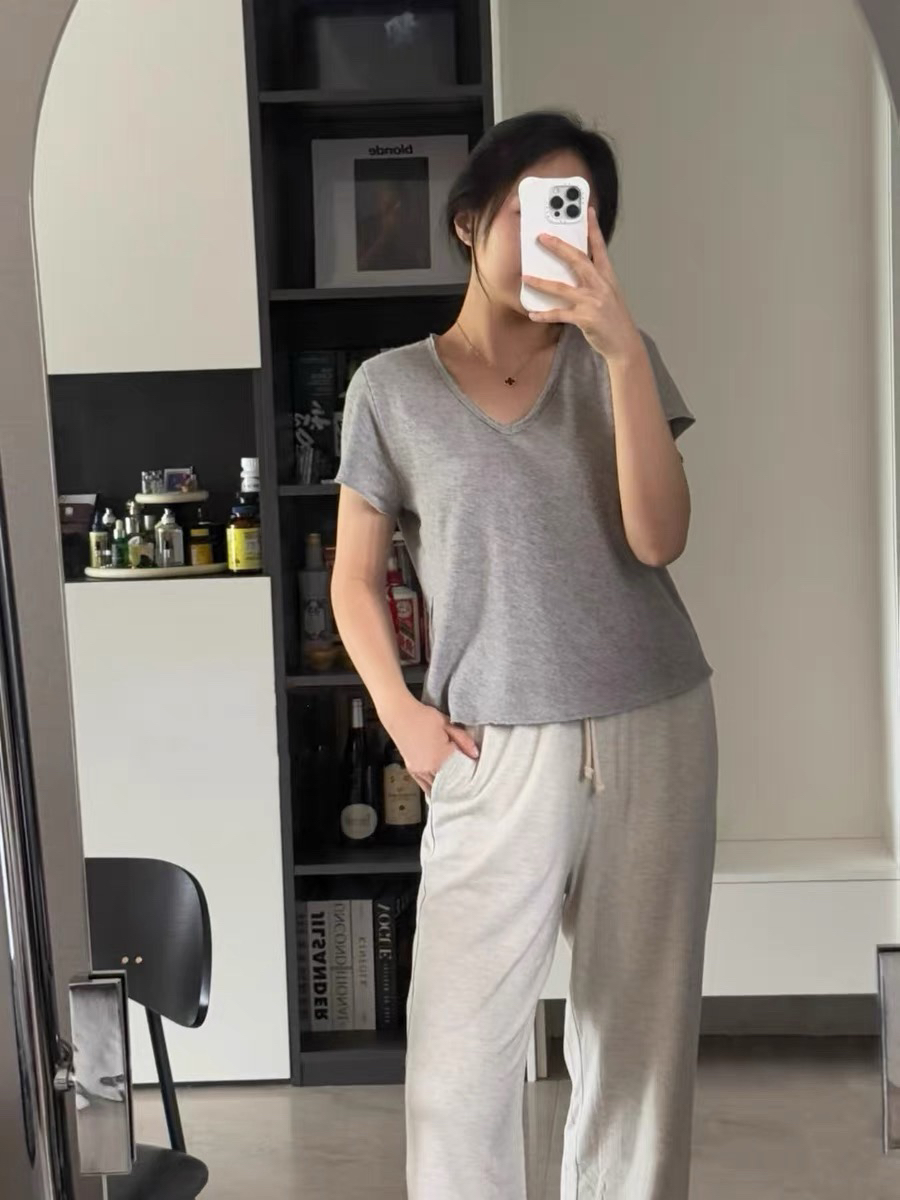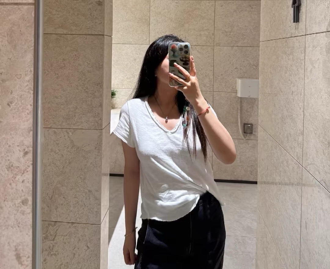 【4月28日 下午14:00 秒杀】AMV 设计师品牌 复古v领短袖"旧“T恤 白百何/朱珠/章小蕙都爱穿的 舒适T
