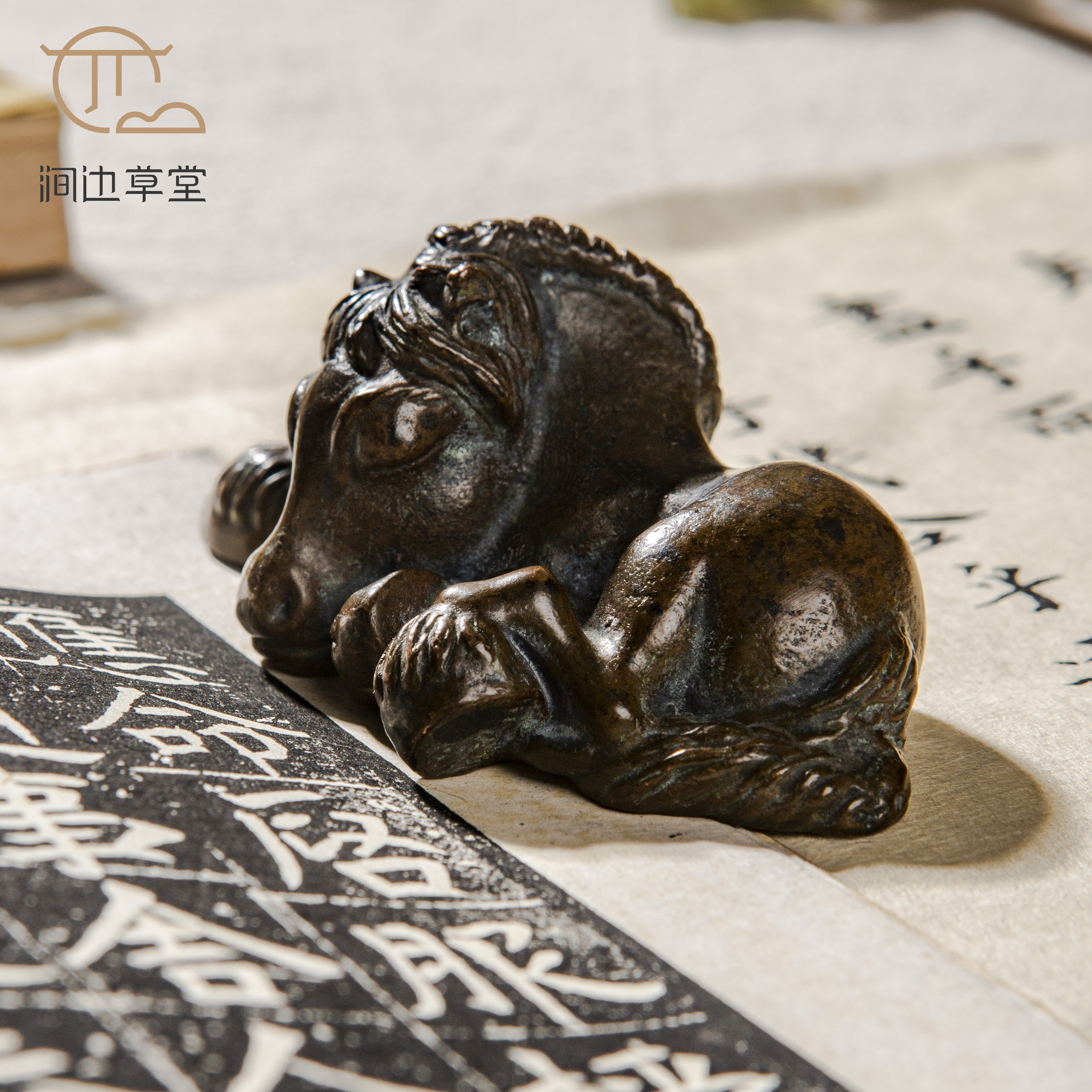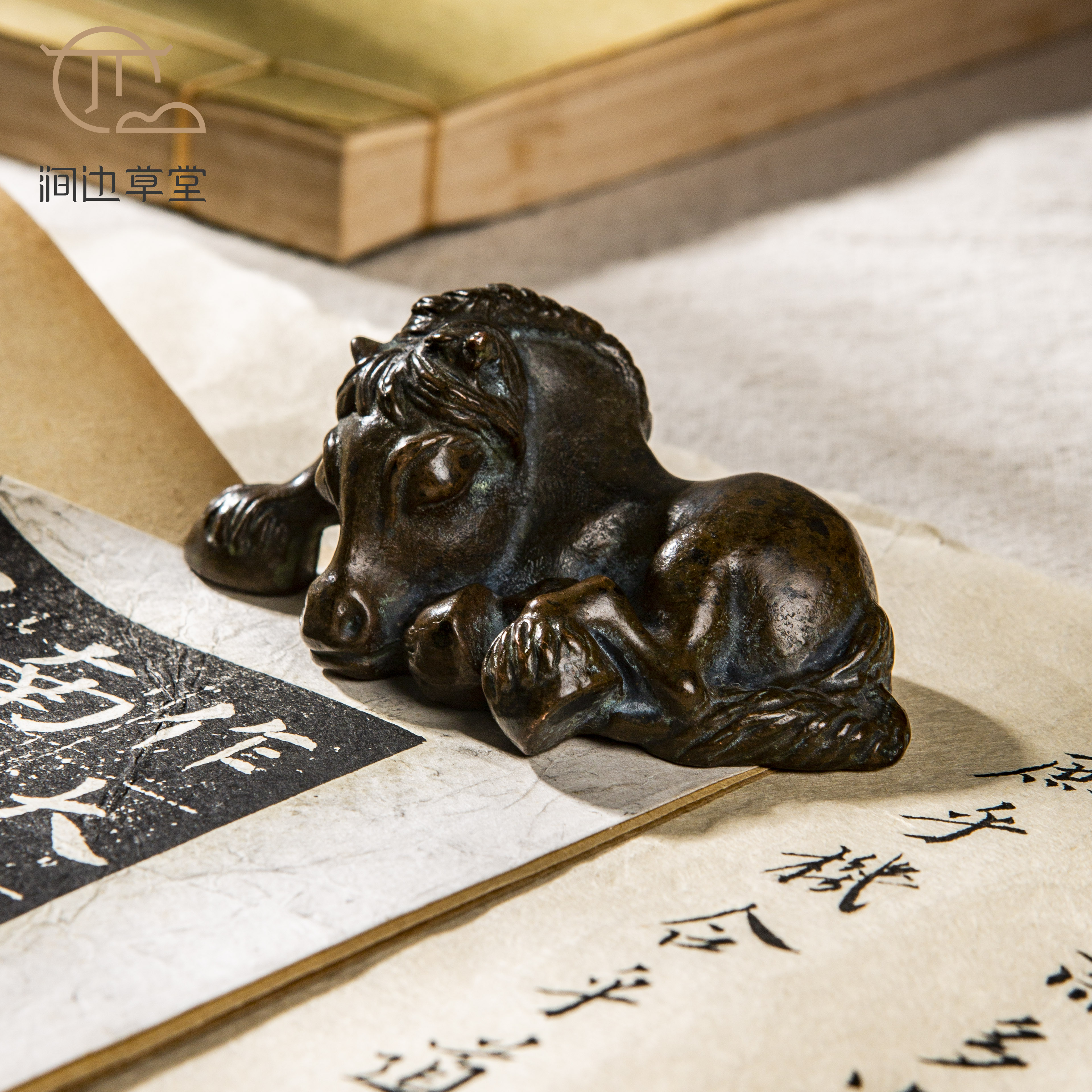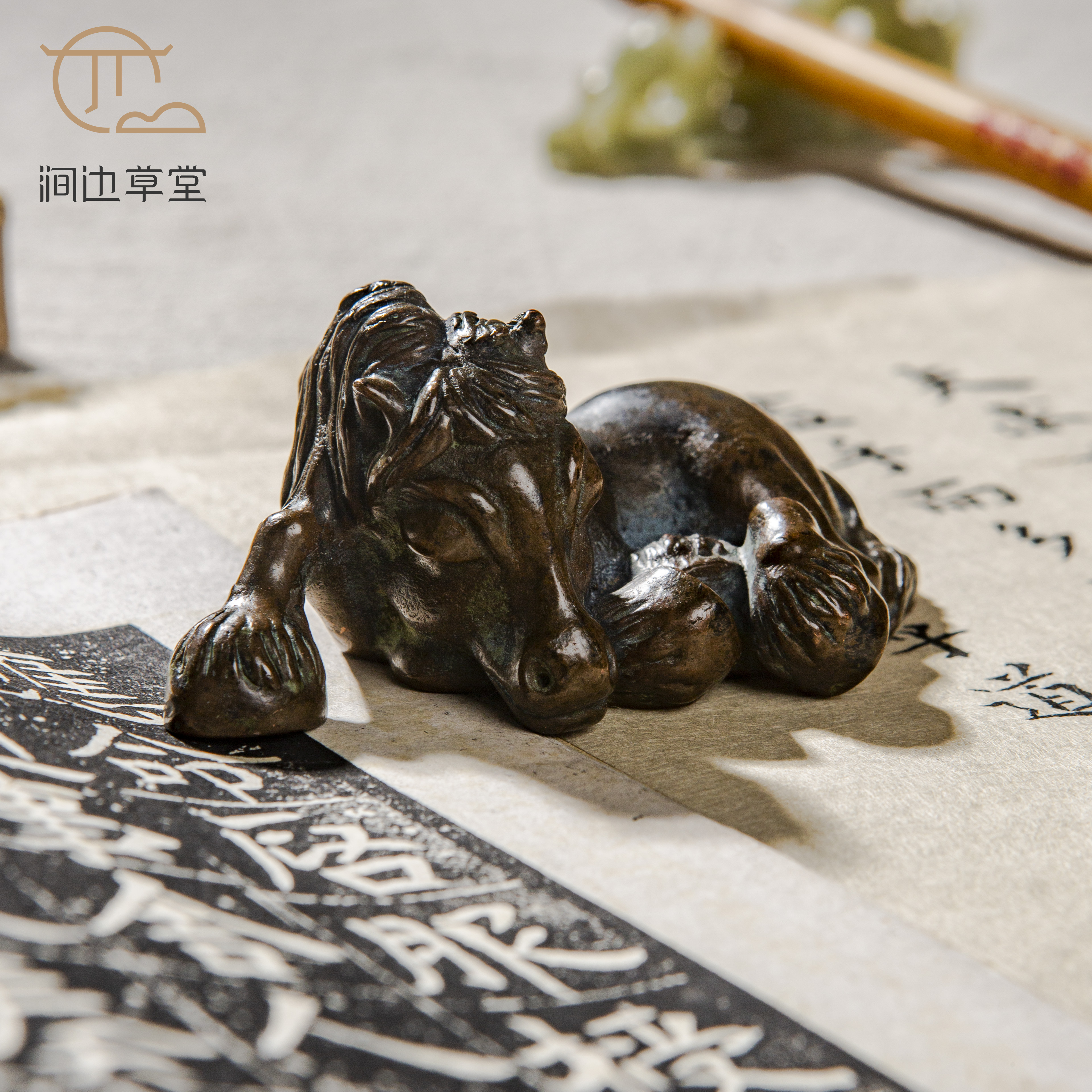 民国铜马镇纸,造型憨态可掬极具神韵,古意盎然,选材优良,做工精细,做为镇纸大小适中,置于案头间意趣十足。