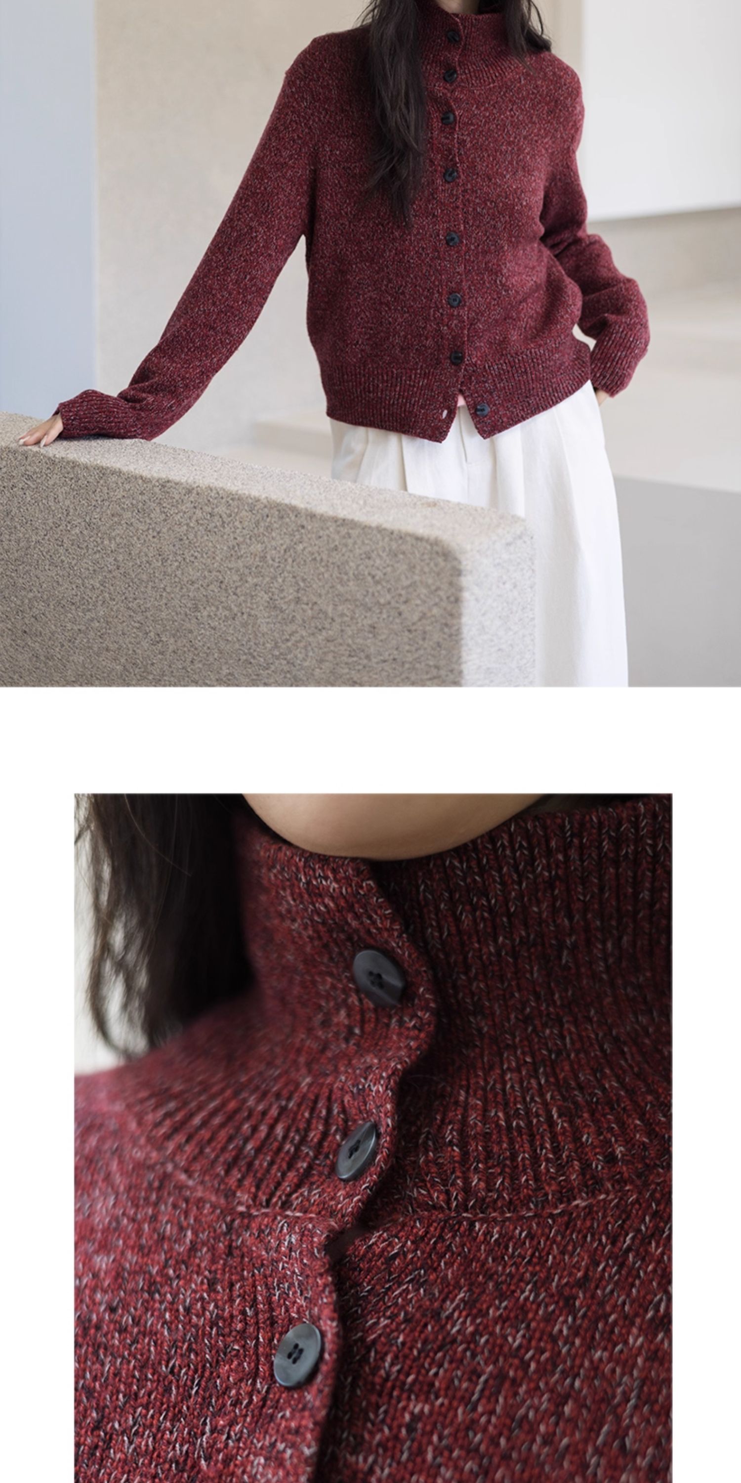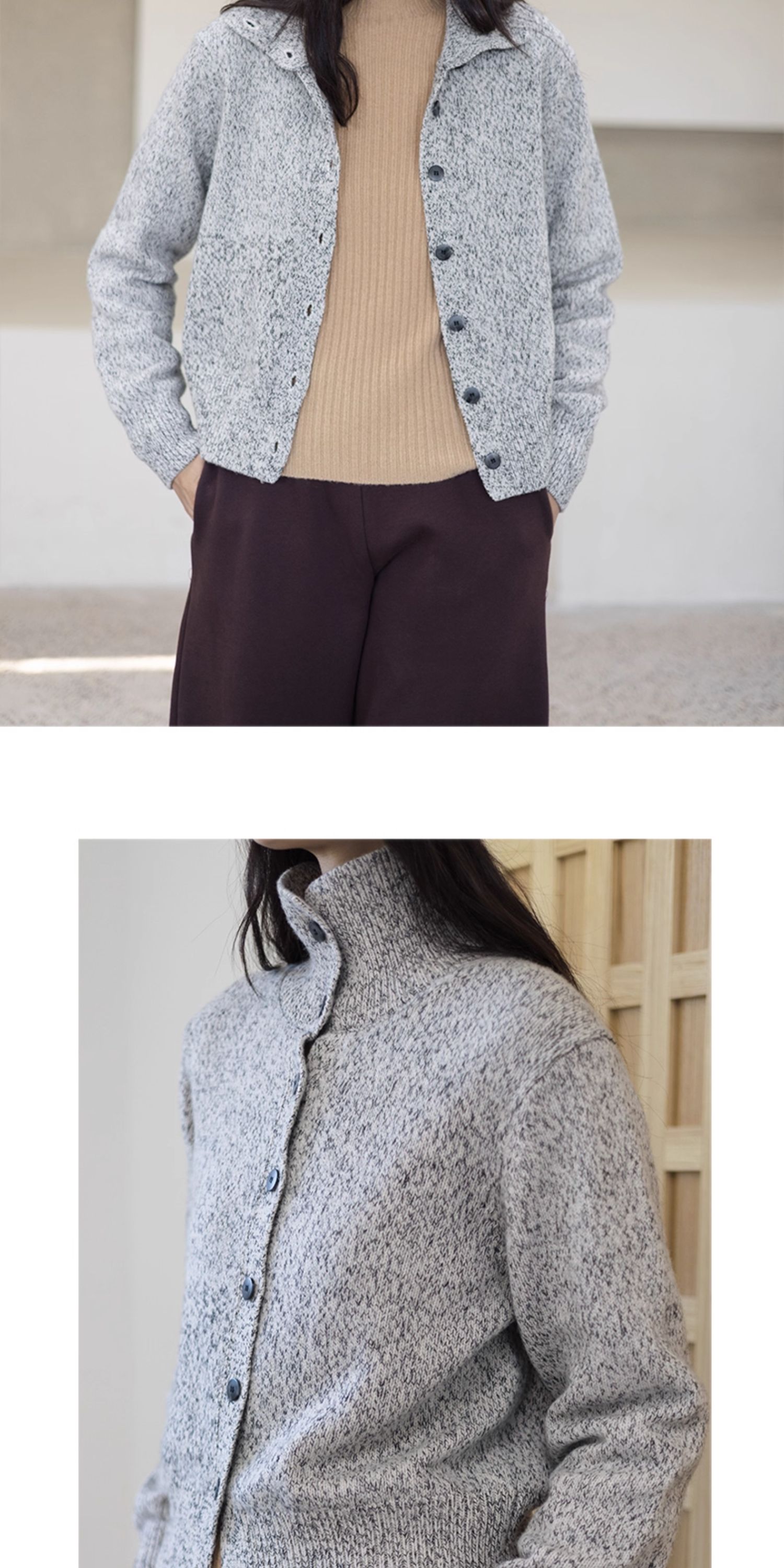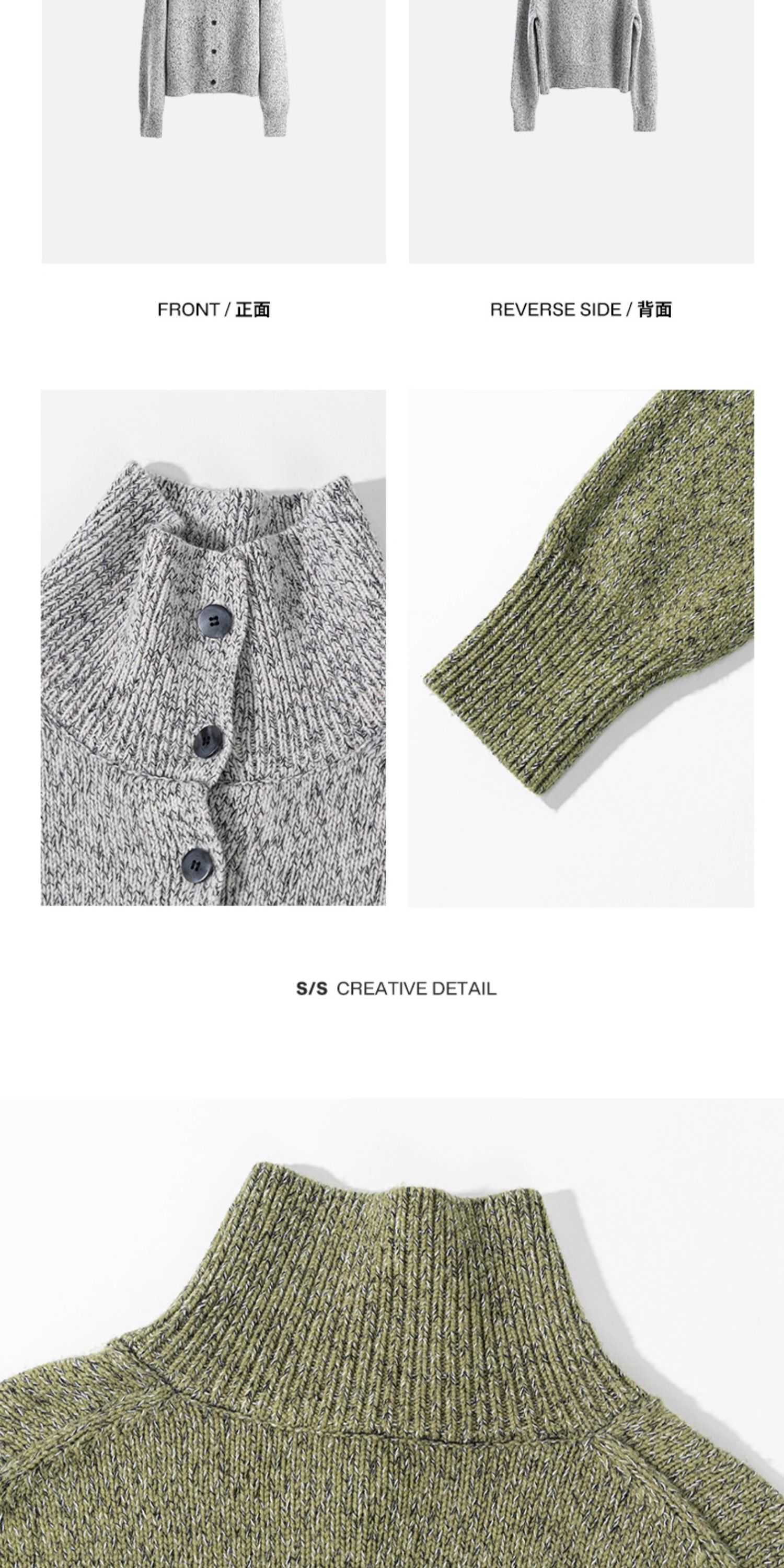 绽放708朵/繁星点点·纯羊毛花纱高领开襟毛针织衫加厚外套女冬