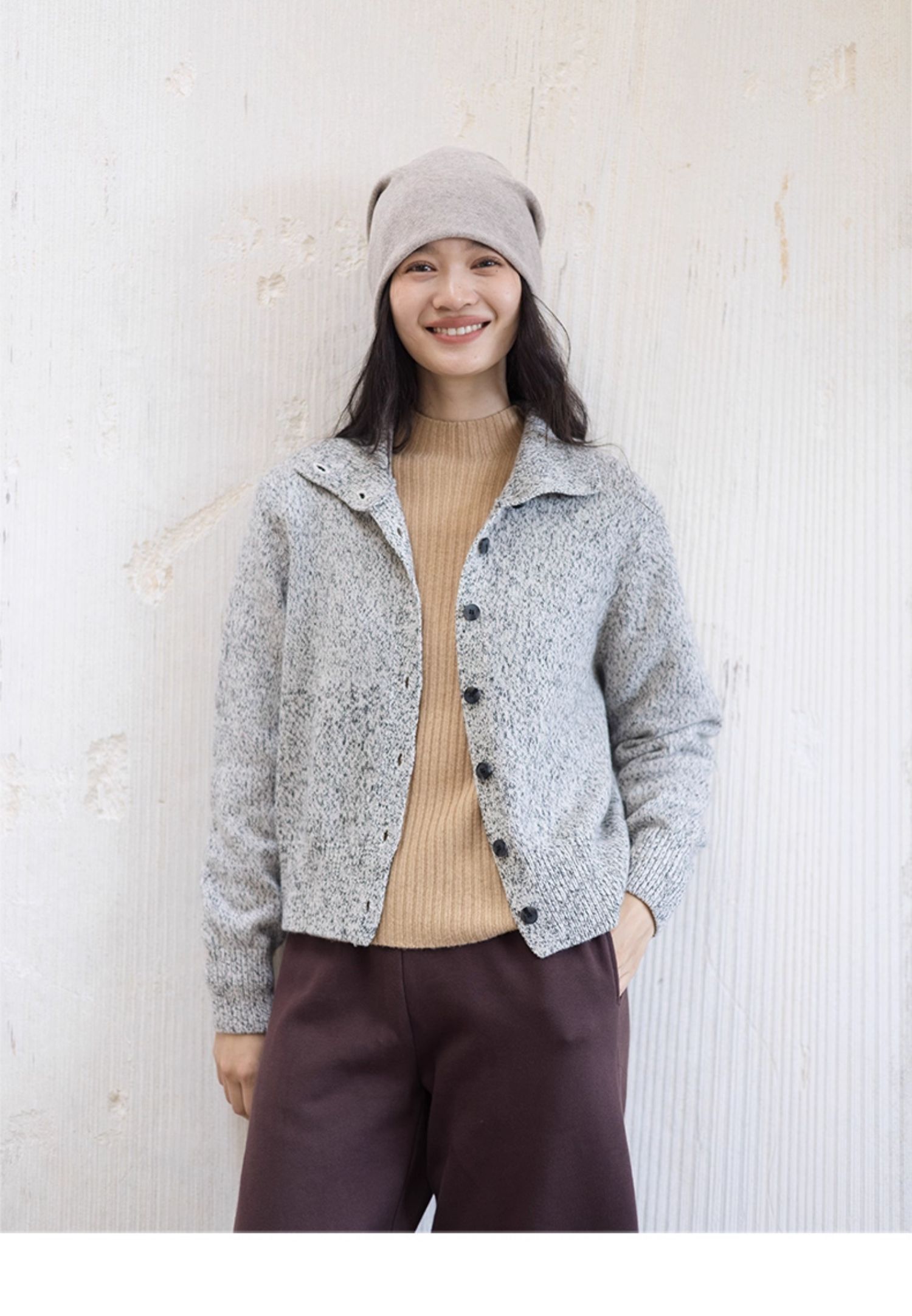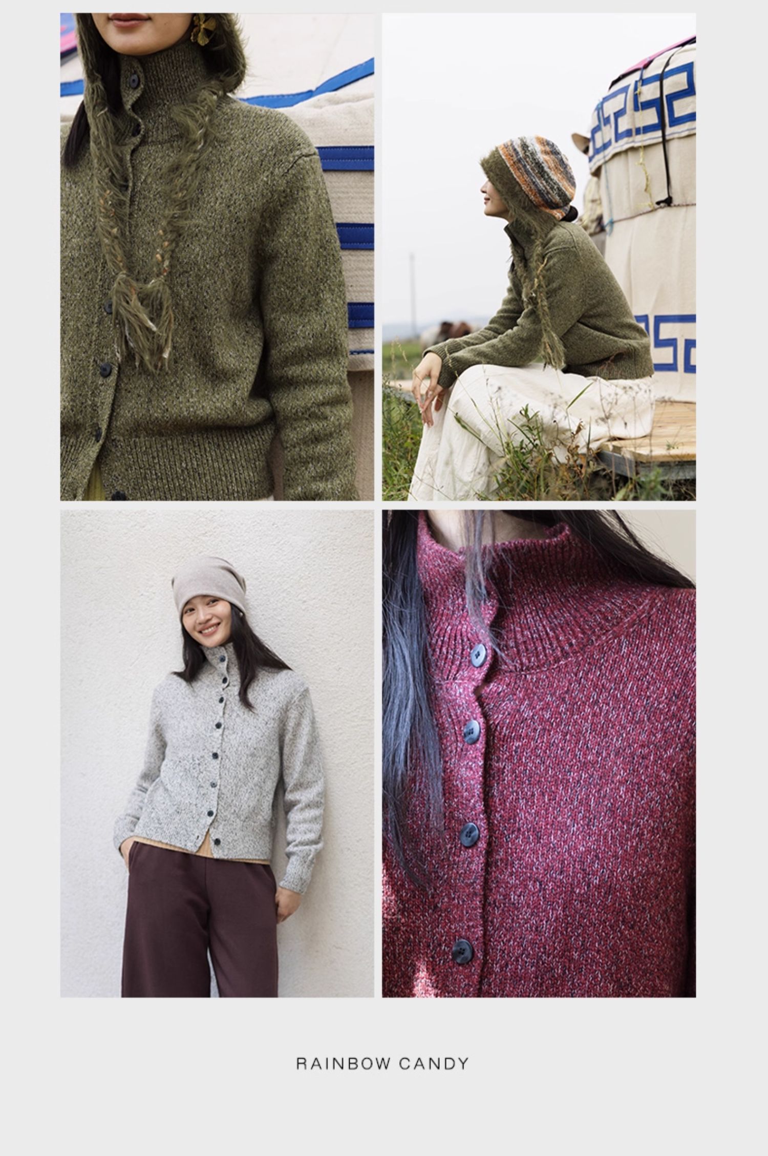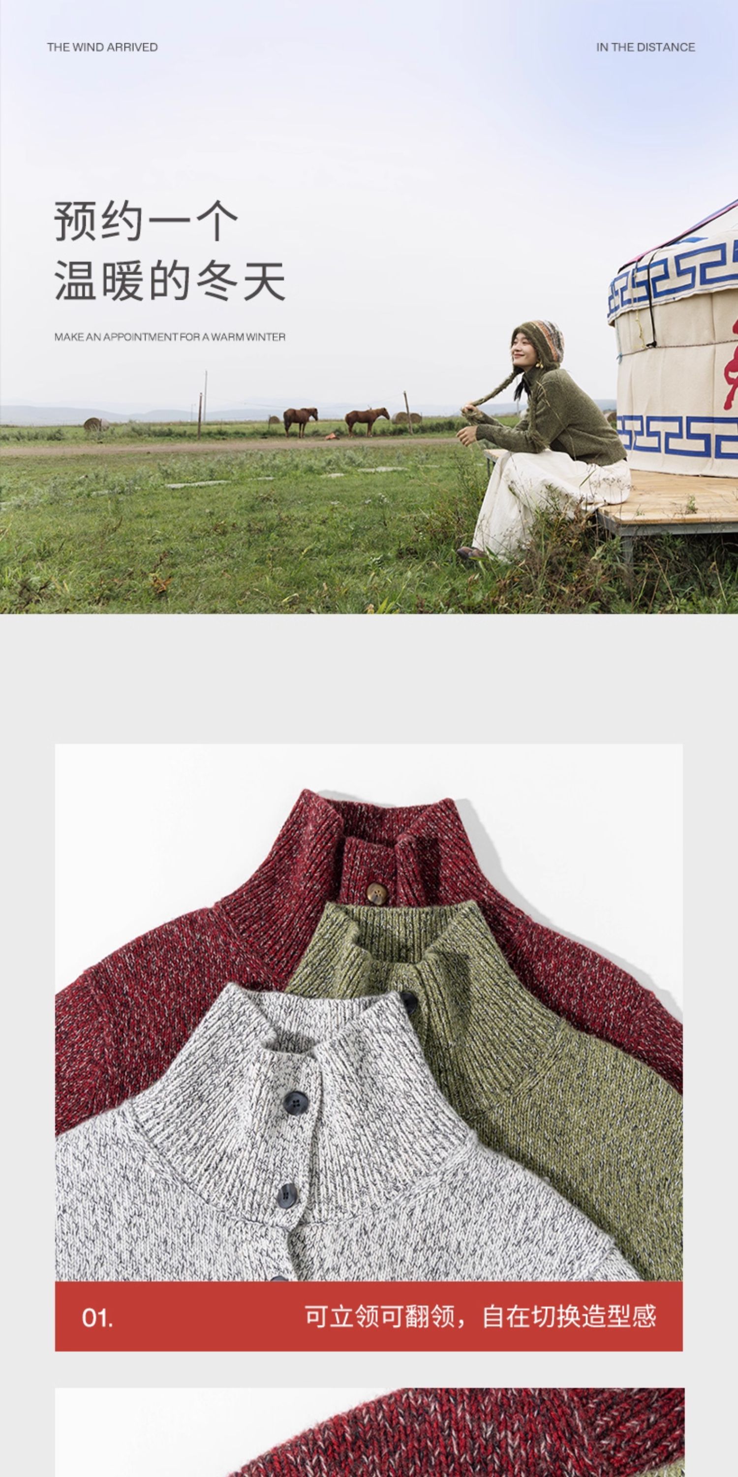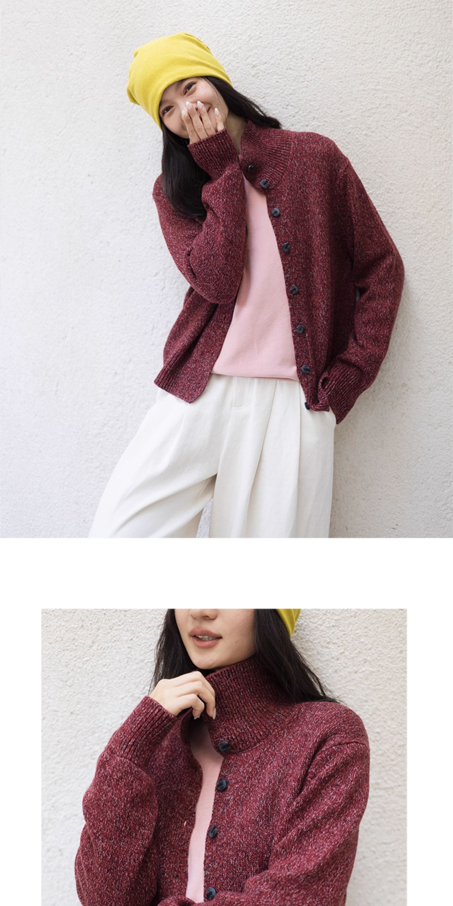 绽放708朵/繁星点点·纯羊毛花纱高领开襟毛针织衫加厚外套女冬