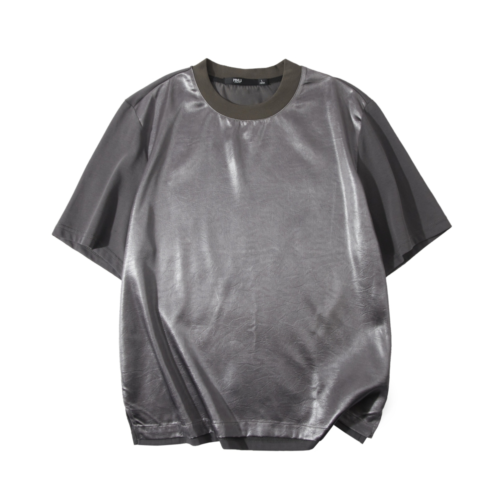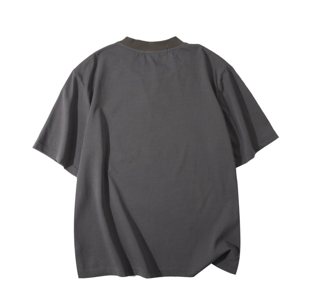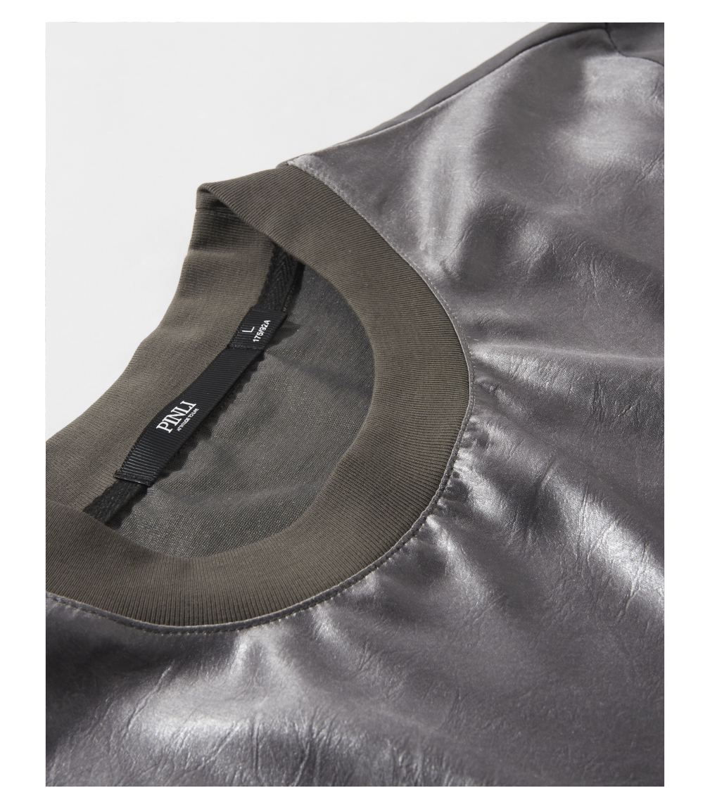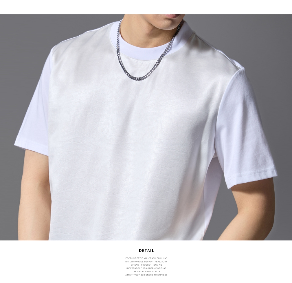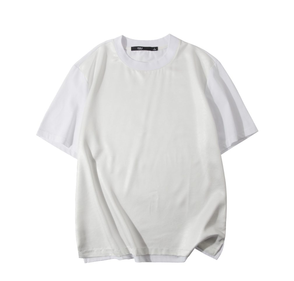 PINLI品立2025春夏新款潮牌宽松短袖T恤男士简约百搭拼料休闲上衣B252111003