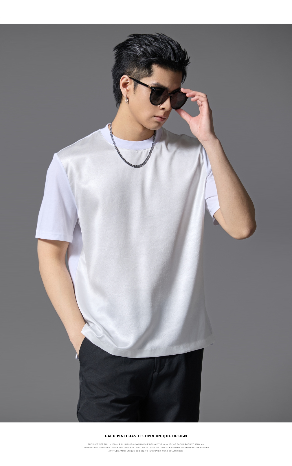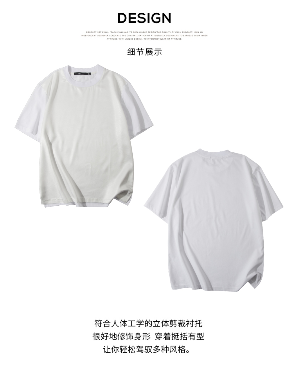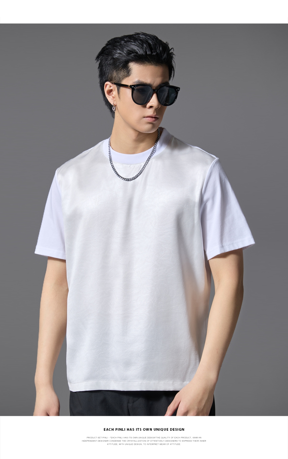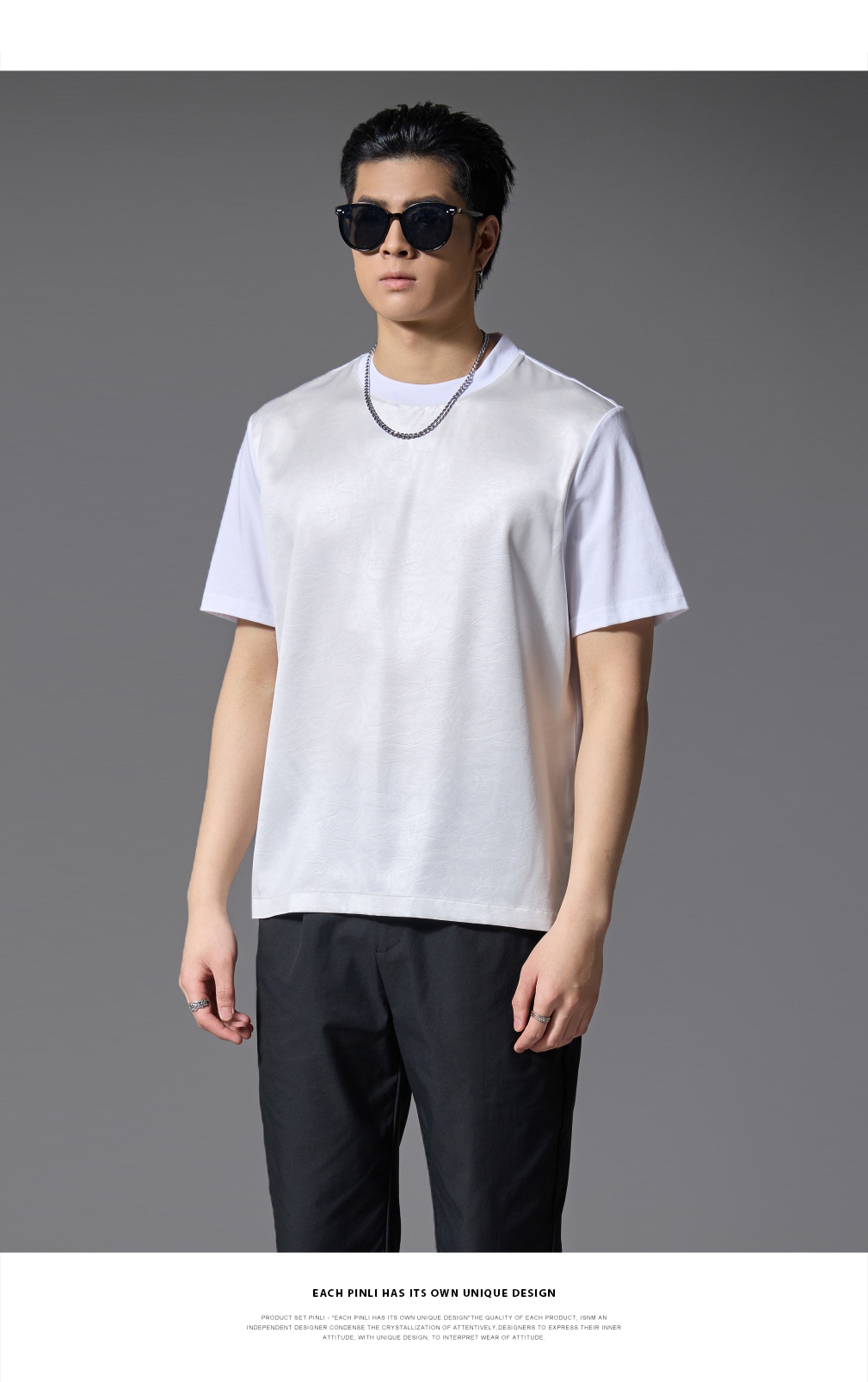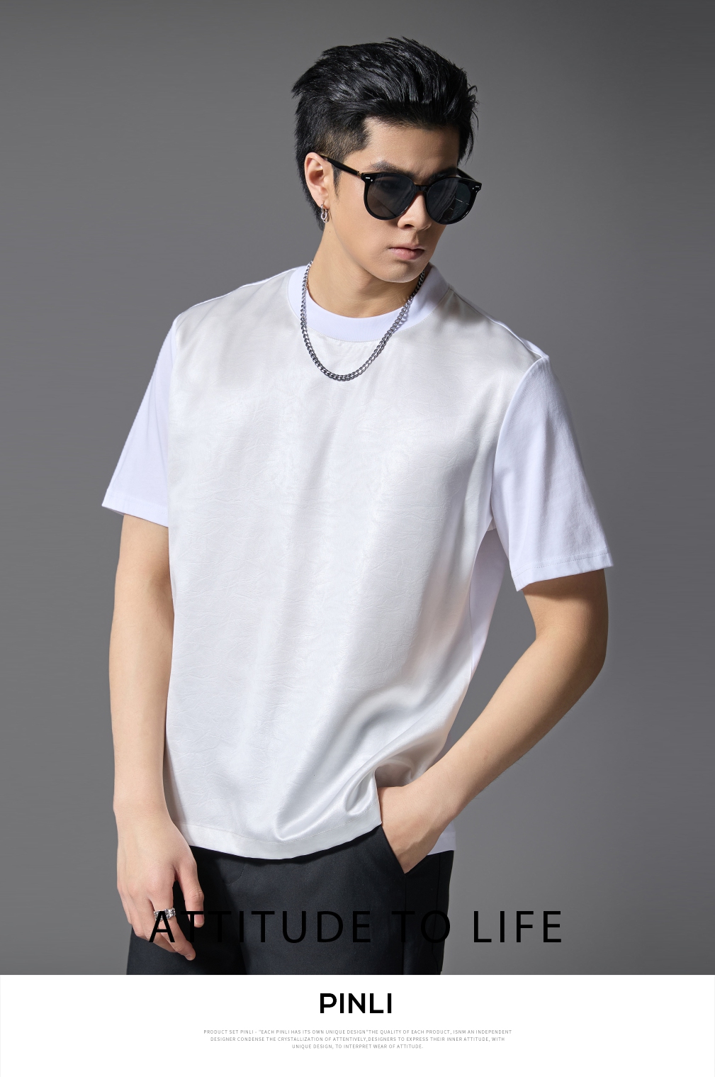 PINLI品立2025春夏新款潮牌宽松短袖T恤男士简约百搭拼料休闲上衣B252111003