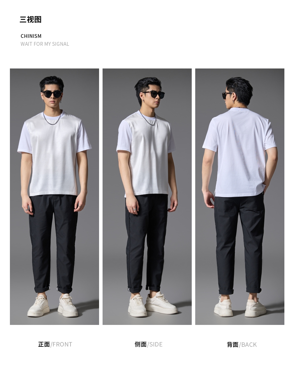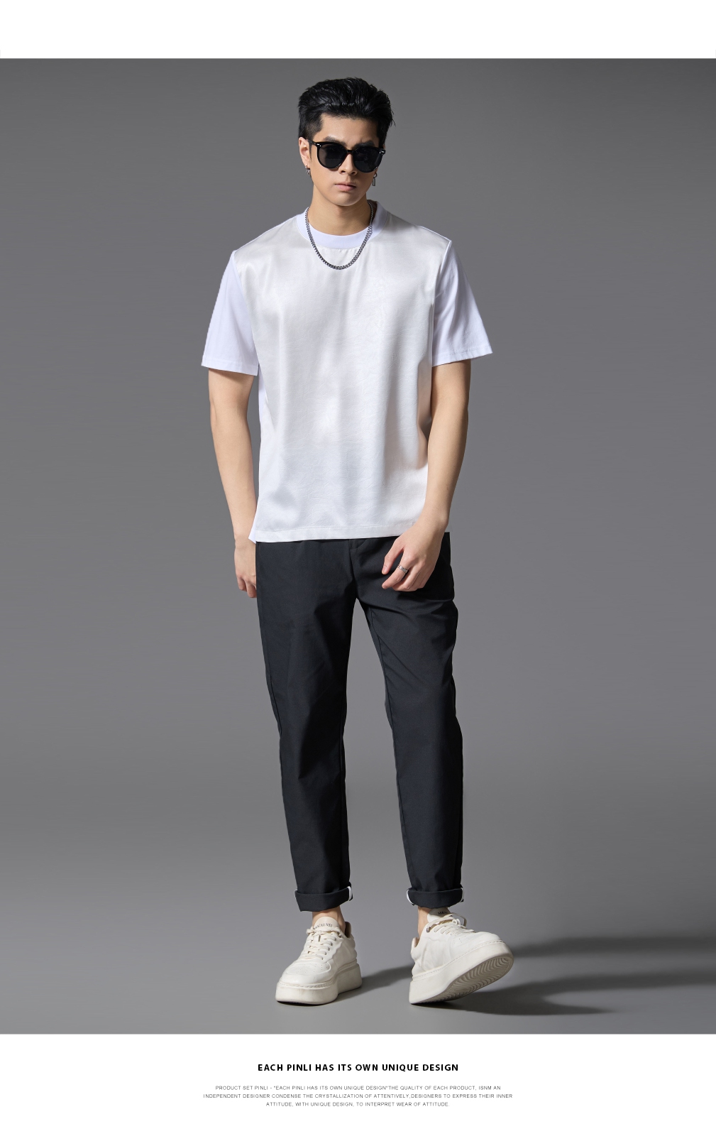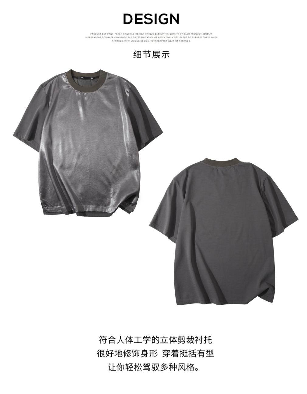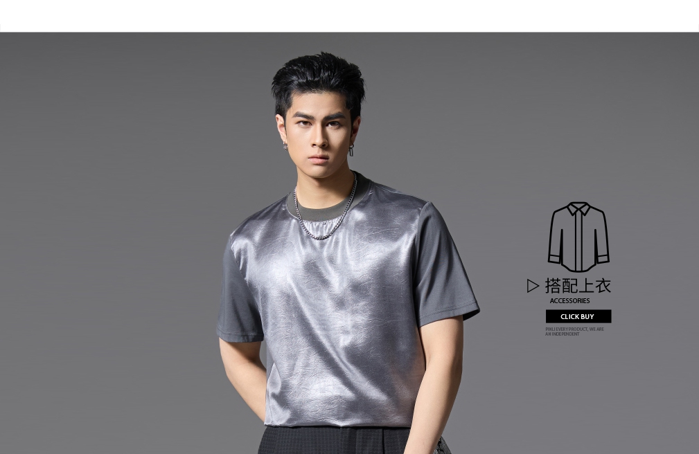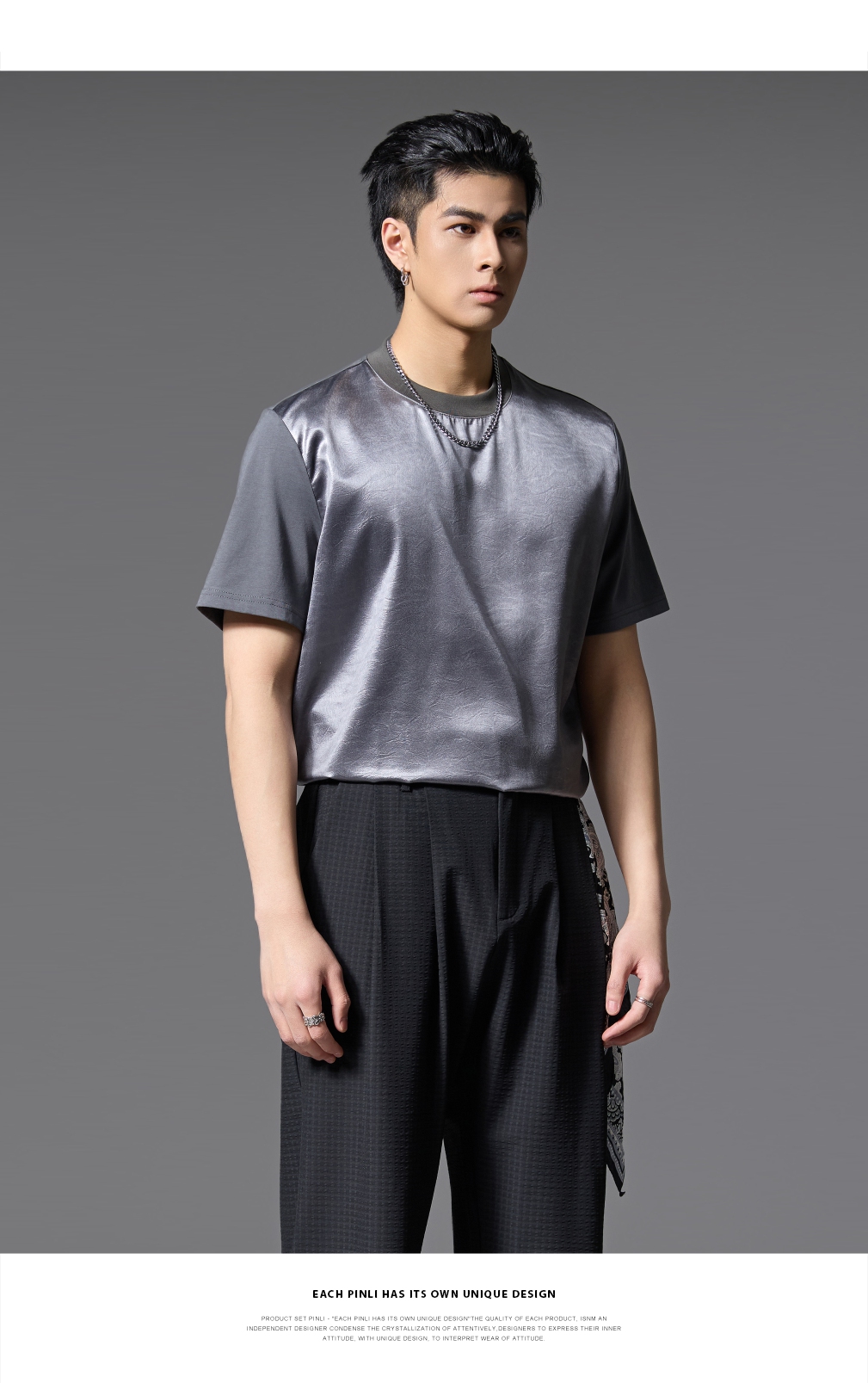 PINLI品立2025春夏新款潮牌宽松短袖T恤男士简约百搭拼料休闲上衣B252111003