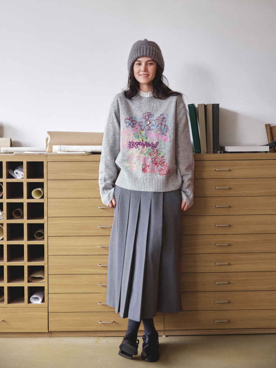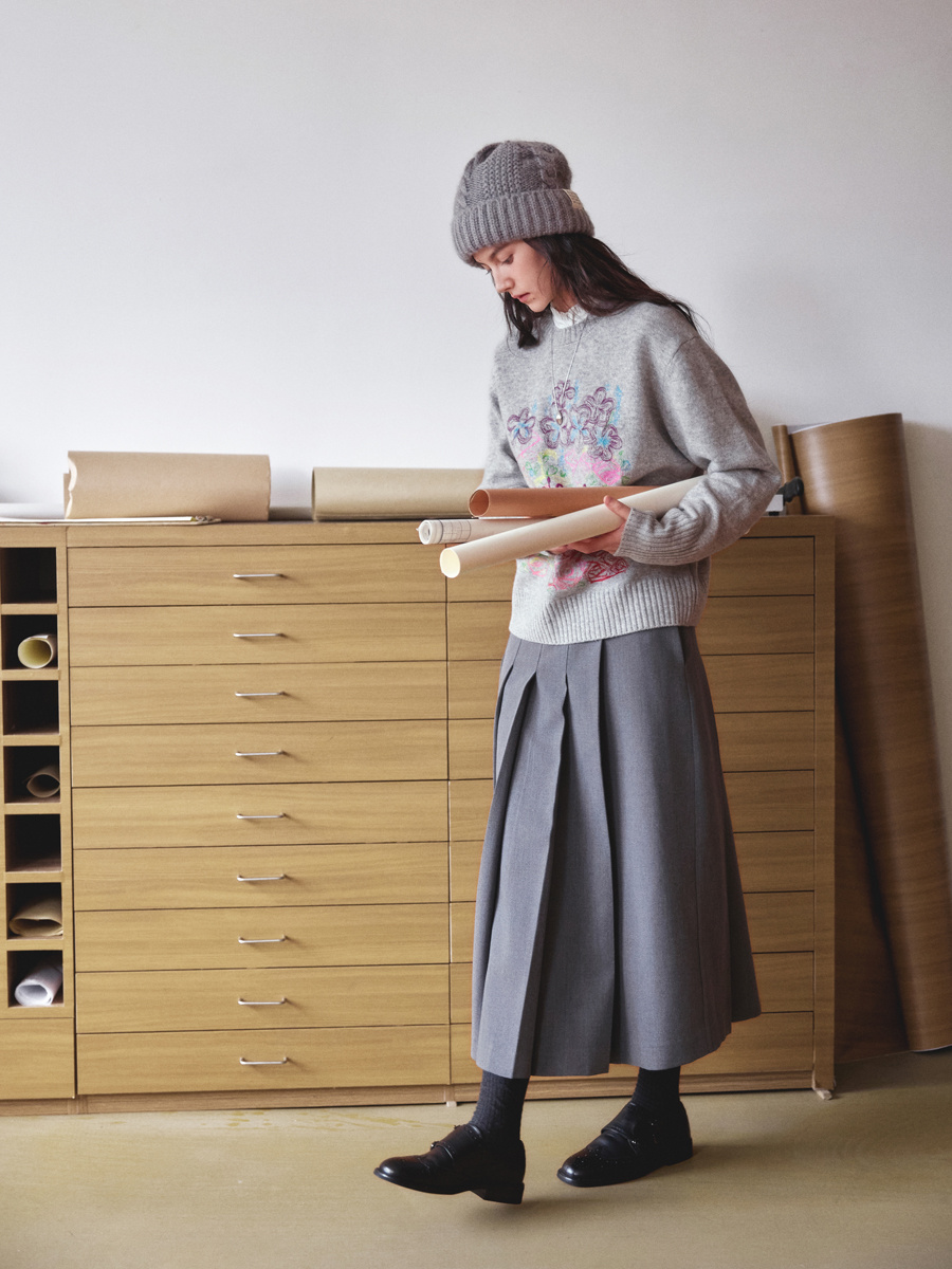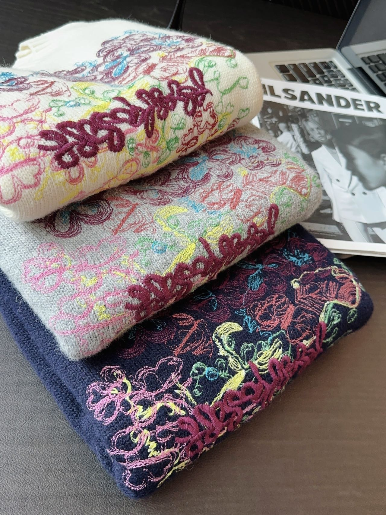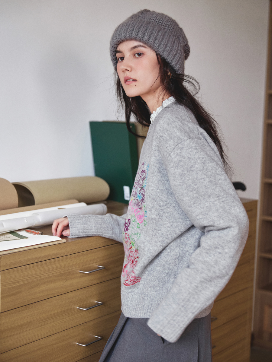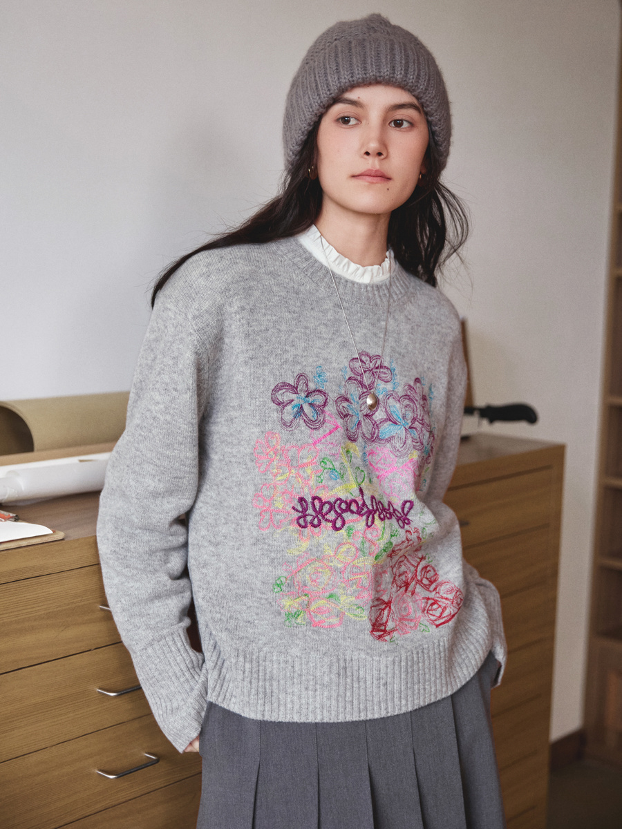 配色多彩活跃但又不是大面积娇艳的彩色,用百搭的灰色底色搭配实穿的同时又亮眼。