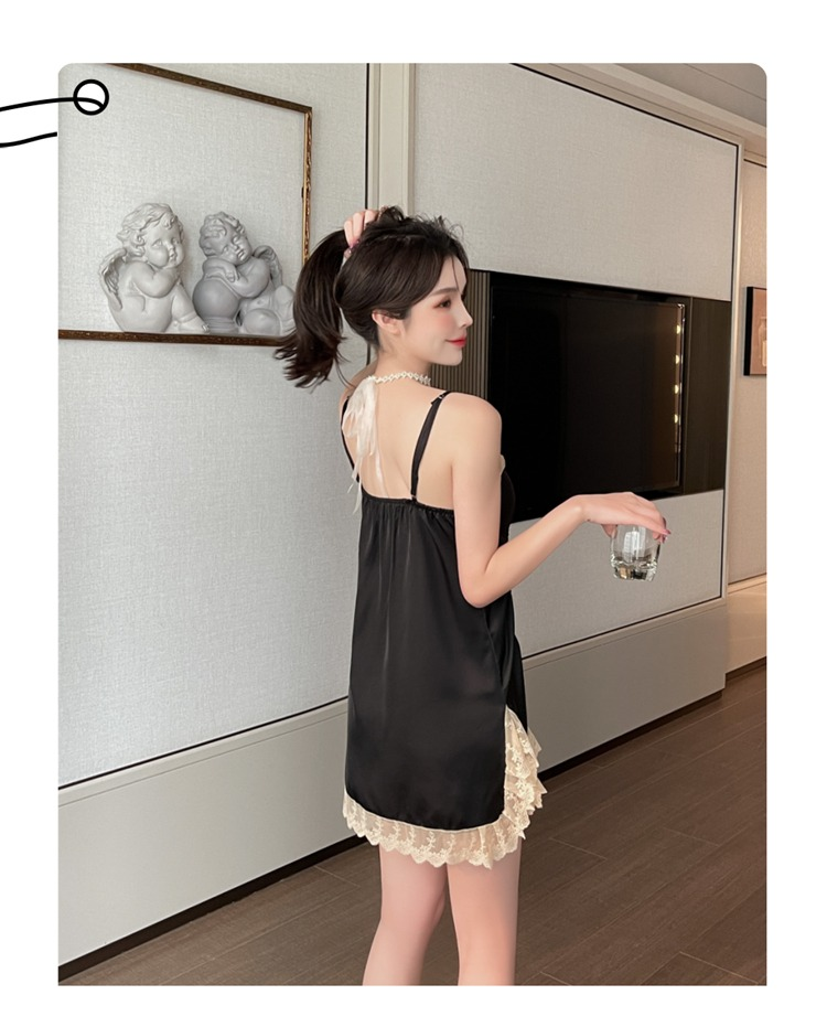 【七夕女神战袍】性感女士蕾丝睡裙 v领薄款露背丝质吊带睡裙 深V诱惑展现迷人锁骨