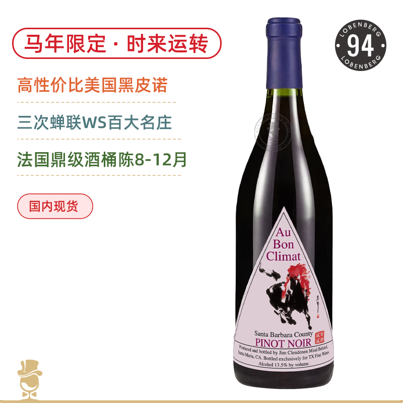 【ABC马年限定】奥邦酒庄“时来运转”黑皮诺干红&霞多丽白 Au Bon Santa Barbara County Pinot Noir&Chardonnay 2024 可选礼盒