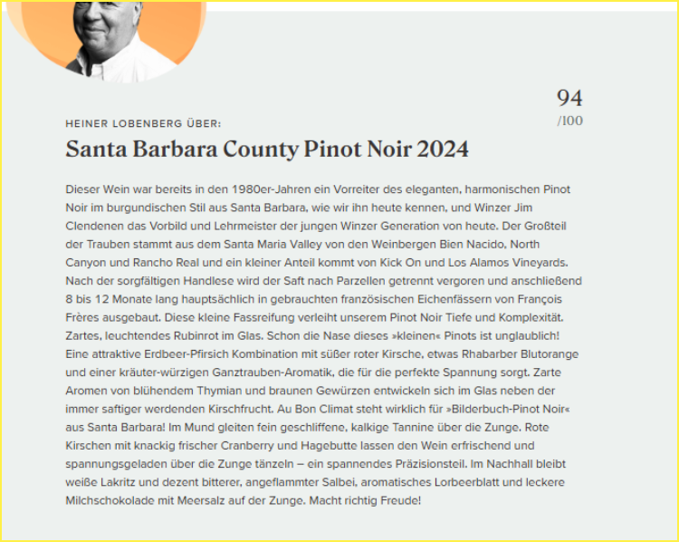 而他所酿的黑皮诺和霞多丽,亦是被誉为“颇具勃艮第神韵”之作,酒评人Jeb Dunnuck更是评价道:“Jim Clendenen是与Adam Tolmach齐名的中央海岸创始先驱之一,无畏新橡木的影响,所酿风味且值得陈年。”