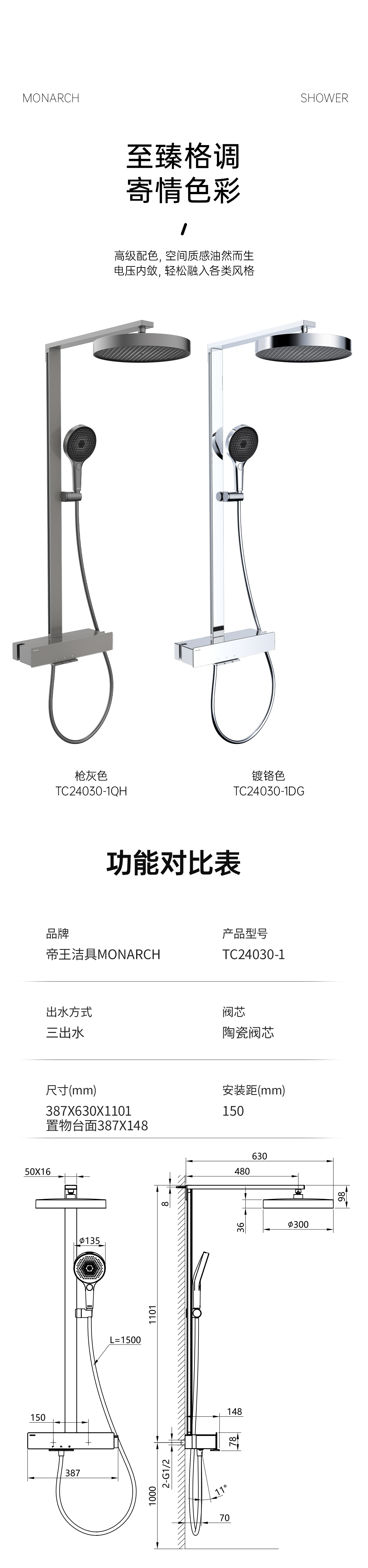 【门店款】帝王洁具TC24030花洒家用淋浴套装卫浴极简淋浴枪灰色增压沐浴