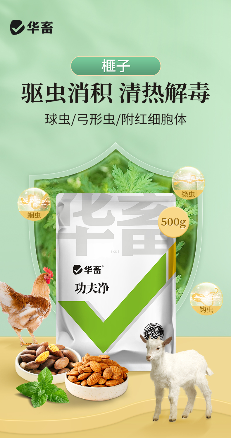 华畜功夫净500g 中药驱虫 球虫绦虫弓形虫等 蛋禽孕畜可用安全有效