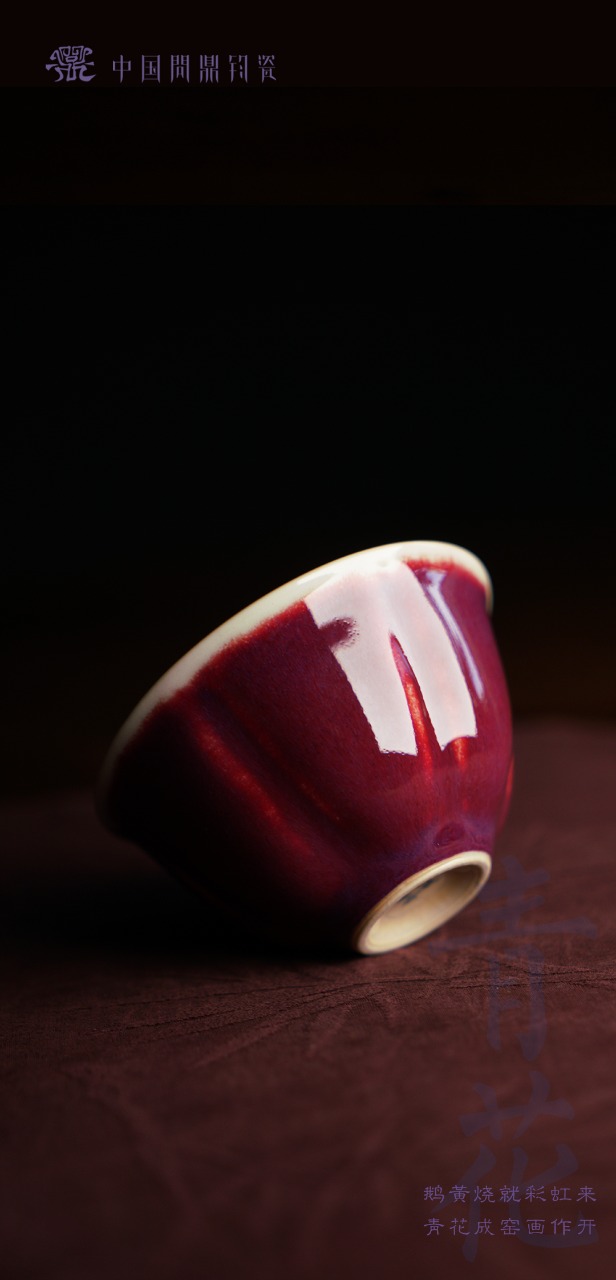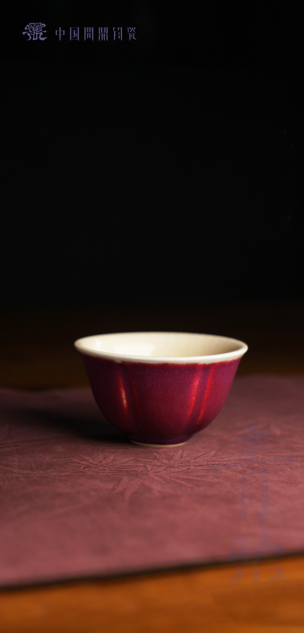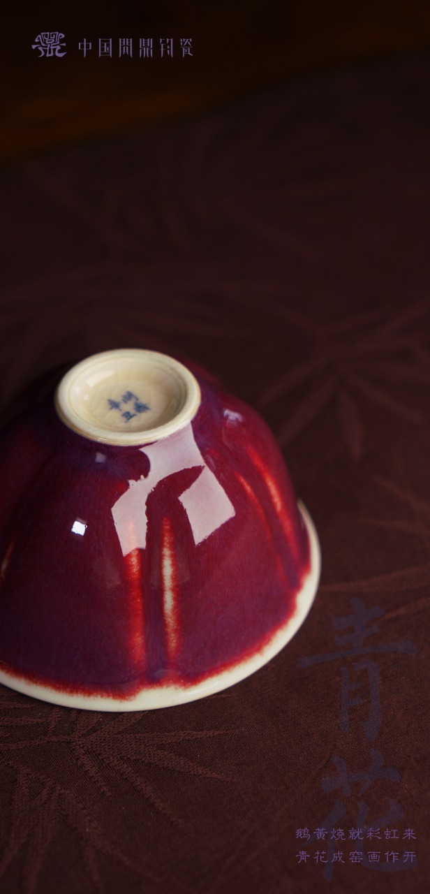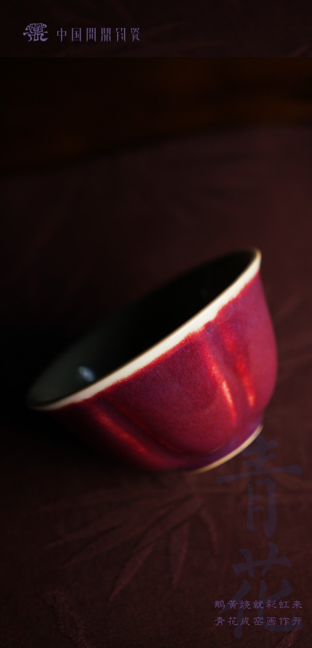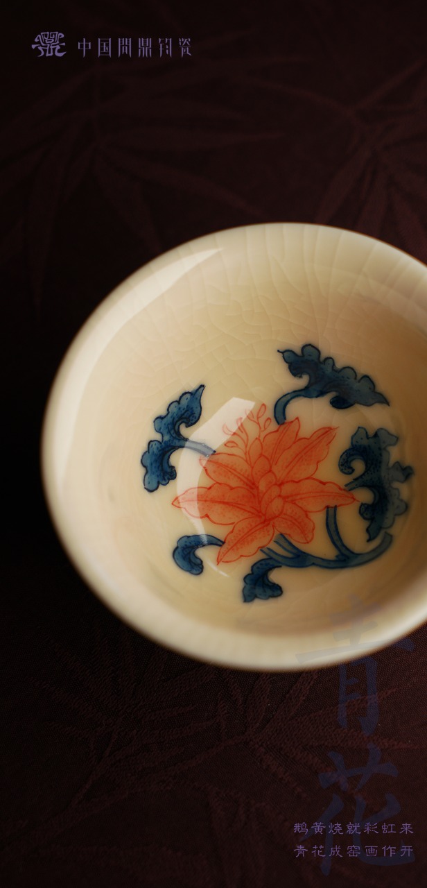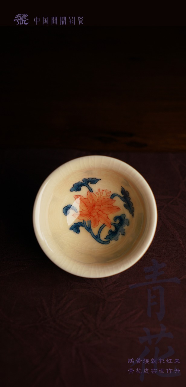 问鼎钧瓷鹅黄青花圆形葵口杯(繁意)