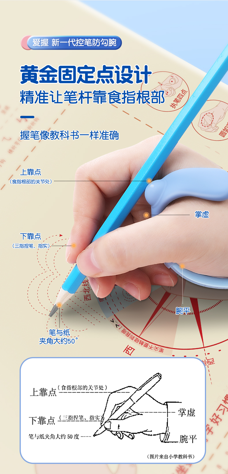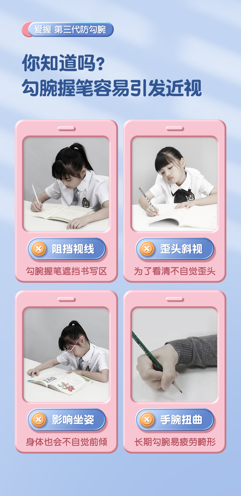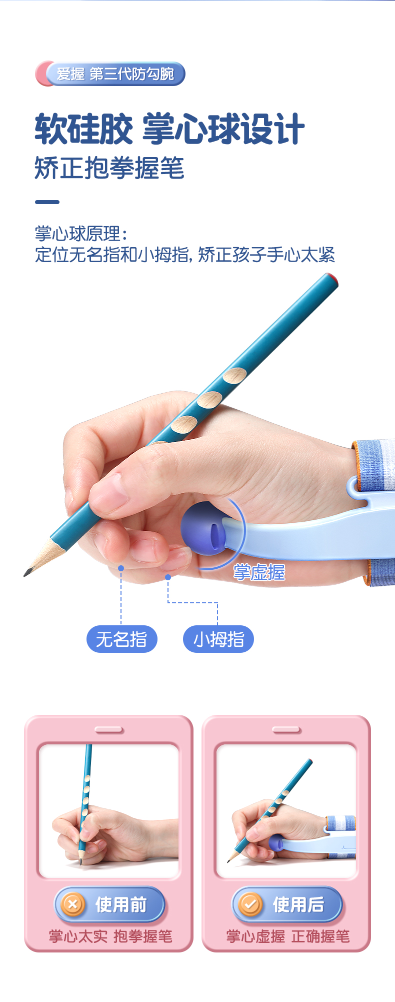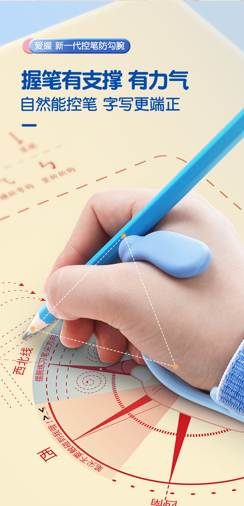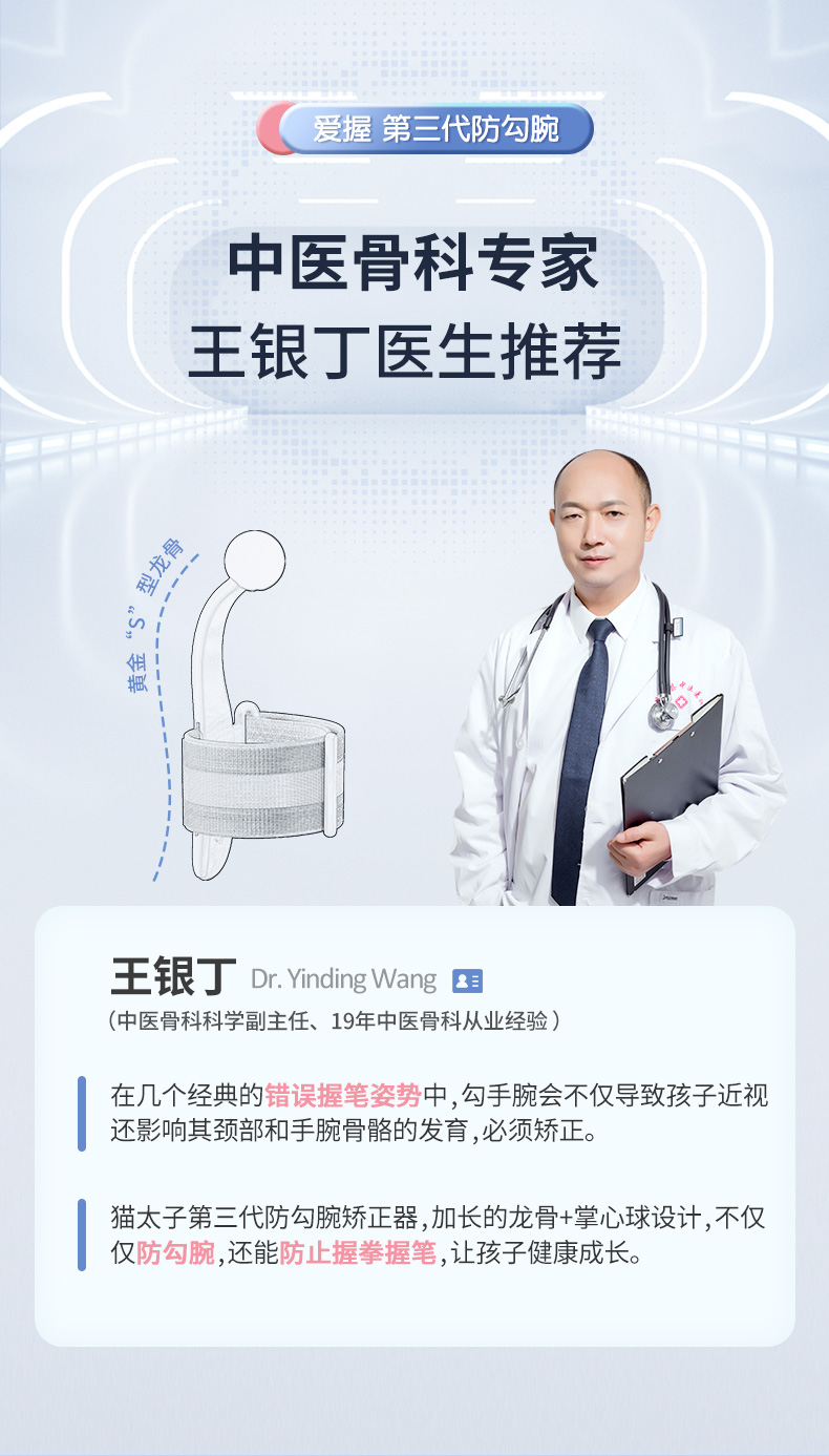 猫太子防勾腕矫正器小学生握笔姿势矫正初学者握笔器学写字勾手腕内钩固定器纠正器儿童拿控笔训练神器