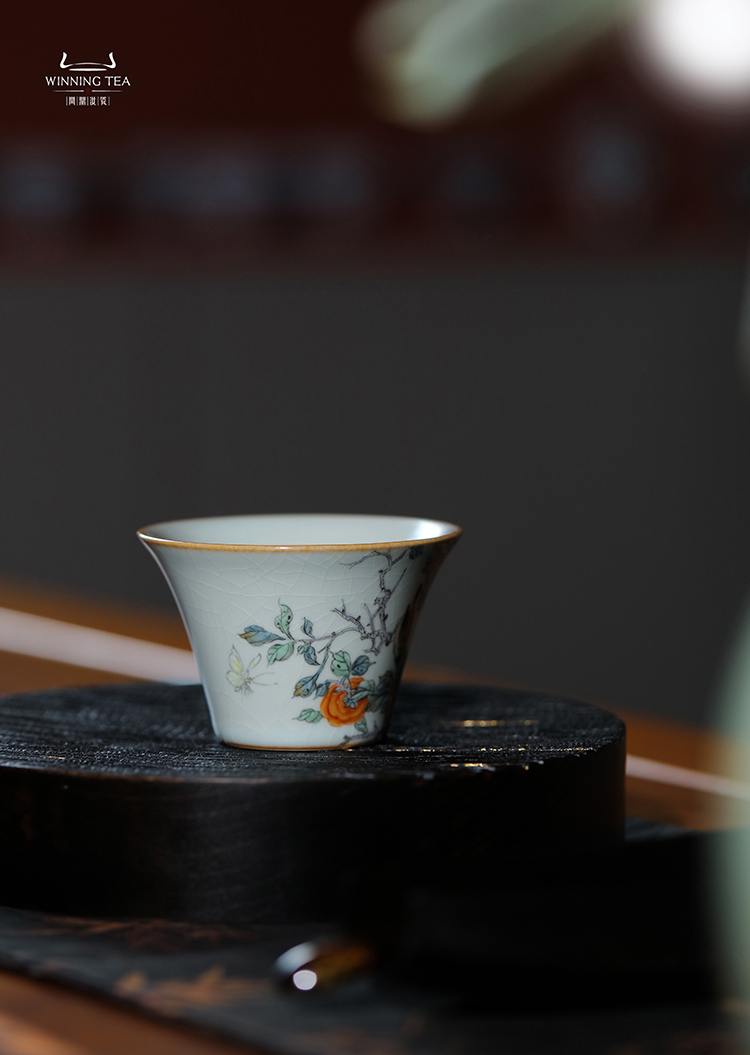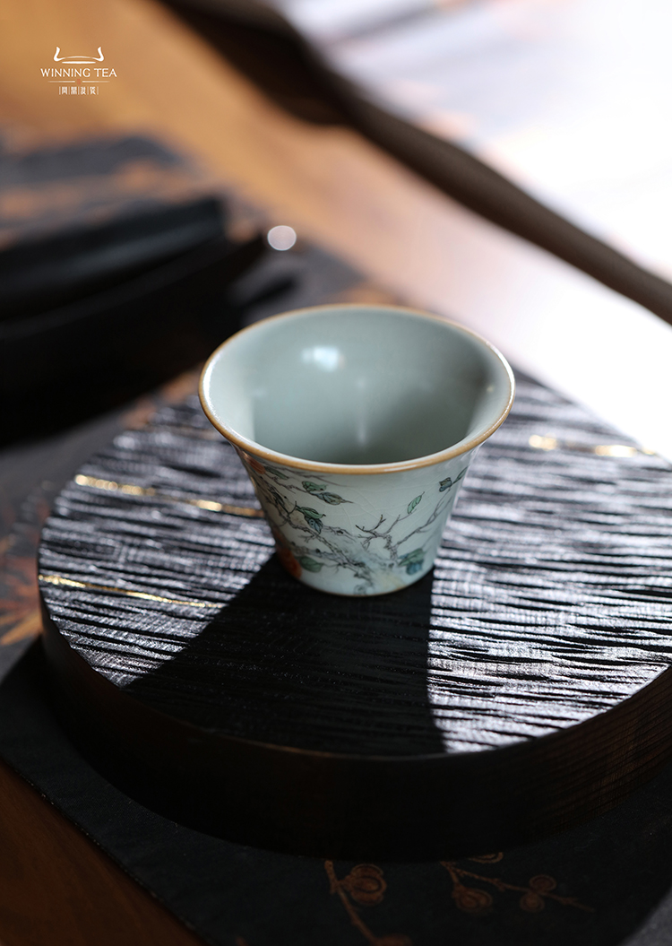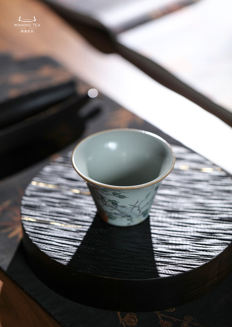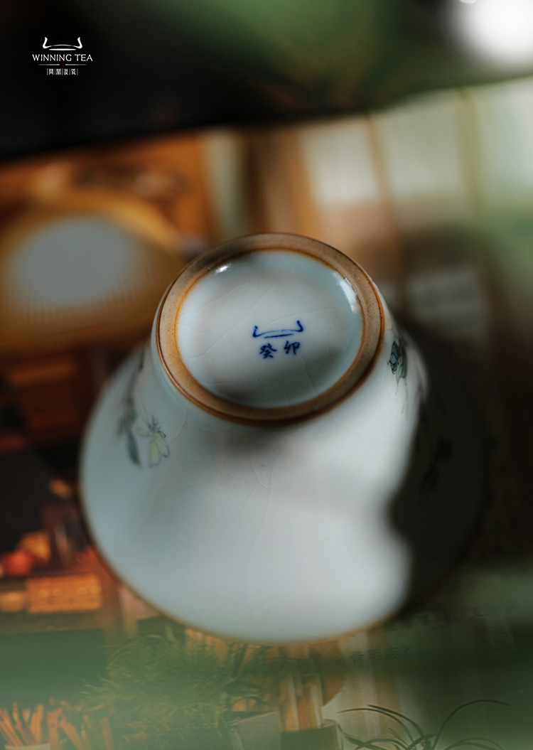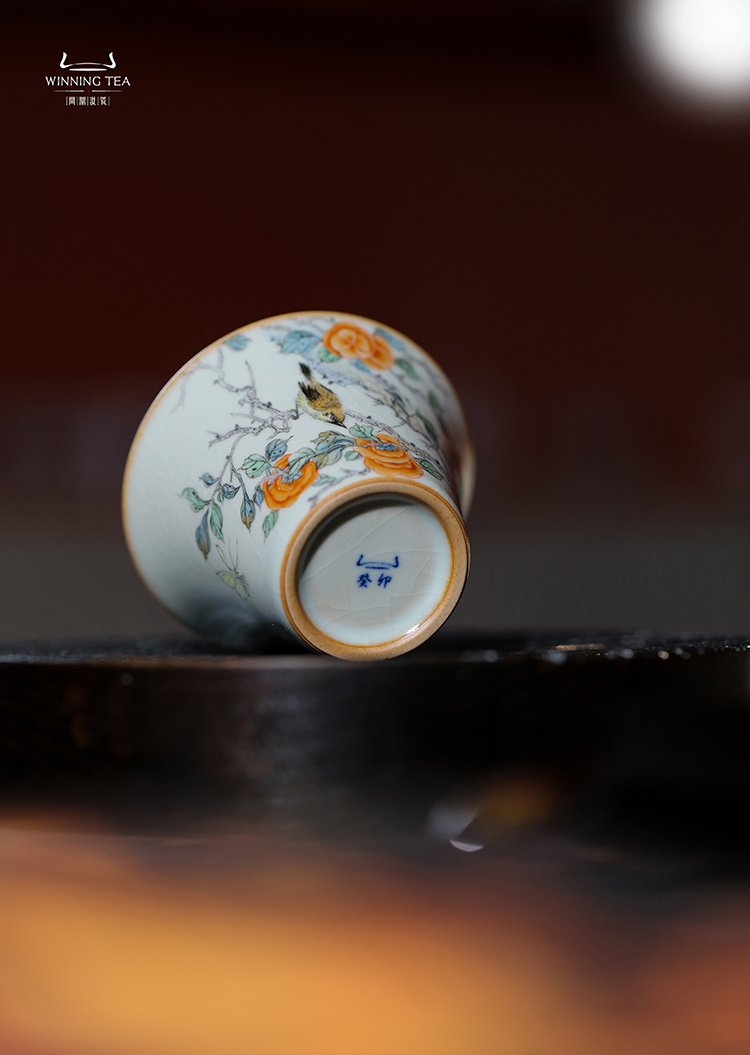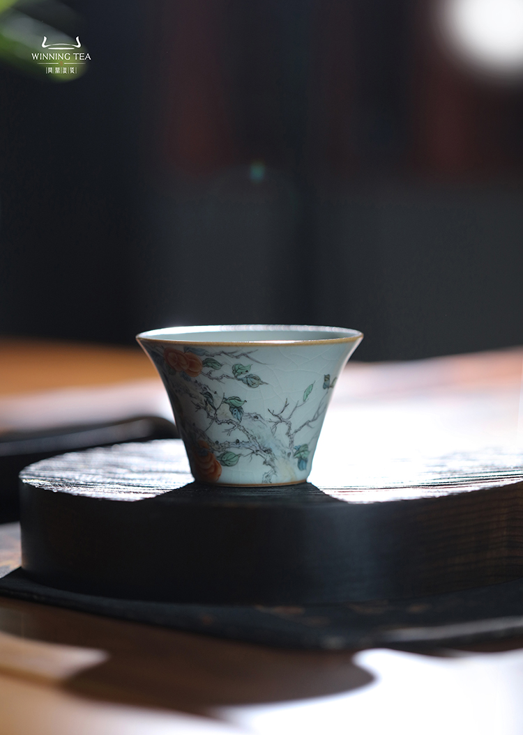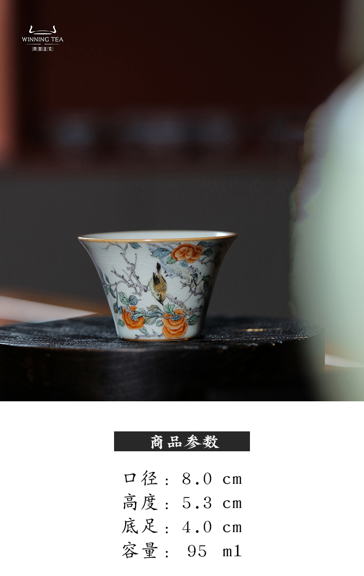 问鼎汝瓷鼎峰系列天青癸卯马蹄杯(柿柿秋鸣)