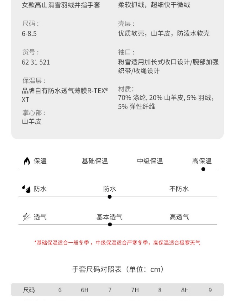 Reusch炫驰女款高山滑雪系列防水保暖羽绒并指手套6231521