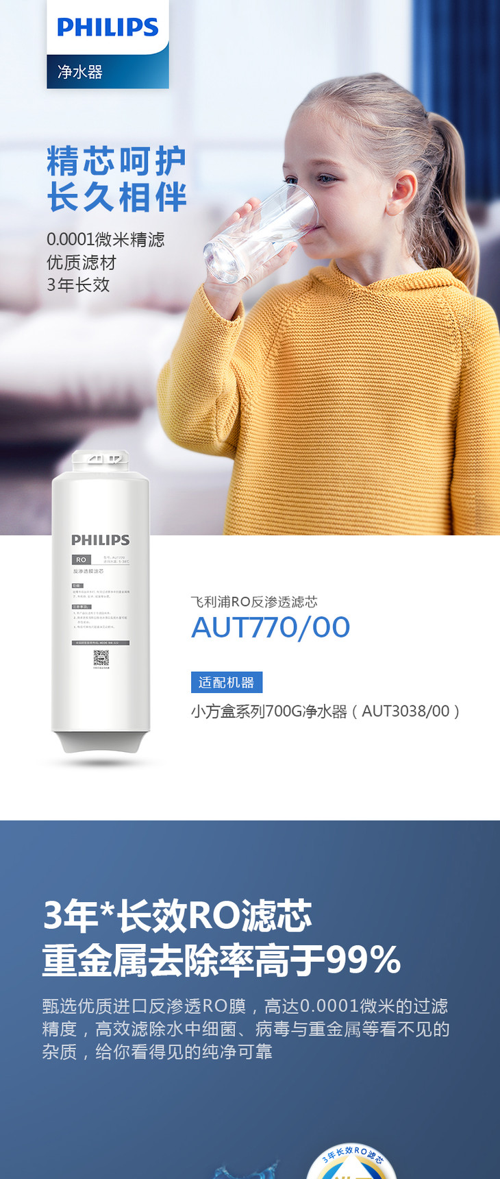 飞利浦(PHILIPS)Suez小方盒系列厨下净水器滤芯AUT770/00(RO)700G 适用:AUT3038