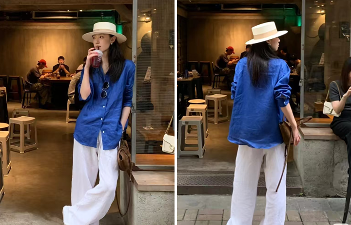 “克莱因蓝衬衫”在这两年真的很火,穿搭博主们就没有不爱的,老钱又松弛、高级又干净,穿出一种港风气质。