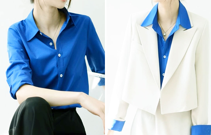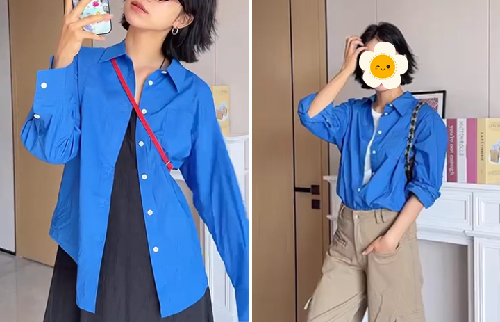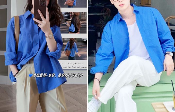 BASICLIVE克莱因蓝衬衫,时尚名模都爱的单品,被种草N次,艺术高级色