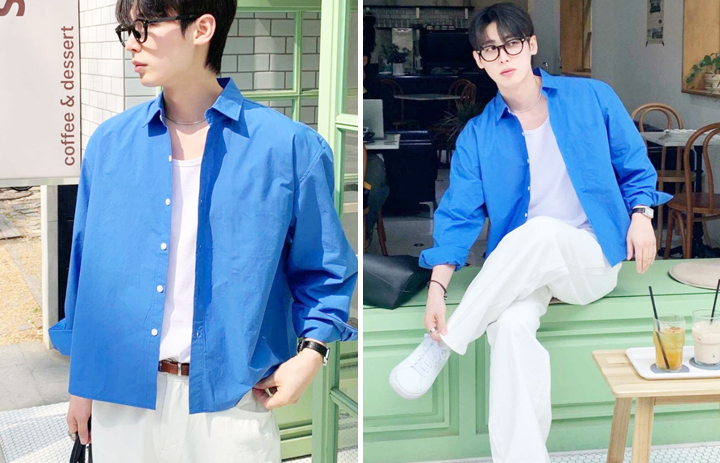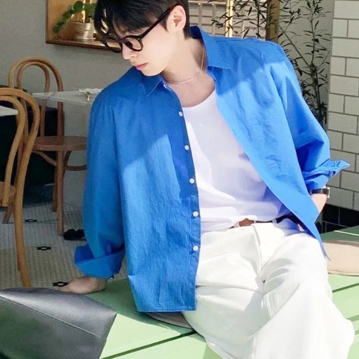 男生穿腻了黑白灰,真的很推荐尝试一下这款克莱因蓝衬衫,那叫一个“进可攻退可守”的沉稳。