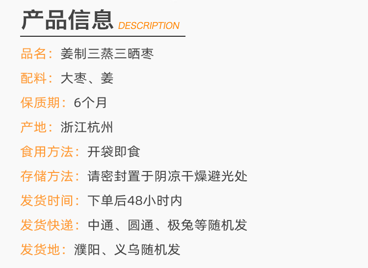【买2赠1、发3袋】三蒸三晒姜枣 120g*2袋