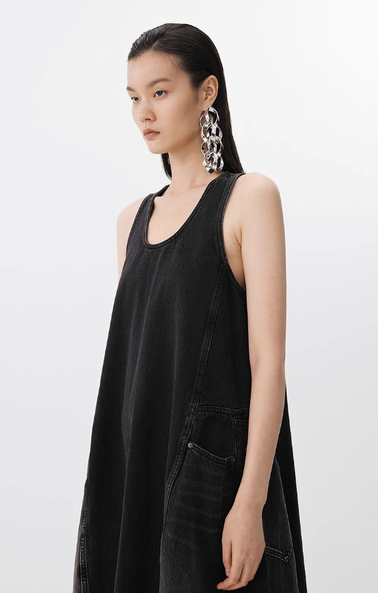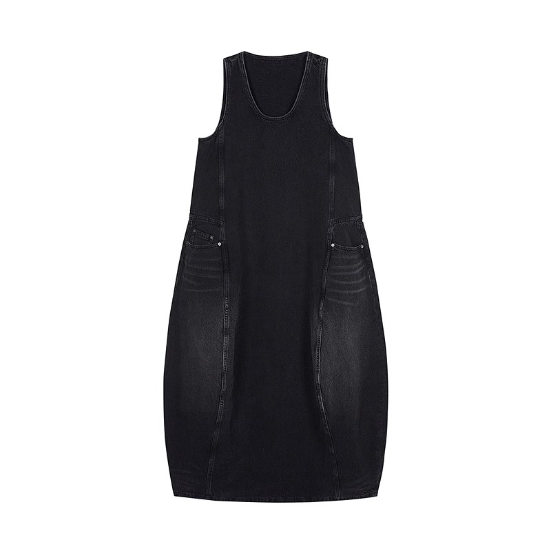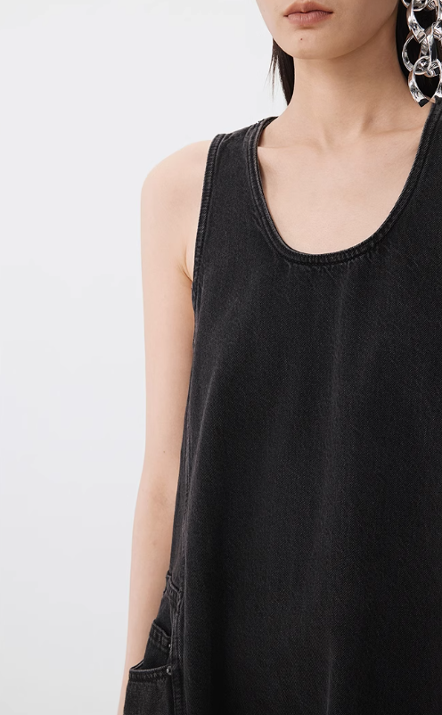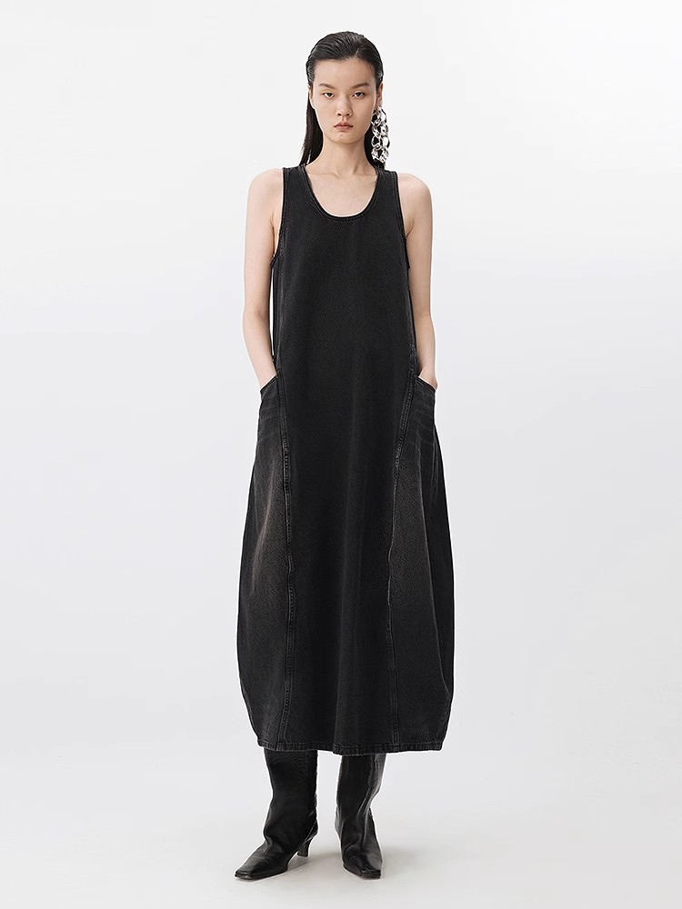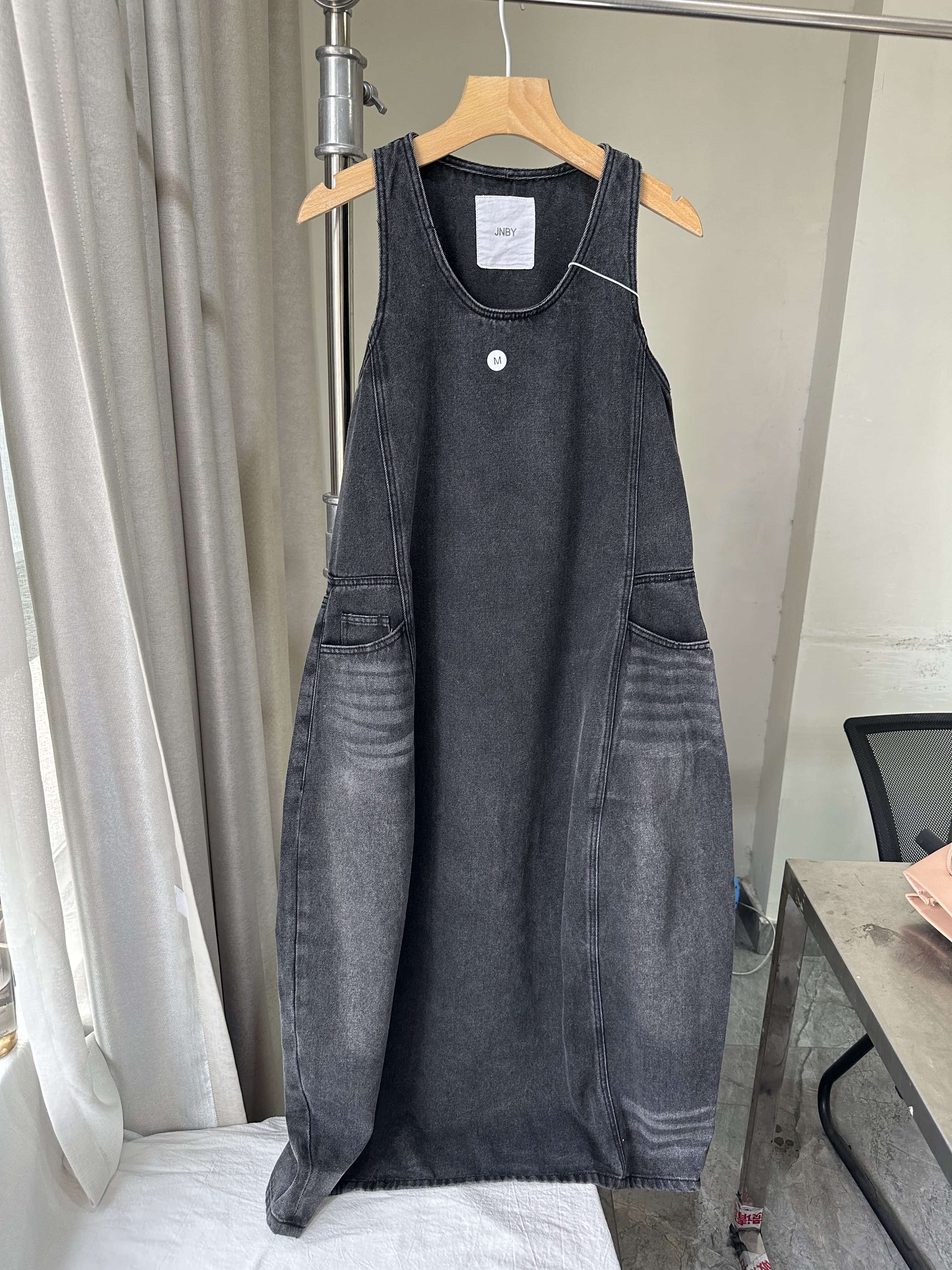 贝壳三 松弛感圆领无袖牛仔背带裙宽松廓形版背心连衣裙C041318