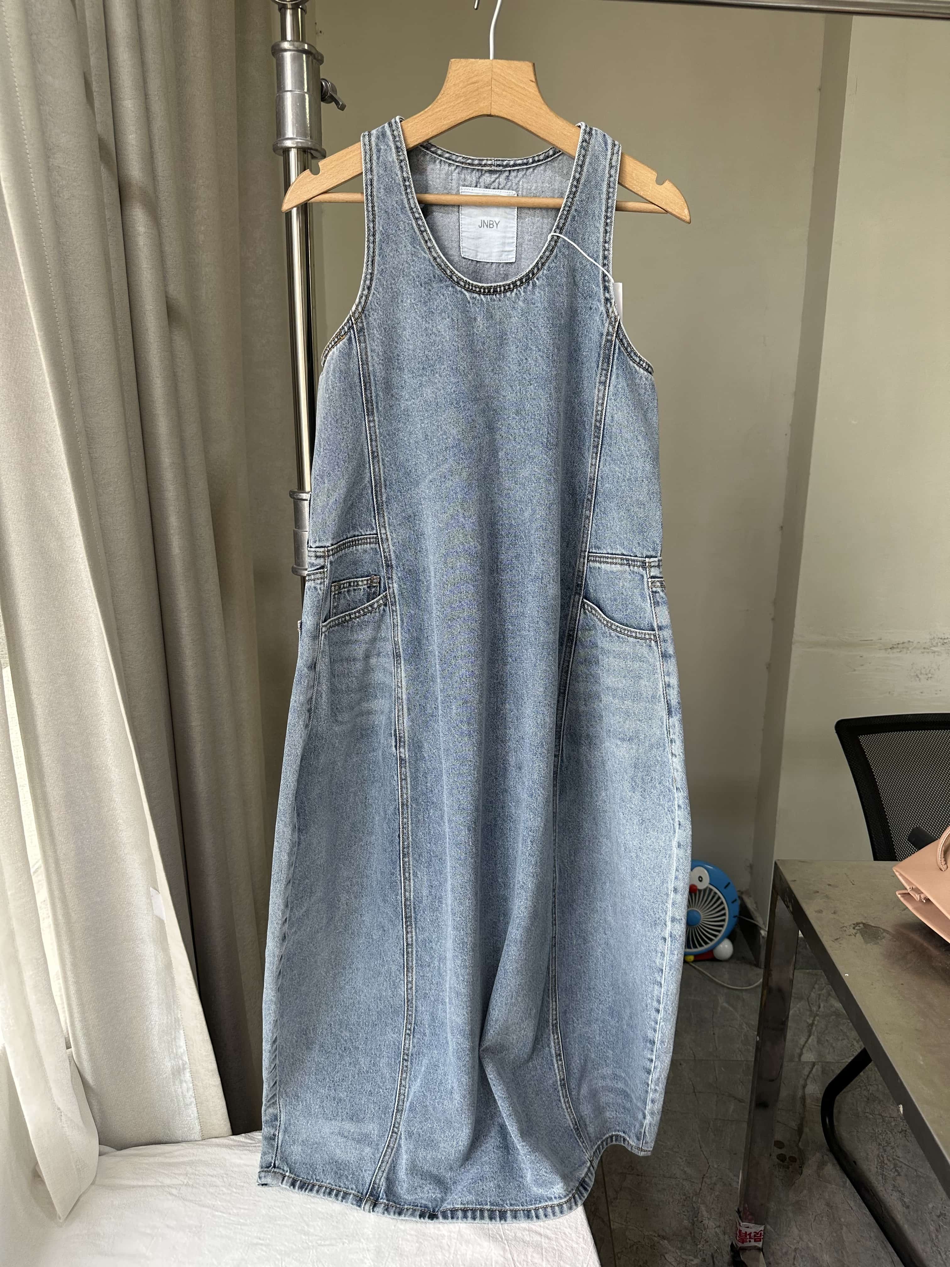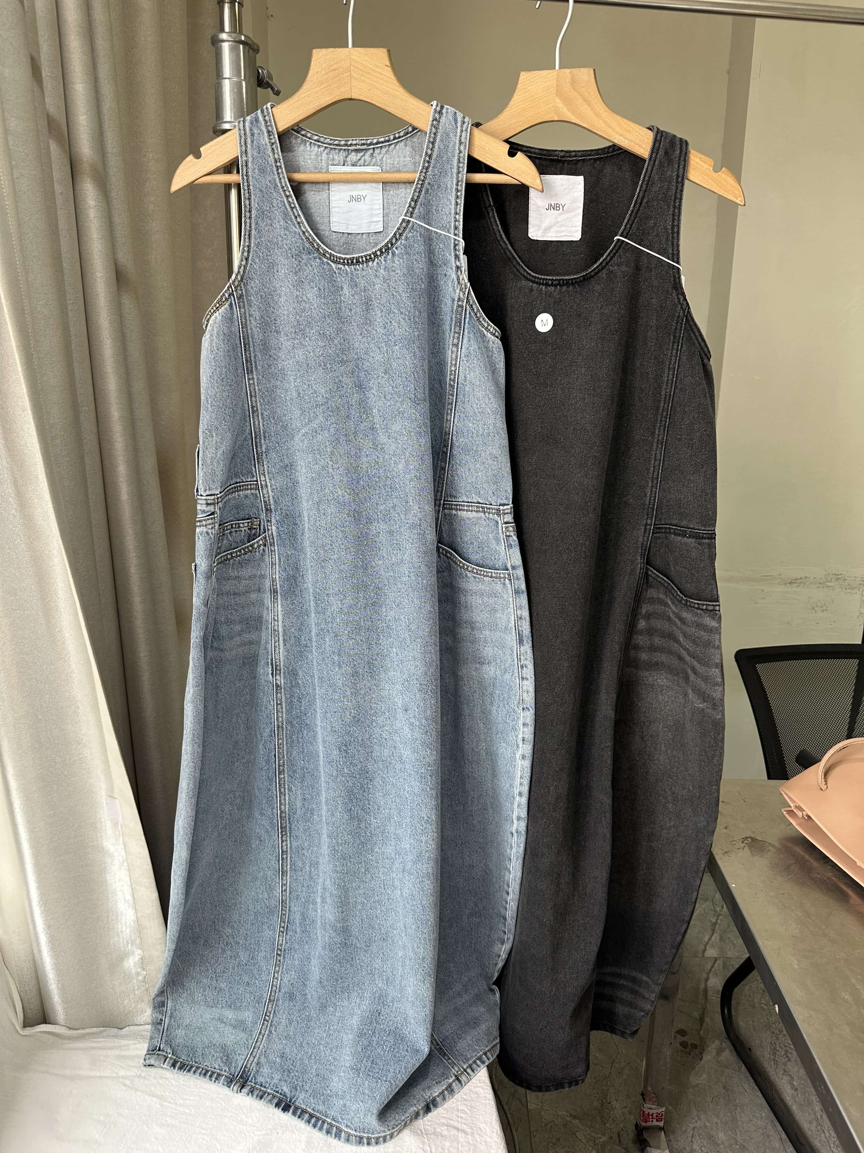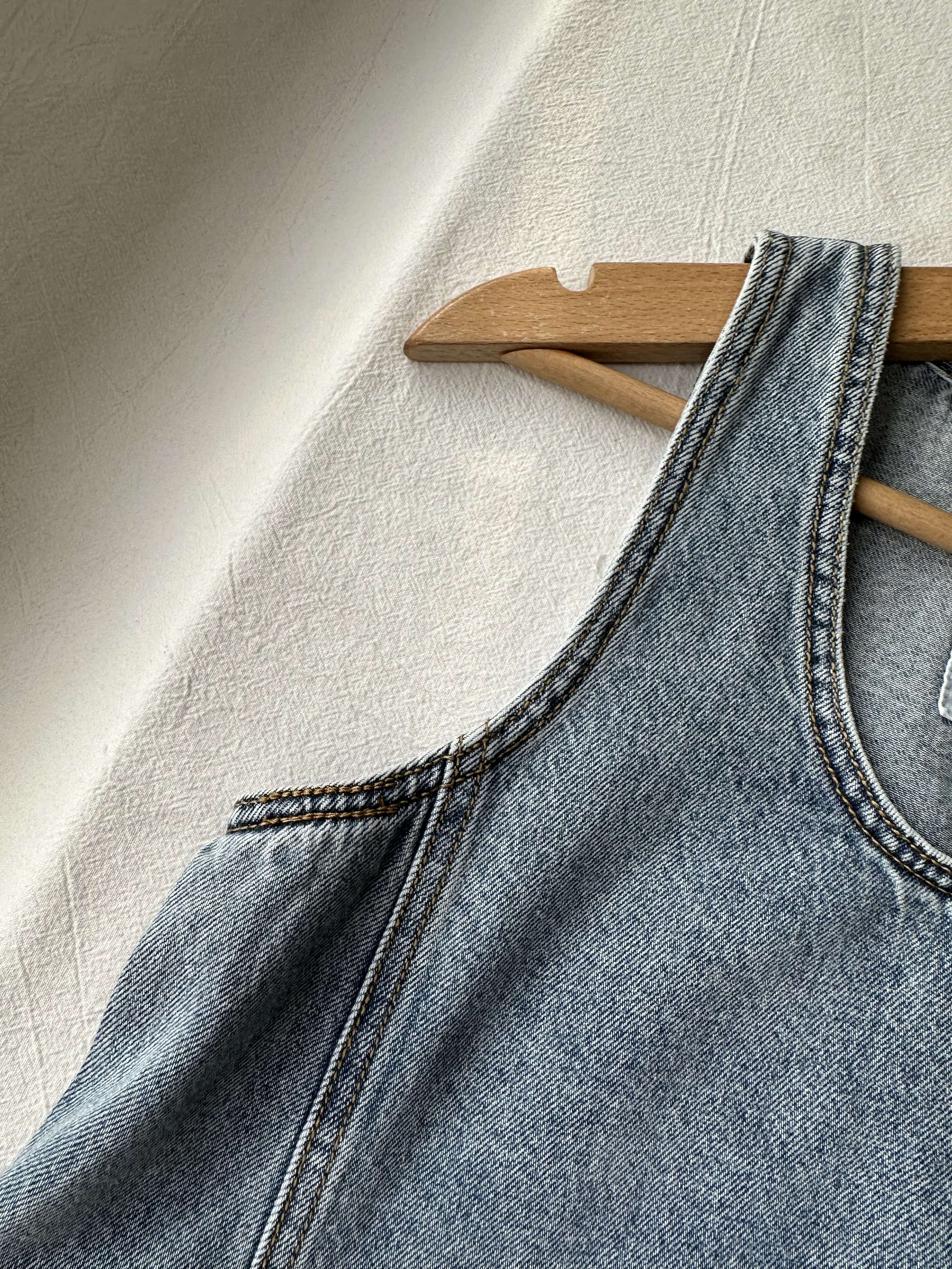 贝壳三 松弛感圆领无袖牛仔背带裙宽松廓形版背心连衣裙C041318